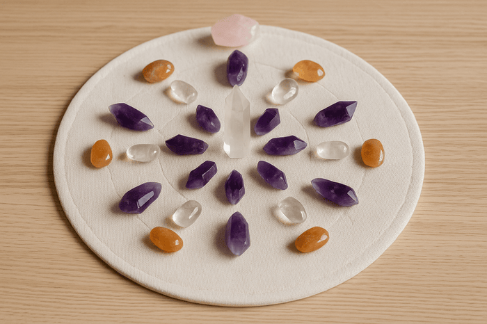Grilă de cristale pentru abundență: cum amplifici prosperitatea cu citrin, pirita, aventurin și cuarț transparent