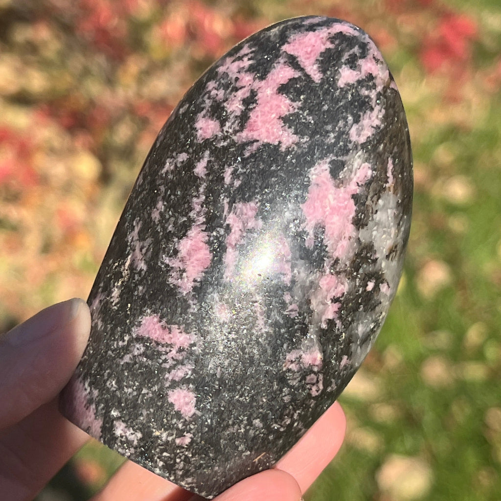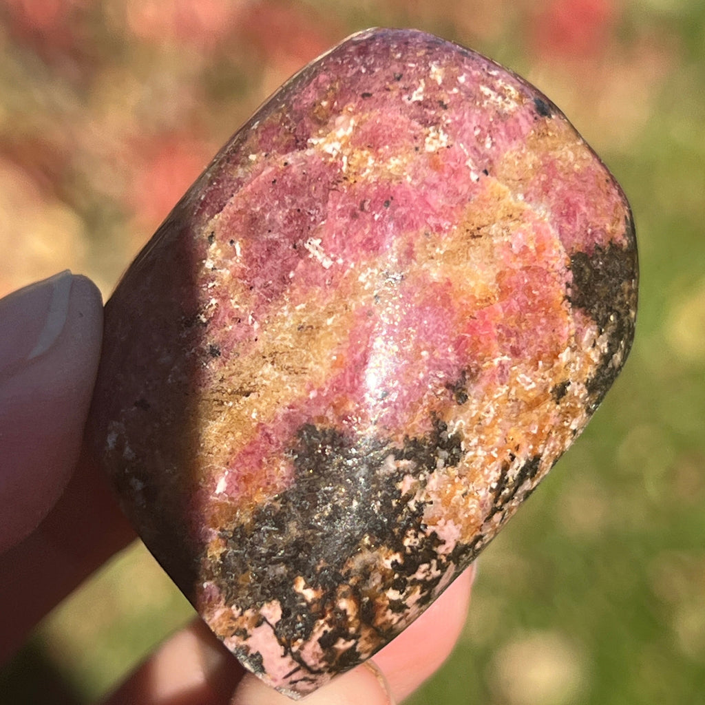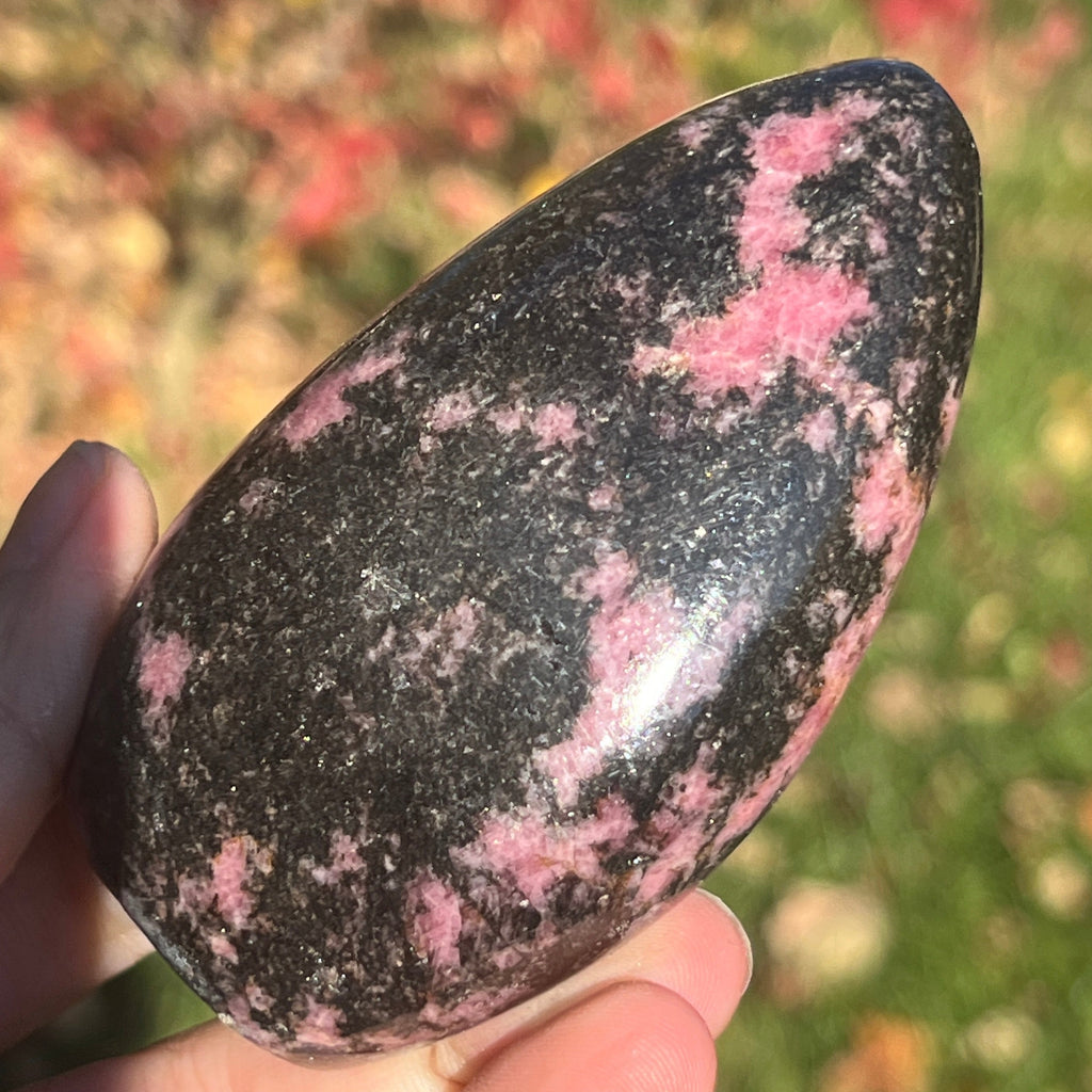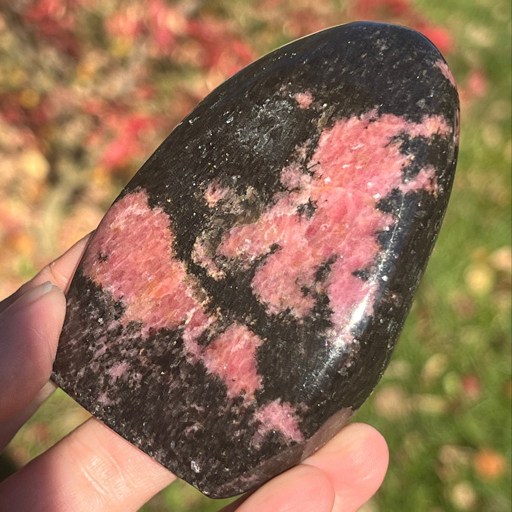 Rodonitul, cu tonurile sale roz și venele negre, este o piatră semipretiosa a compasiunii și vindecării emoționale, ajutând la restabilirea echilibrului interior și promovând iubirea și armonia în relații.