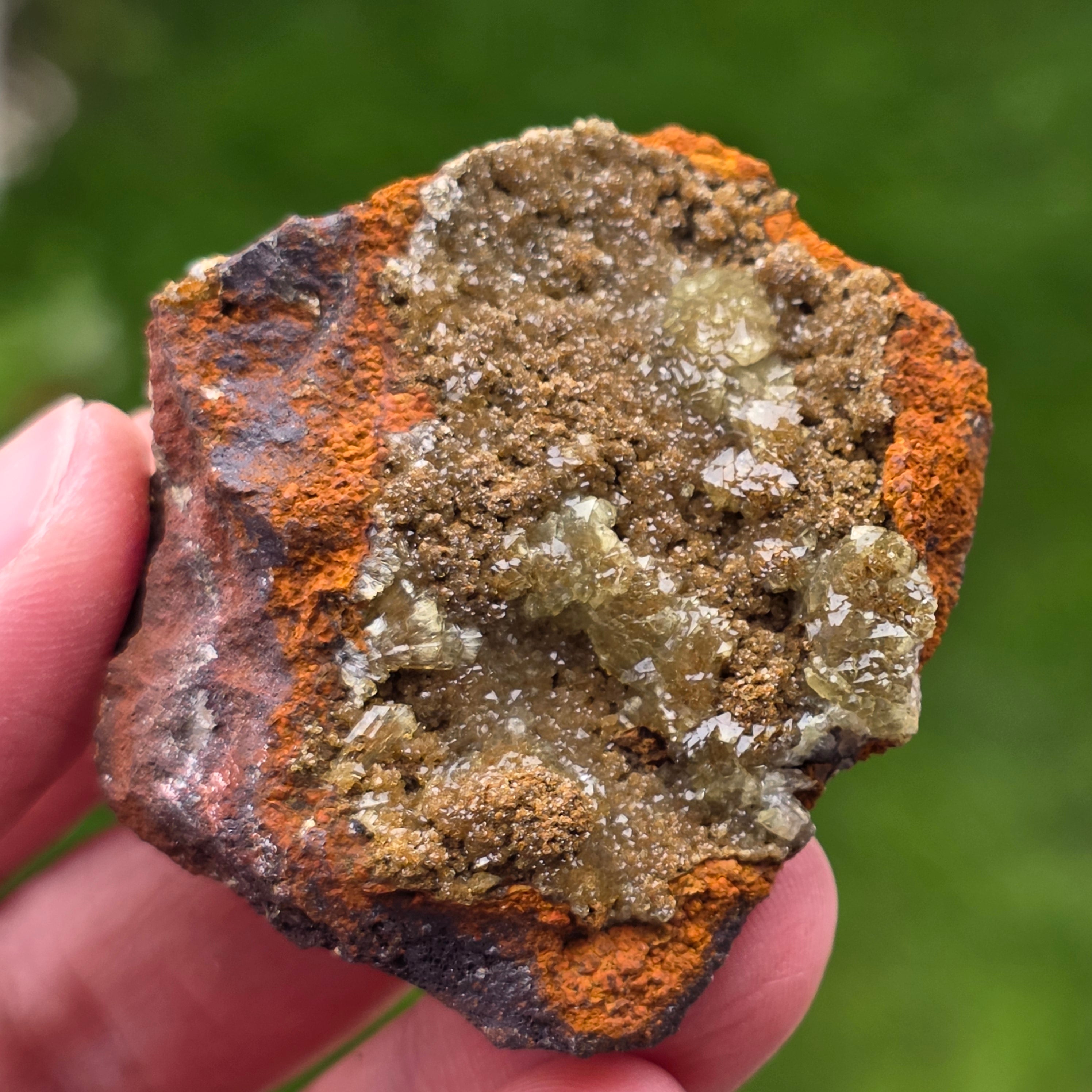Acest specimen de adamit din Mexic, provenit din faimoasa Mina Ojuela, Mapimí – Durango, este o piesă mineralogică de colecție, extrem de apreciată pentru culoarea sa intensă, verde-gălbuie, și pentru fluorescența spectaculoasă sub lumină UV. Mina Ojuela este considerată una dintre cele mai importante localități clasice din lume pentru adamit, piesele de aici fiind de referință pentru acest mineral.