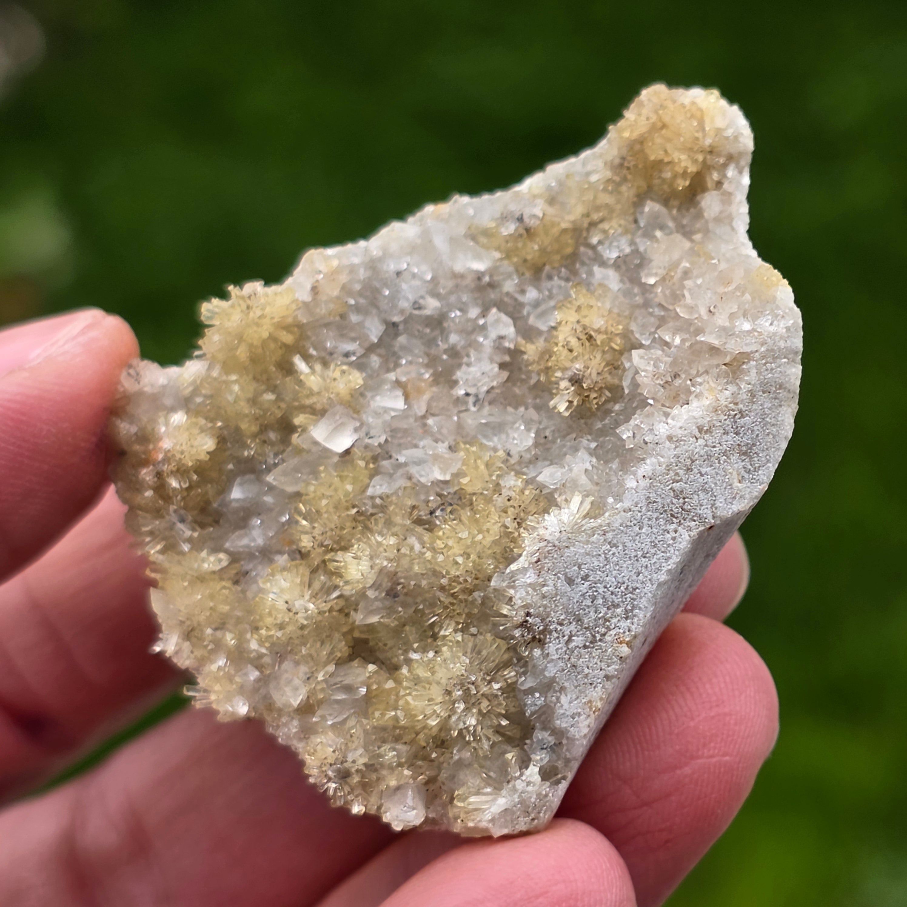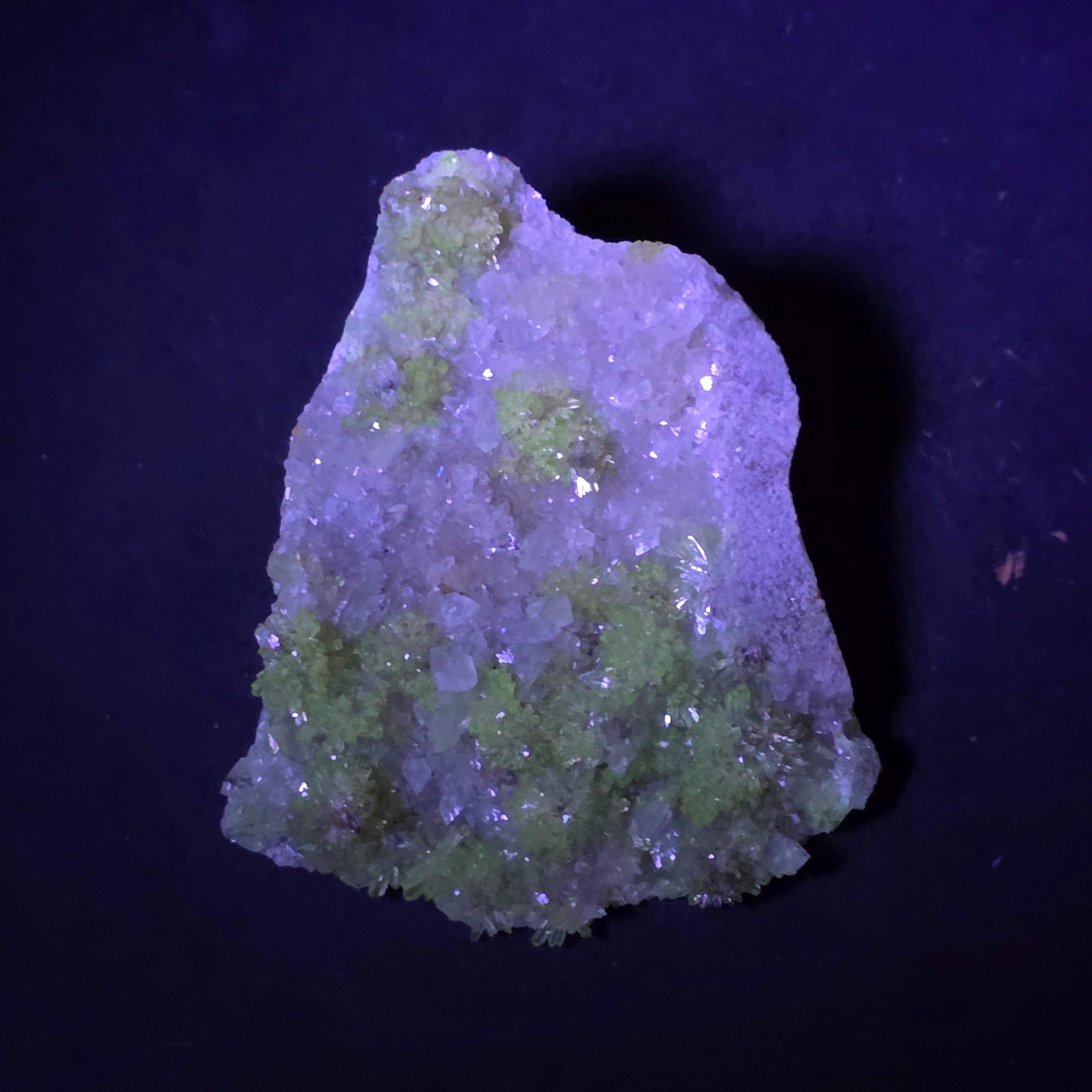 Acest specimen de adamit din Mexic, provenit din faimoasa Mina Ojuela, Mapimí – Durango, este o piesă mineralogică de colecție, extrem de apreciată pentru culoarea sa intensă, verde-gălbuie, și pentru fluorescența spectaculoasă sub lumină UV. Mina Ojuela este considerată una dintre cele mai importante localități clasice din lume pentru adamit, piesele de aici fiind de referință pentru acest mineral.
