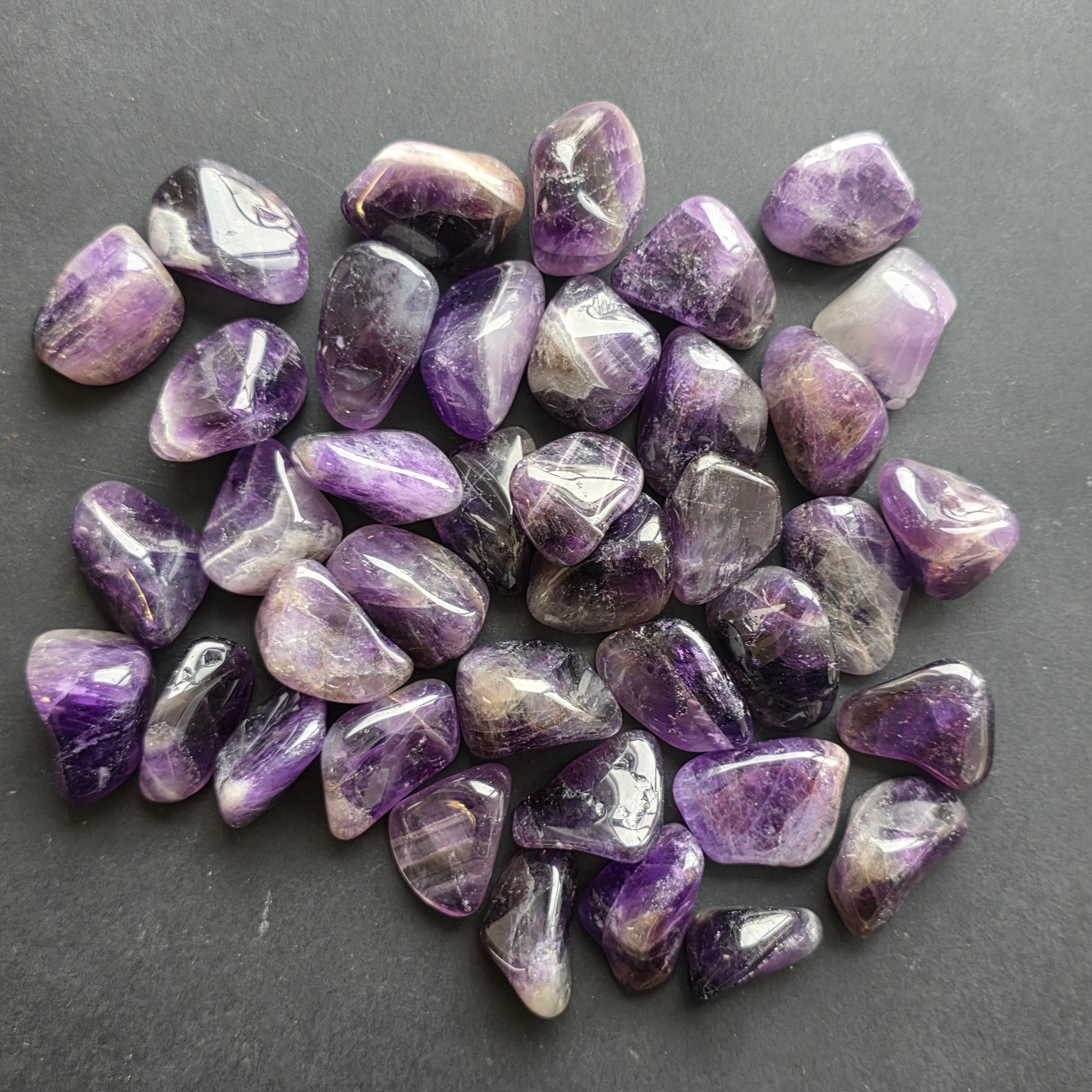 Ametistul chevron este recunoscut pentru asocierile cu chakrele coroana si al treilea ochi, crescand intuitia si capacitatea de a lua decizii.