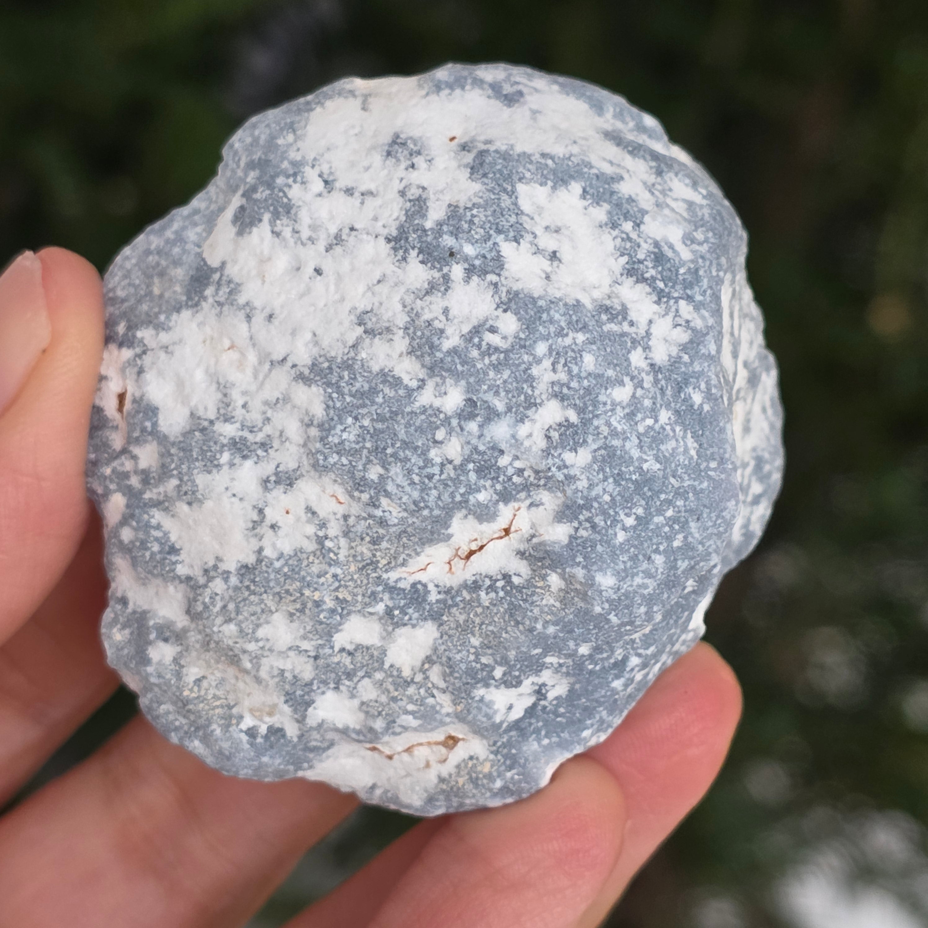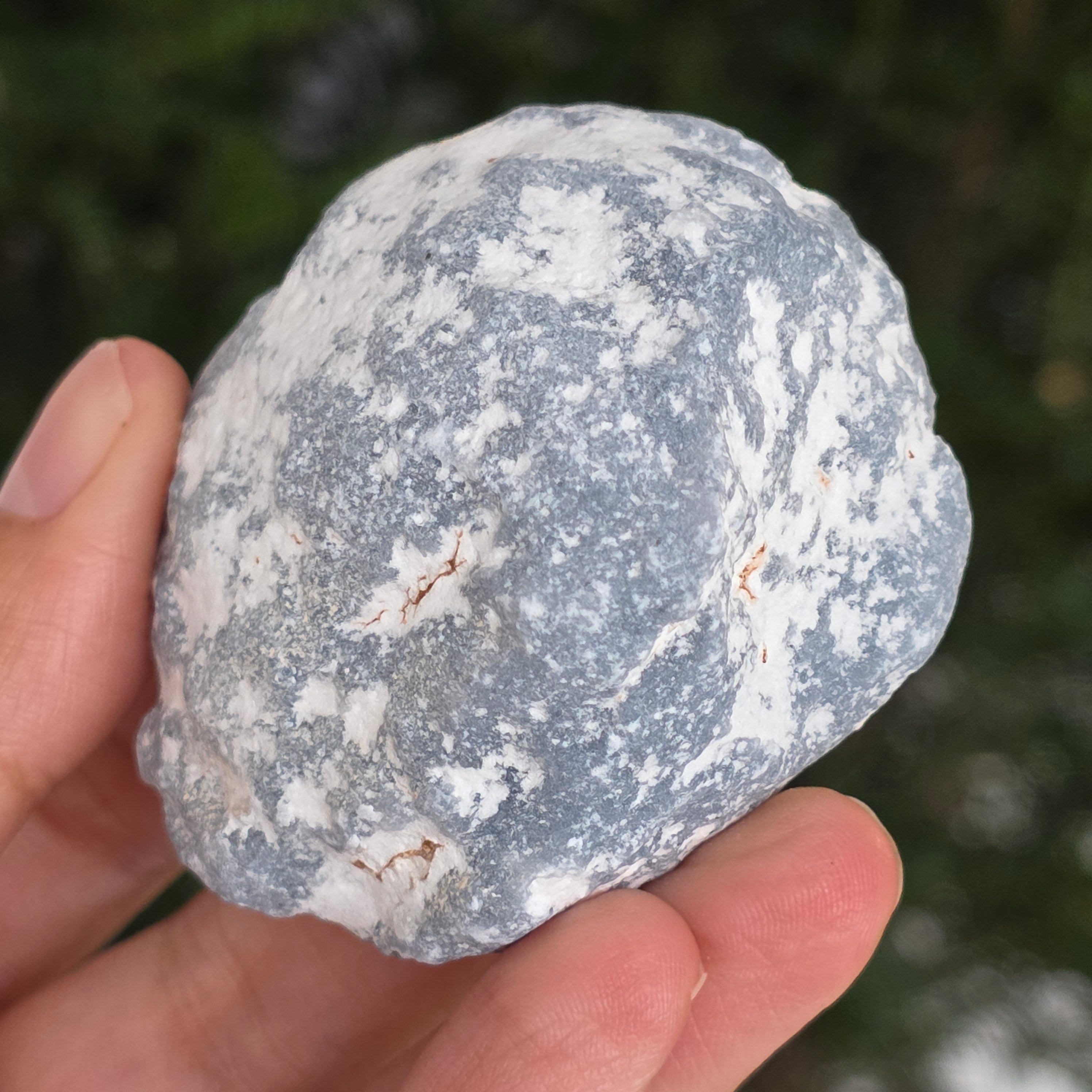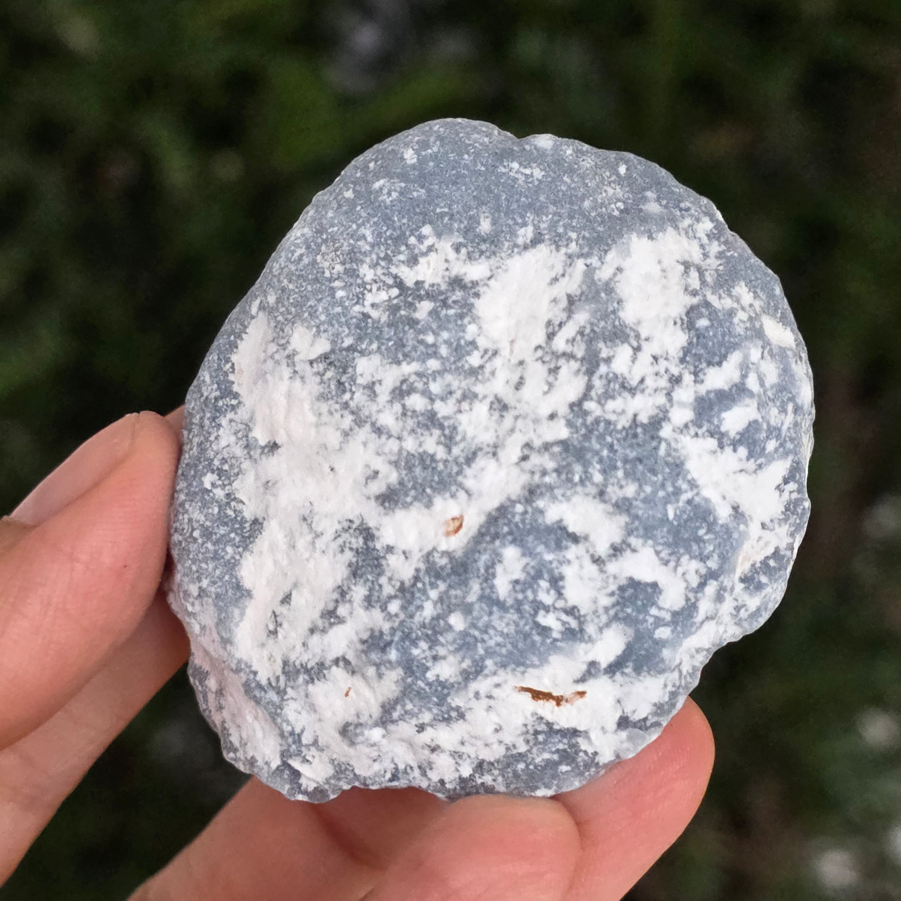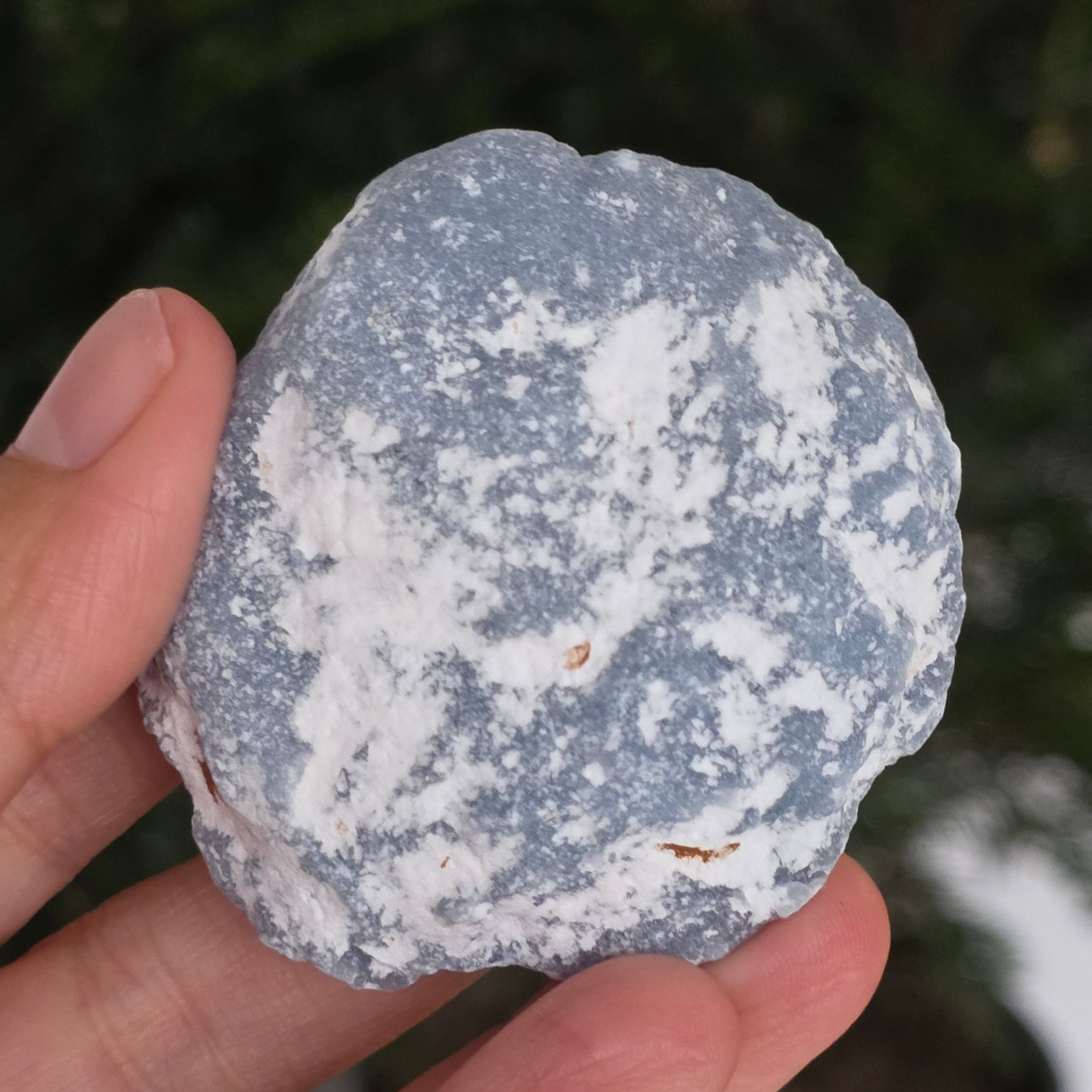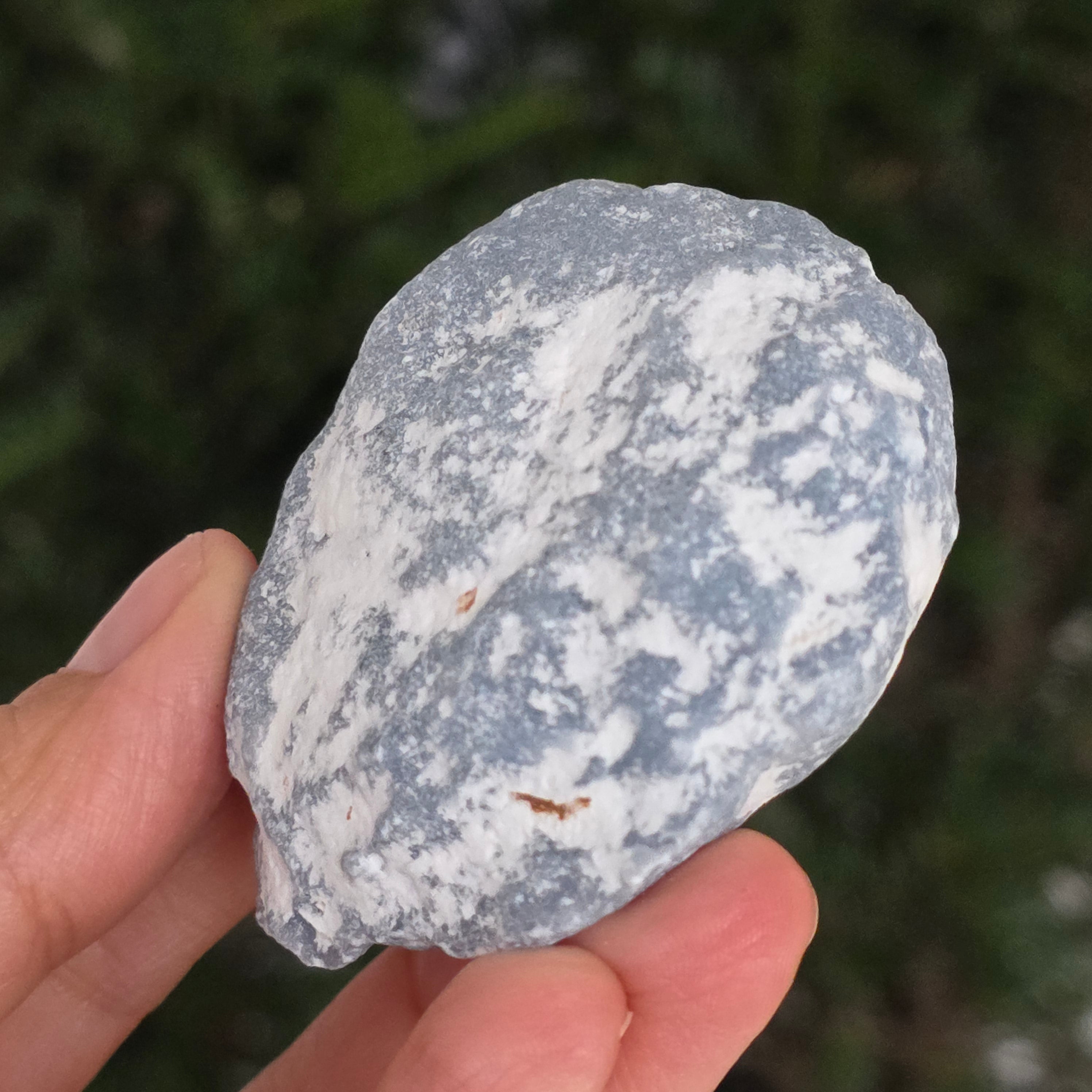 O piatră ce pare desprinsă dintr-un colț de cer. Această piatră brută de angelit natural păstrează forma și textura sa autentică, cu tonuri de albastru deschis, gri sidefat și reflexe subtile de alb. Suprafața mată, catifelată la atingere, emană o energie blândă și calmă, asemenea unui val de liniște care îmbrățișează spațiul.