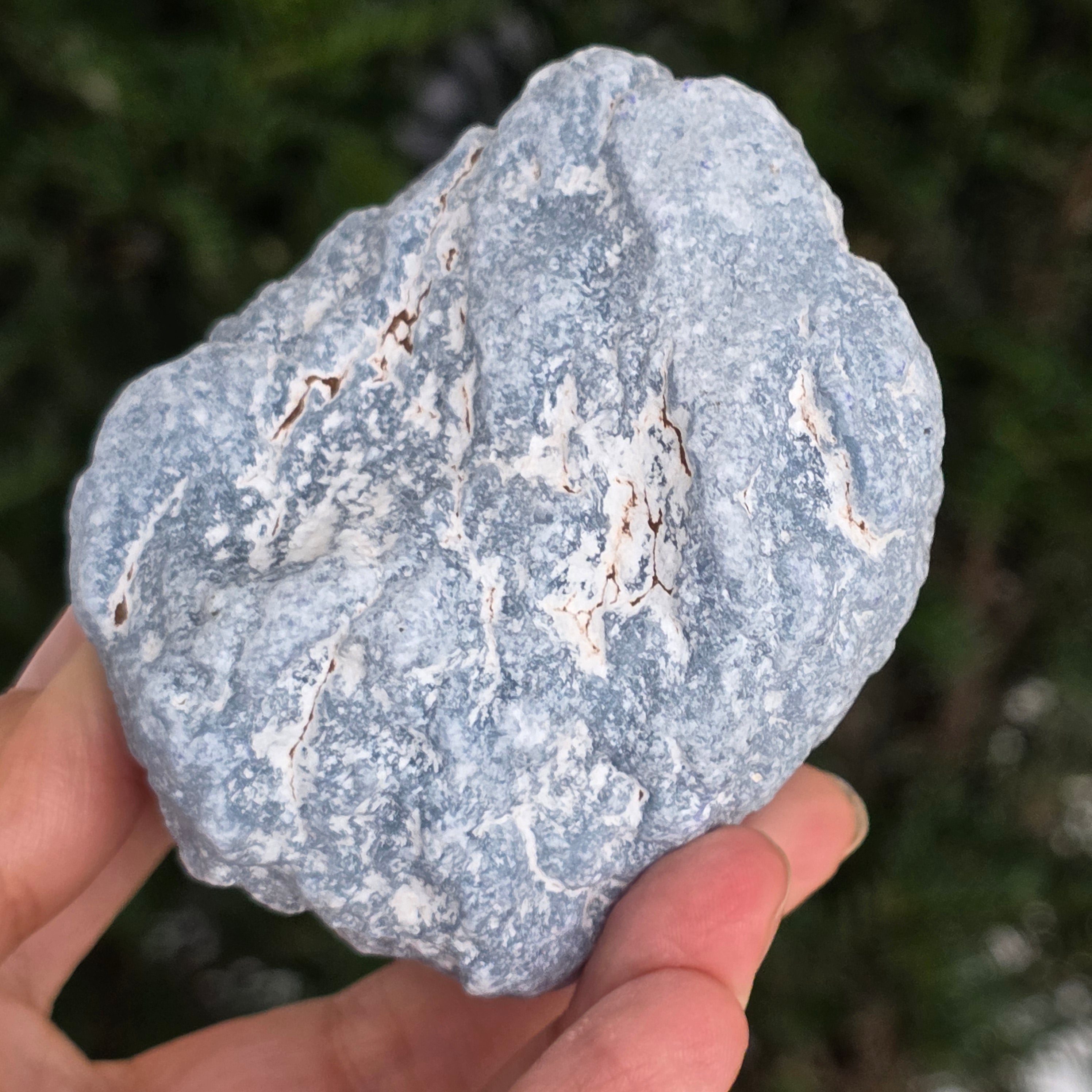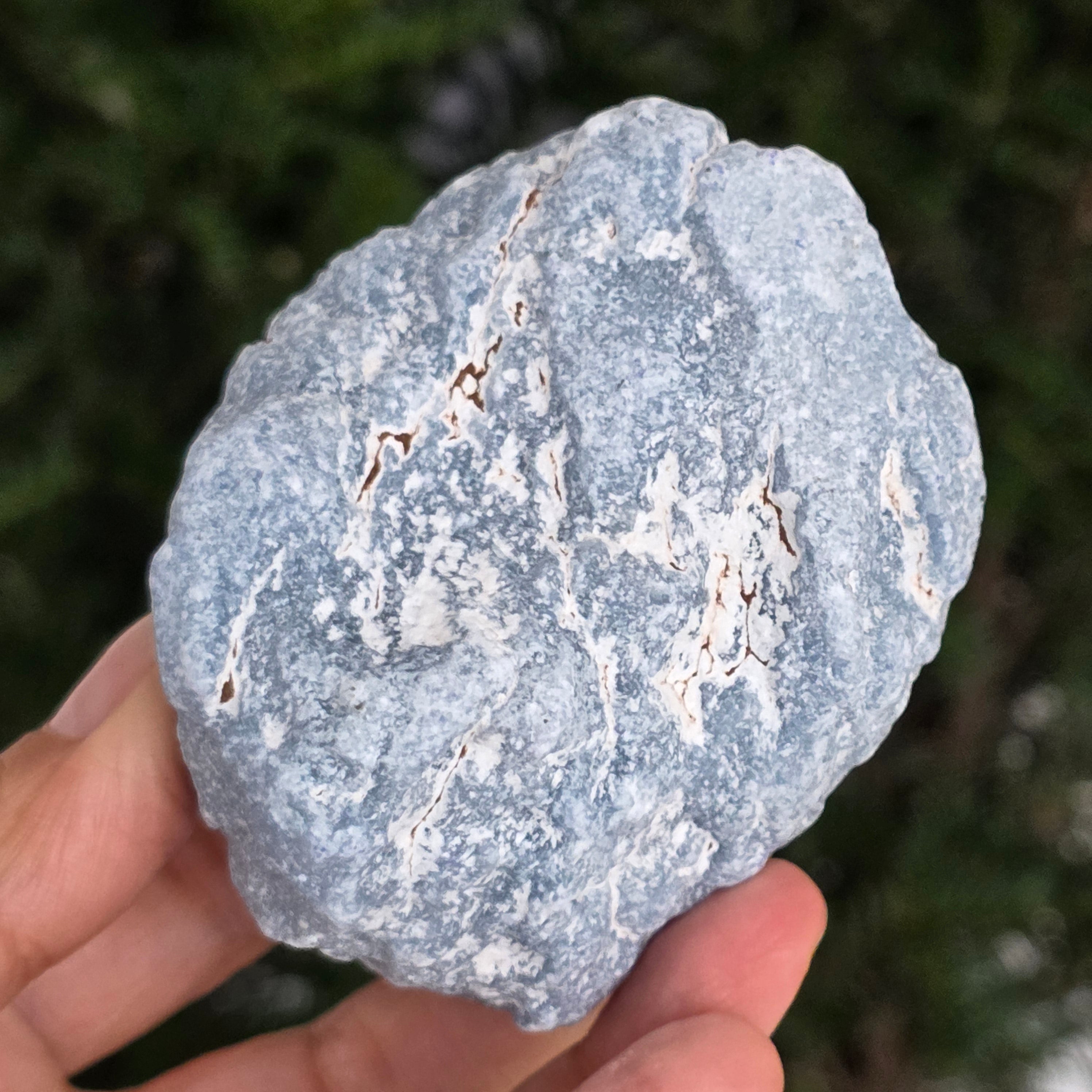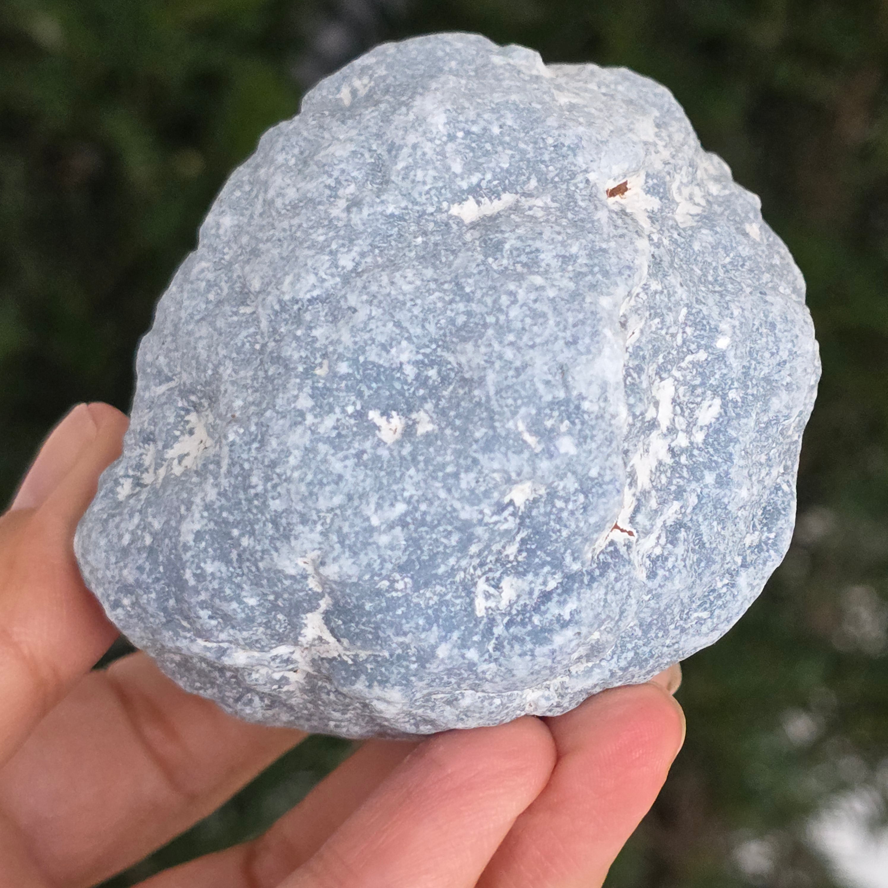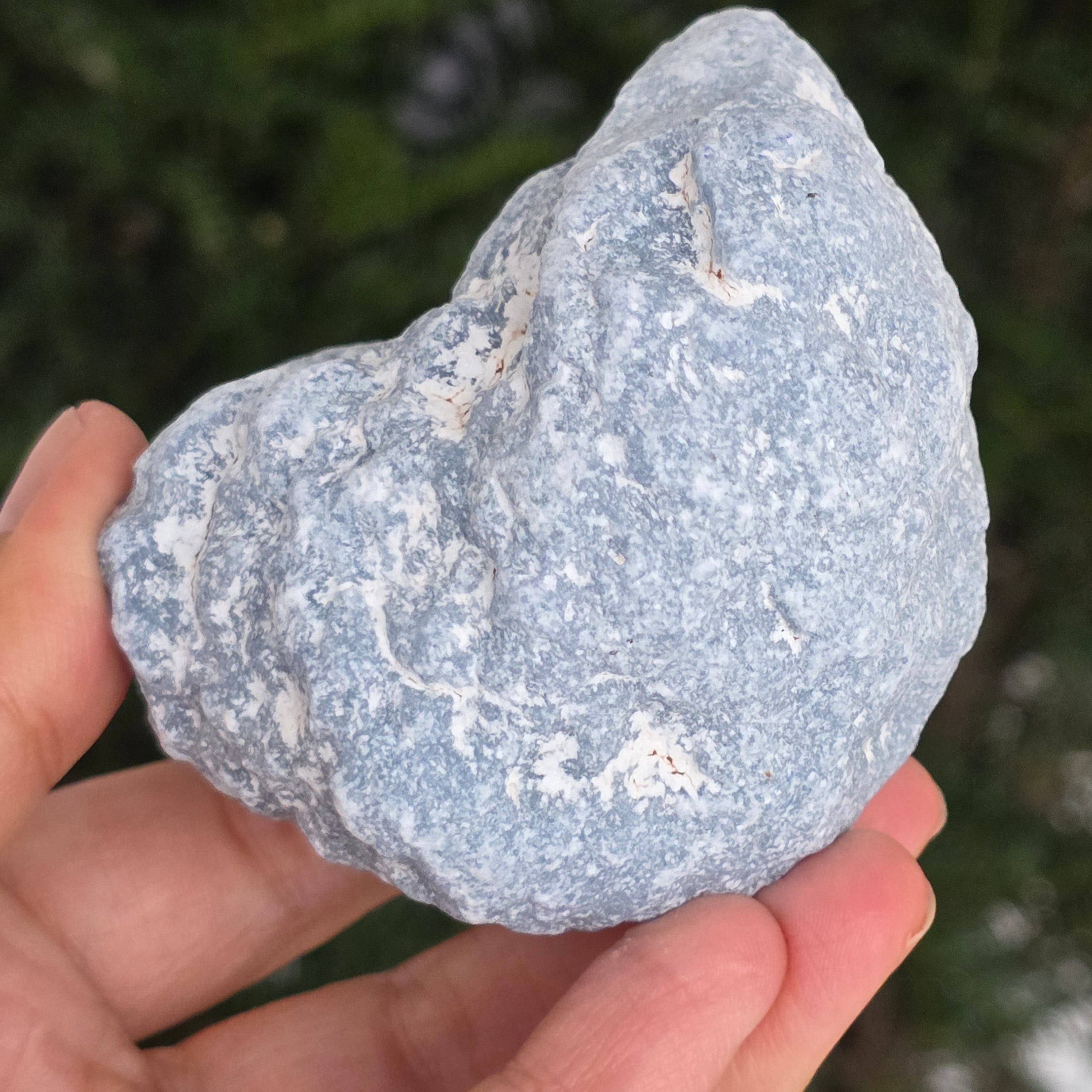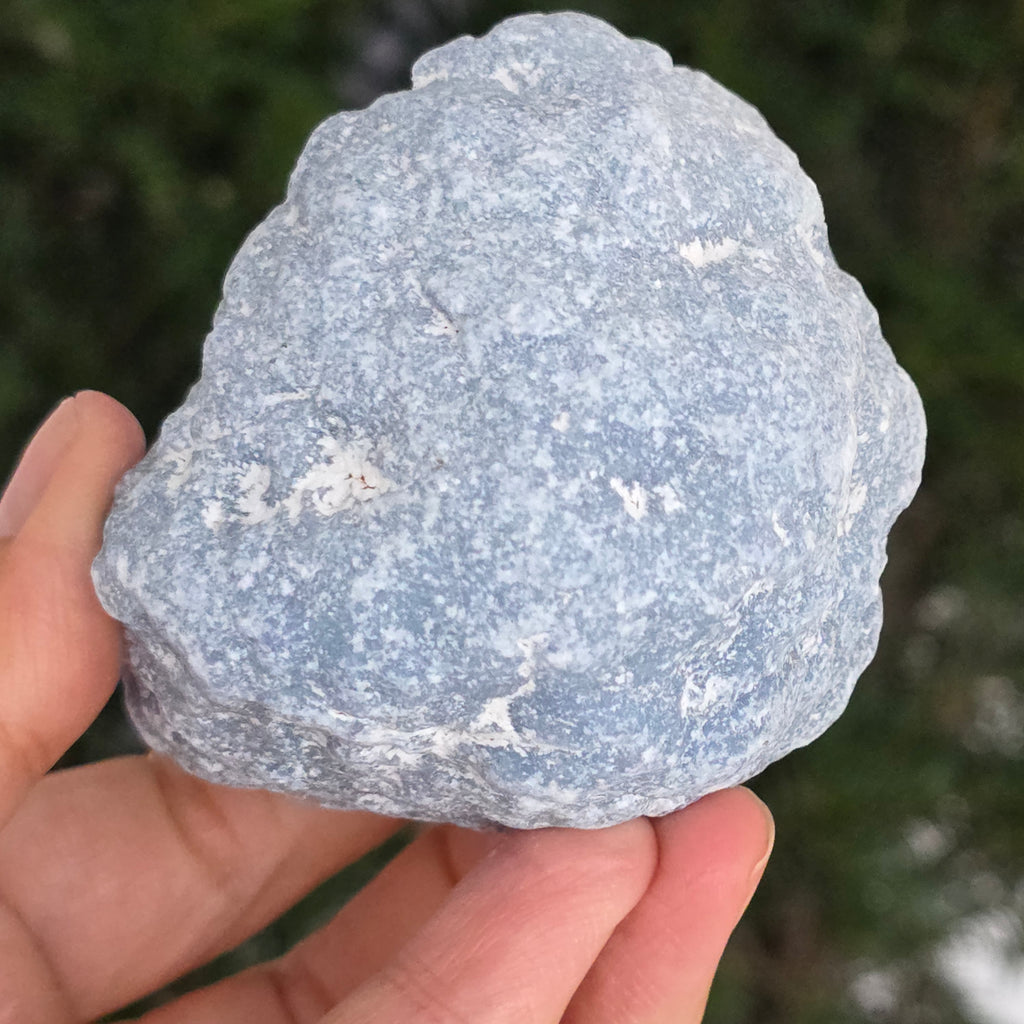 O piatră ce pare desprinsă dintr-un colț de cer. Această piatră brută de angelit natural păstrează forma și textura sa autentică, cu tonuri de albastru deschis, gri sidefat și reflexe subtile de alb. Suprafața mată, catifelată la atingere, emană o energie blândă și calmă, asemenea unui val de liniște care îmbrățișează spațiul.