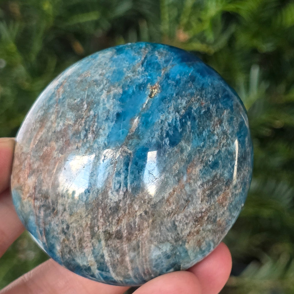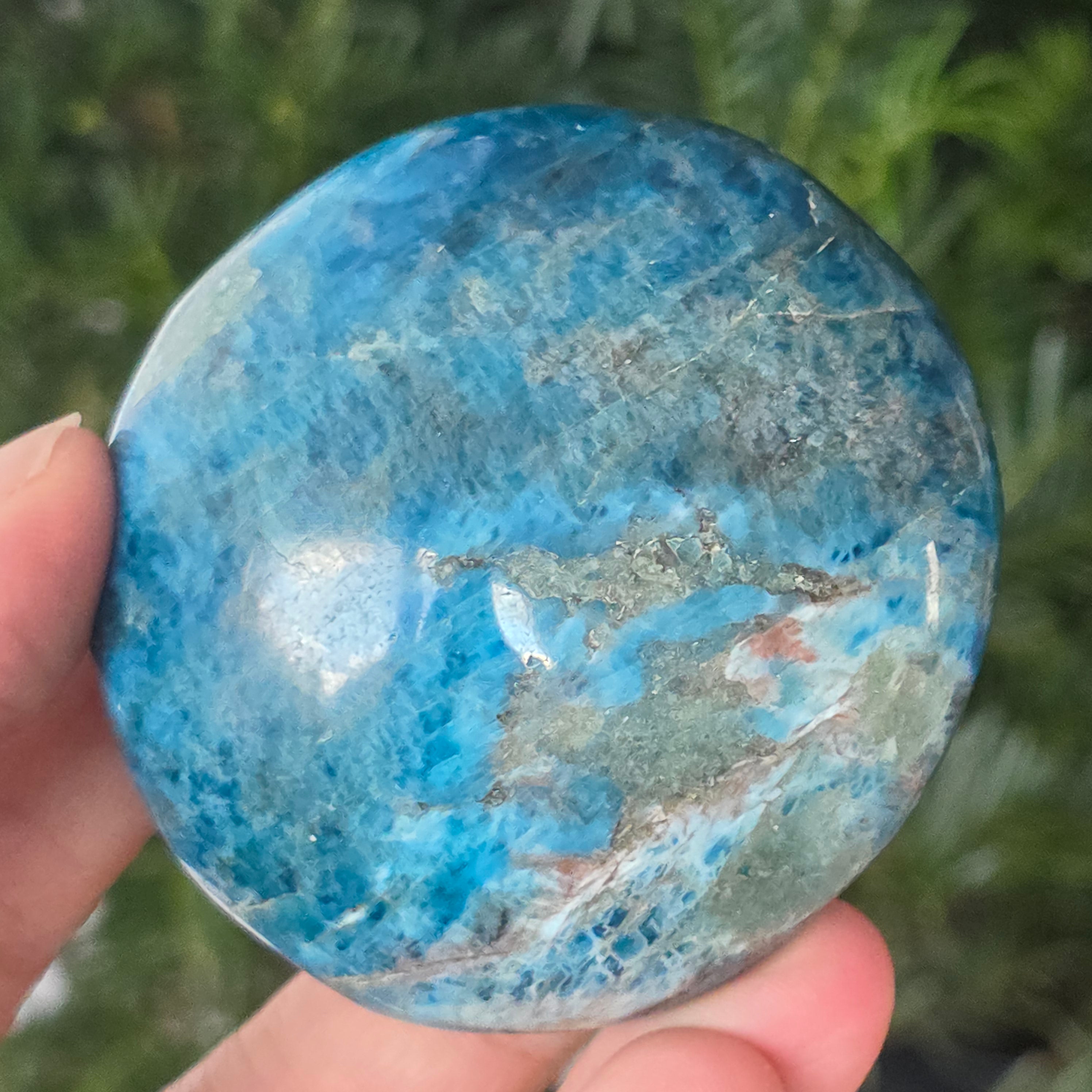 Apatitul albastru este recunoscut pentru faptul că ajută la îmbunătățirea comunicării și a exprimării, fiind util pentru cei care suferă de anxietate socială sau de frică de a vorbi în public. De asemenea, se spune că această piatră ajută la sporirea creativității și a înțelegerii.