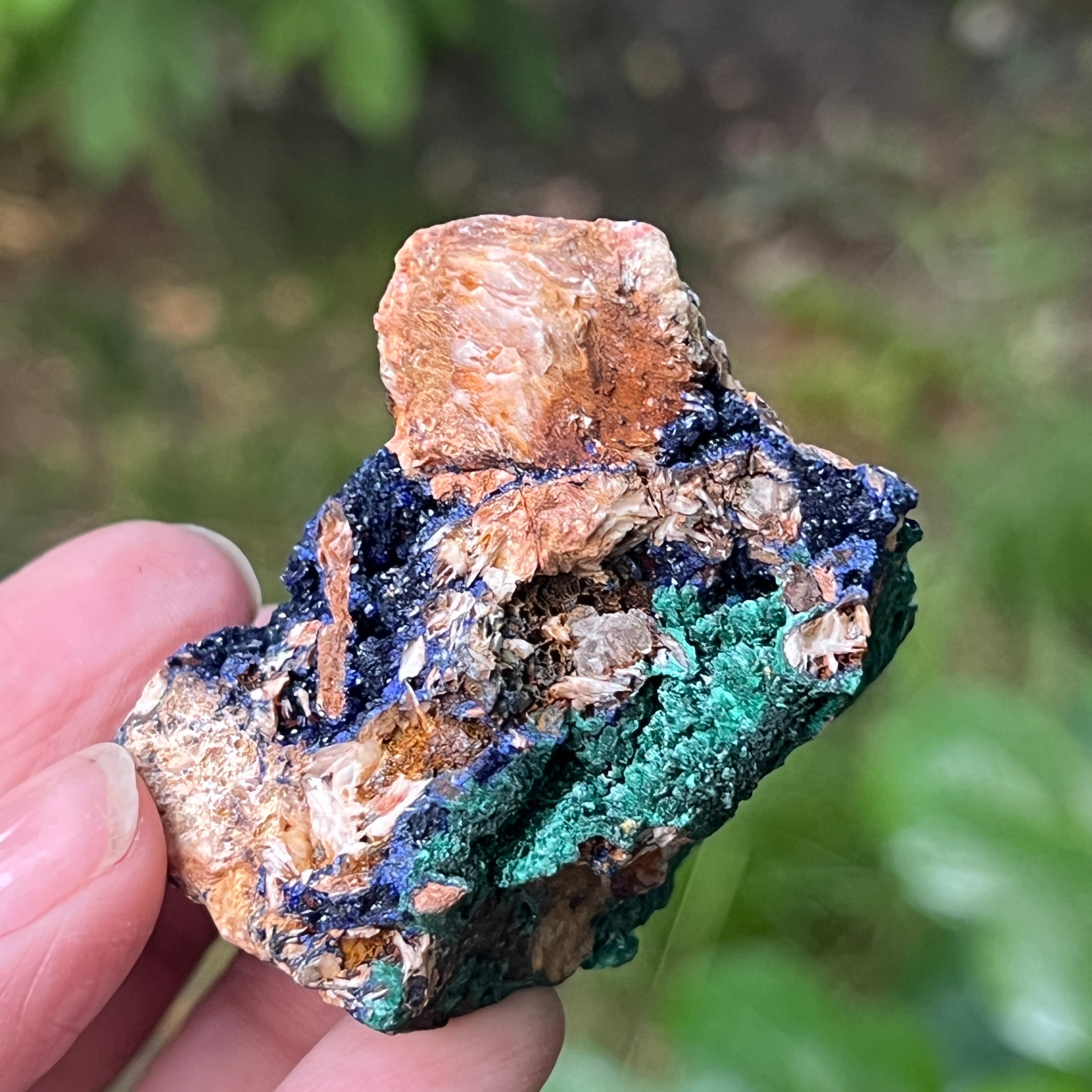Azuritul se formează în principal în zonele de oxidare ale depozitelor de cupru. Procesul de formare implică interacțiunea apei subterane bogate în carbonat cu minereurile de cupru, rezultând în cristalizarea azuritului în fracturile și golurile rocilor. Adesea, azuritul este asociat cu malachitul, o altă minerală de cupru, care are o culoare verde intensă. Cele două minerale se formează în condiții similare și, uneori, se găsesc împreună sub formă de pietre de azurit-malachit.