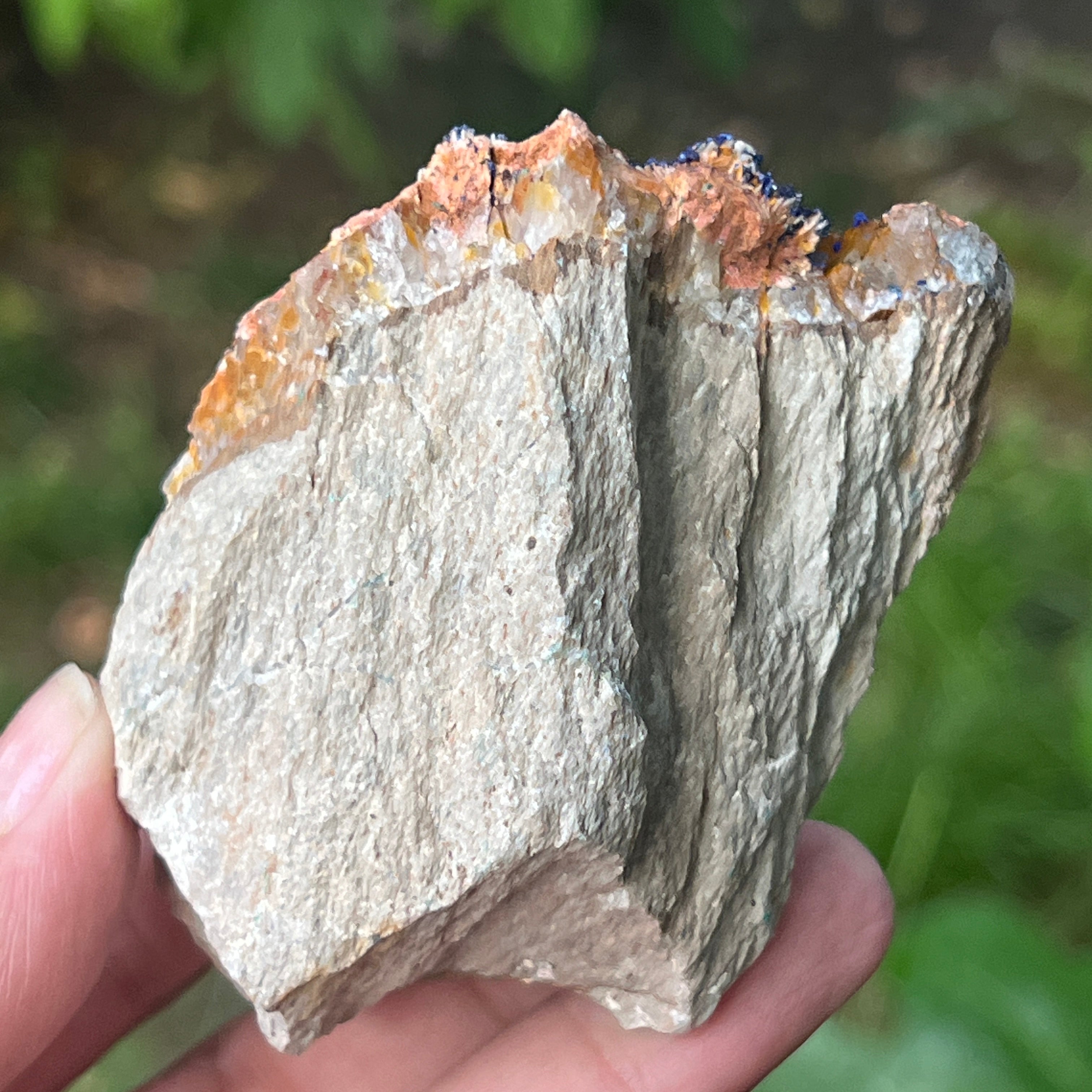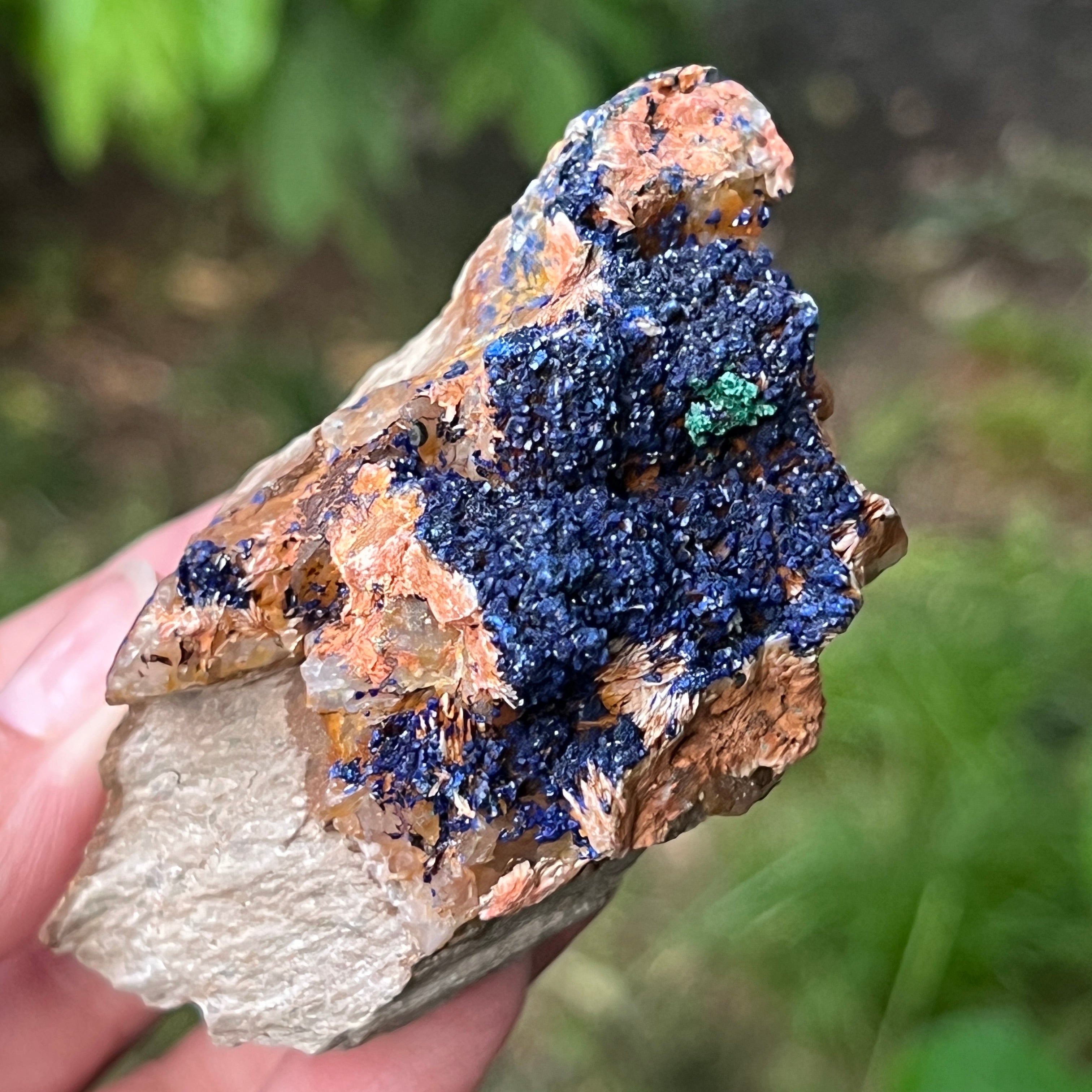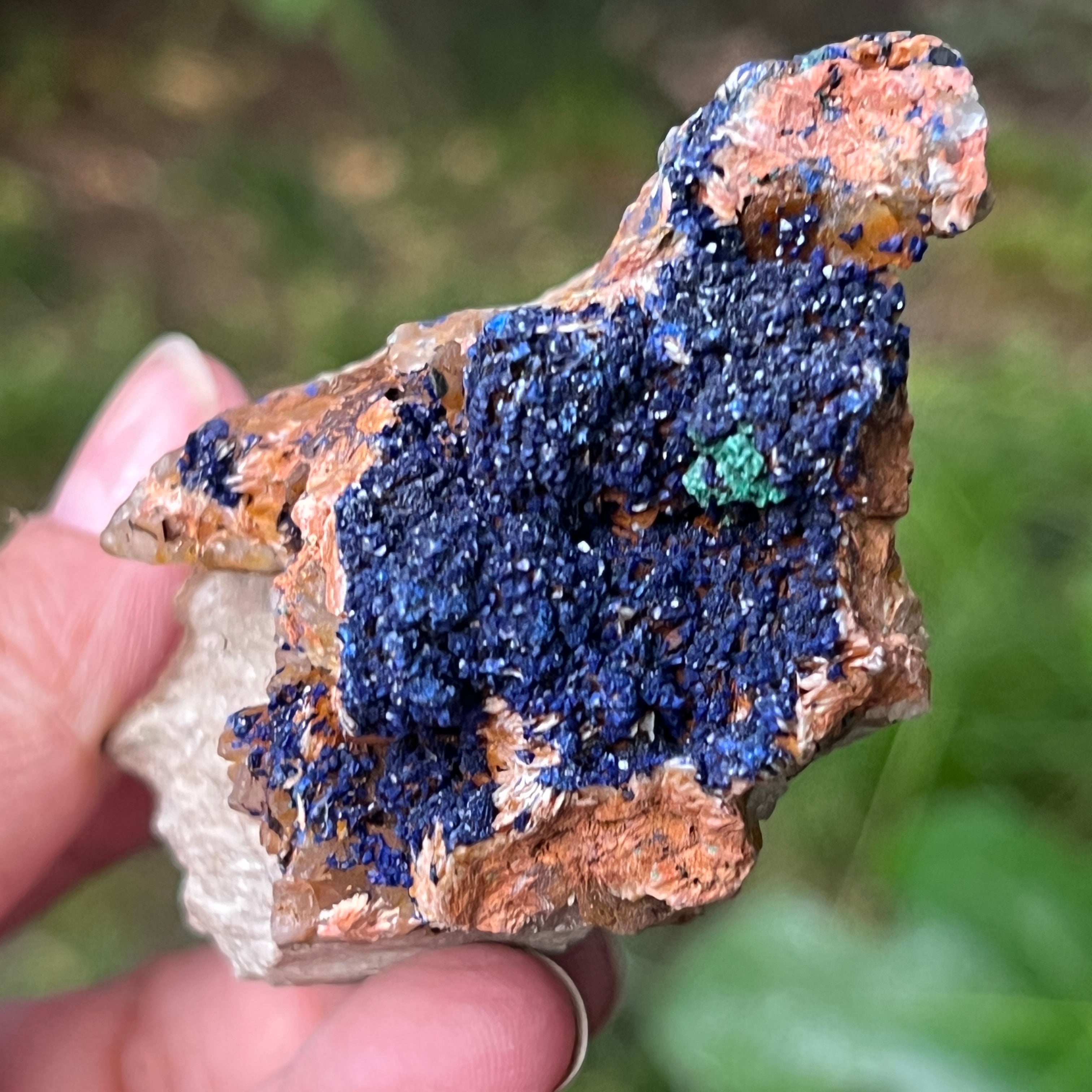 Azuritul se formează în principal în zonele de oxidare ale depozitelor de cupru. Procesul de formare implică interacțiunea apei subterane bogate în carbonat cu minereurile de cupru, rezultând în cristalizarea azuritului în fracturile și golurile rocilor. Adesea, azuritul este asociat cu malachitul, o altă minerală de cupru, care are o culoare verde intensă. Cele două minerale se formează în condiții similare și, uneori, se găsesc împreună sub formă de pietre de azurit-malachit.