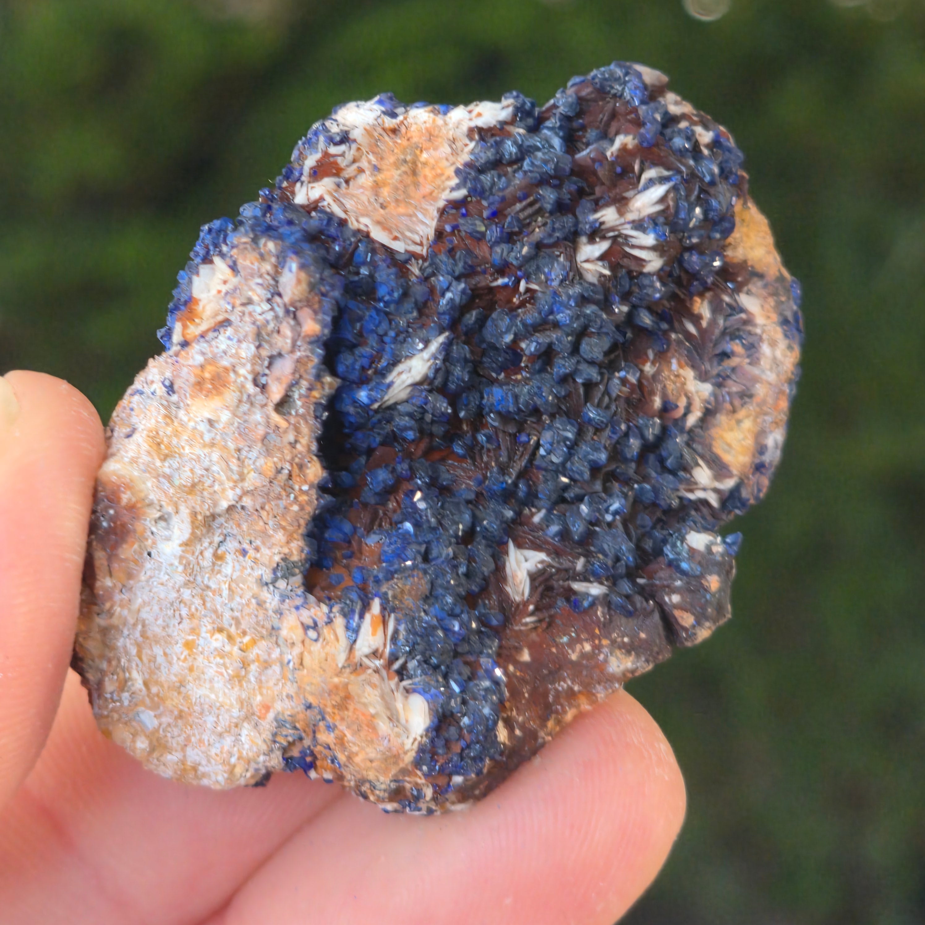Azuritul se formează în principal în zonele de oxidare ale depozitelor de cupru. Procesul de formare implică interacțiunea apei subterane bogate în carbonat cu minereurile de cupru, rezultând în cristalizarea azuritului în fracturile și golurile rocilor. Adesea, azuritul este asociat cu malachitul, o altă minerală de cupru, care are o culoare verde intensă. Cele două minerale se formează în condiții similare și, uneori, se găsesc împreună sub formă de pietre de azurit-malachit.