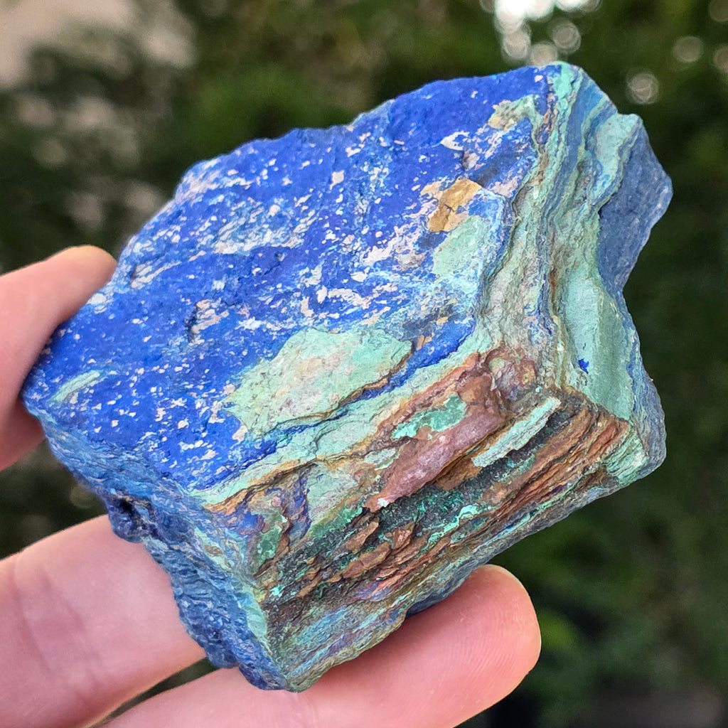 Azuritul se formează în principal în zonele de oxidare ale depozitelor de cupru. Procesul de formare implică interacțiunea apei subterane bogate în carbonat cu minereurile de cupru, rezultând în cristalizarea azuritului în fracturile și golurile rocilor. Adesea, azuritul este asociat cu malachitul, o altă minerală de cupru, care are o culoare verde intensă. Cele două minerale se formează în condiții similare și, uneori, se găsesc împreună sub formă de pietre de azurit-malachit.