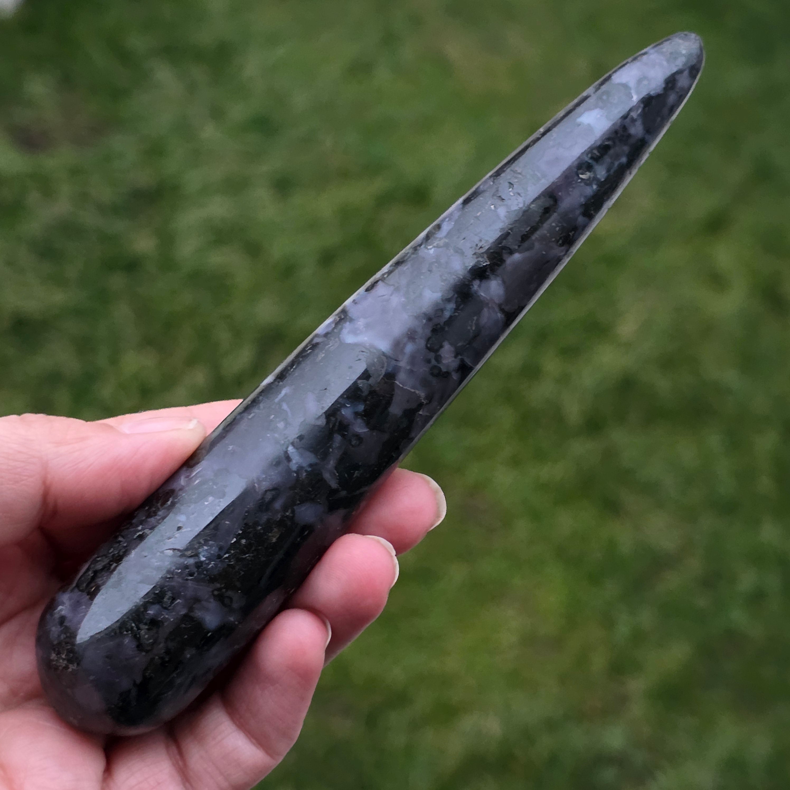 Merlinitul este o piatră semiprețioasă rară și fascinantă, recunoscută pentru combinația sa de culori contrastante, alb și negru, care îi oferă un aspect unic. Este considerată o varietate de opal dendritic sau o combinație de cuarț și alte minerale, iar structura sa complexă îl face să fie apreciat atât pentru frumusețea sa, cât și pentru presupusele proprietăți energetice. Merlinitul este cunoscut în lumea cristaloterapiei pentru energiile sale mistice și asocierea cu intuiția, clarviziunea și cunoașterea spirituală.