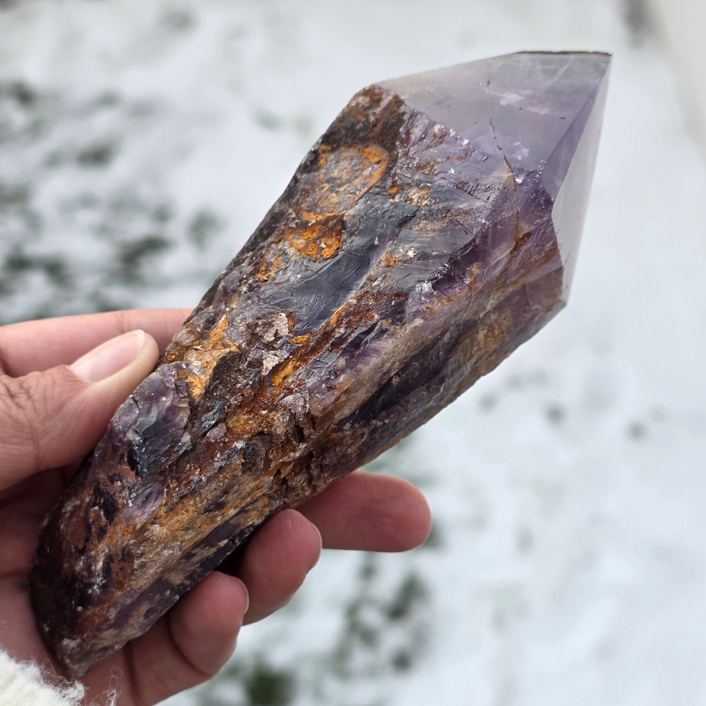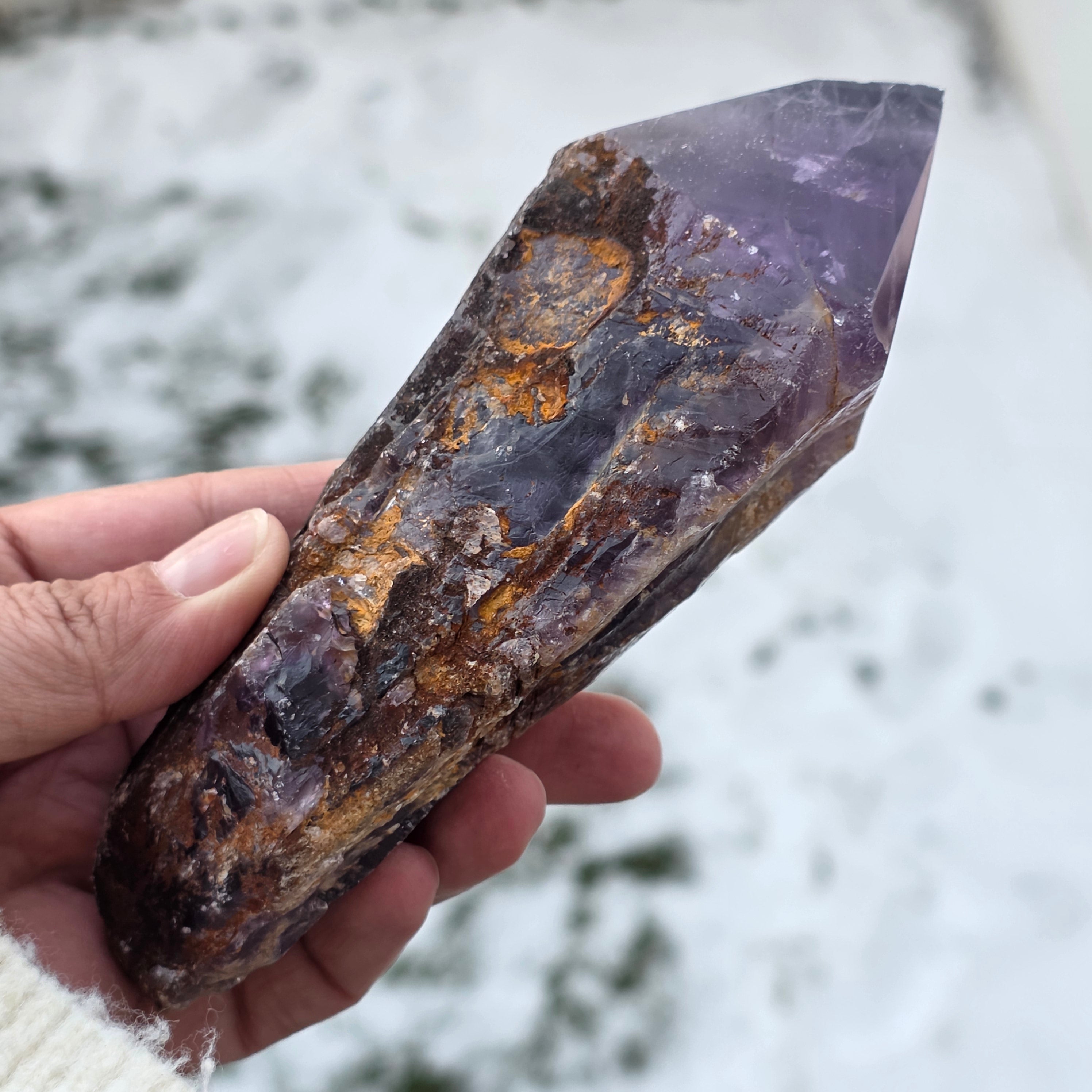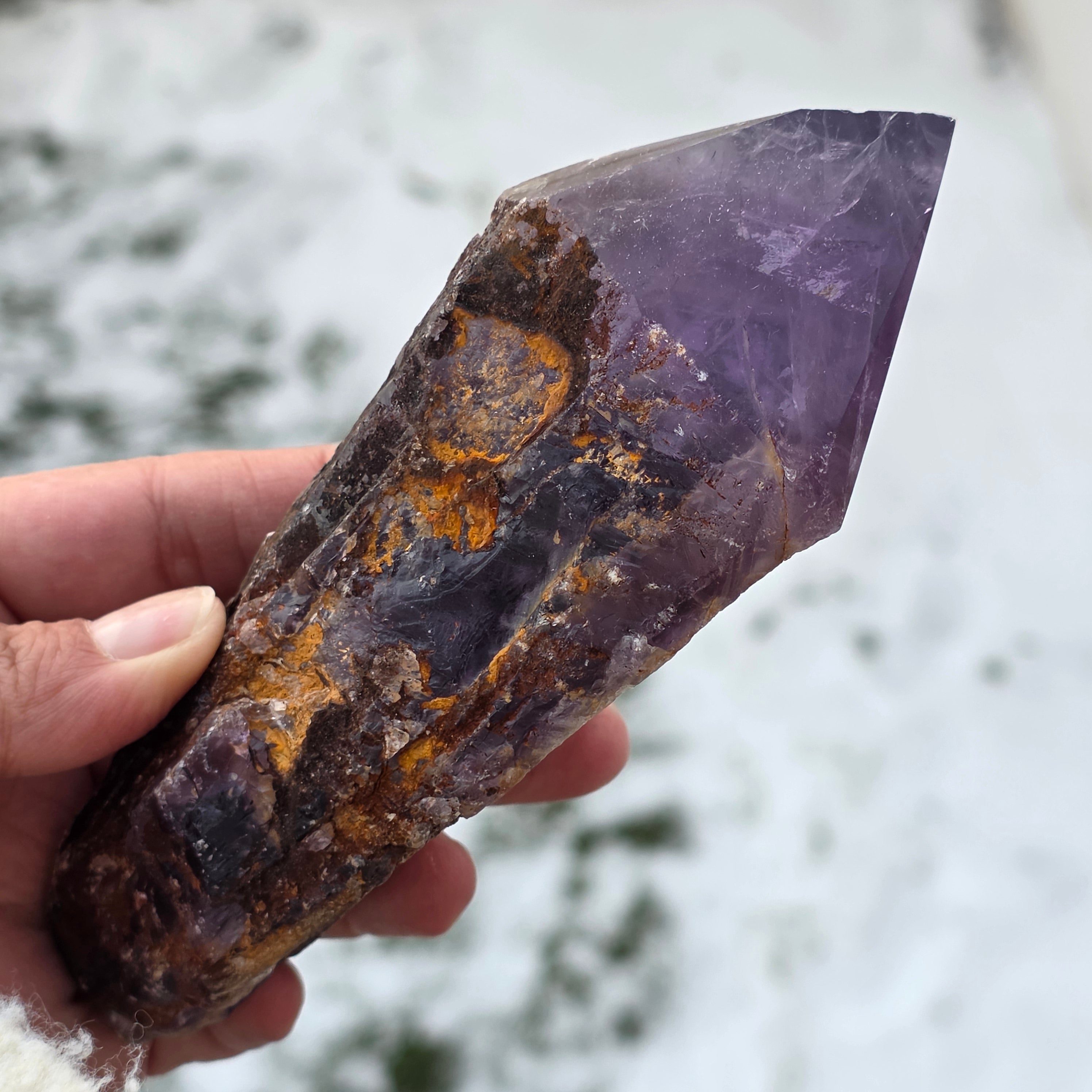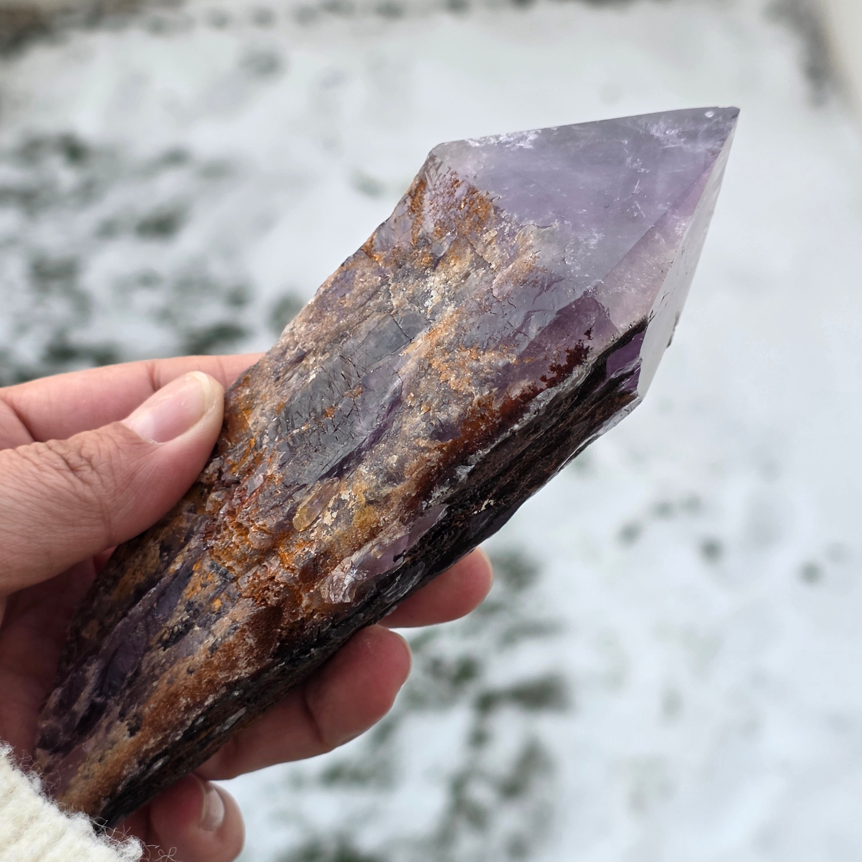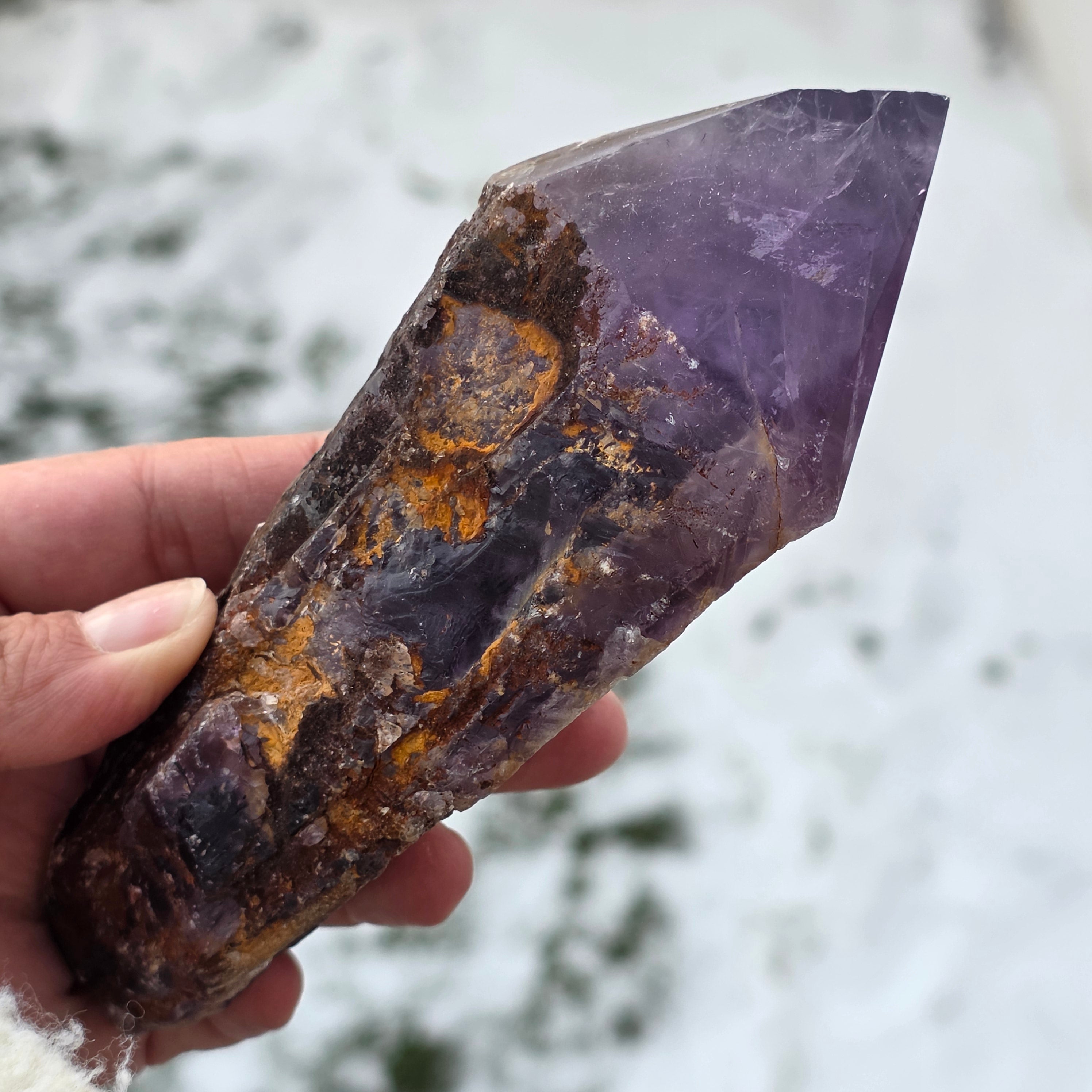 Ametistul Bahia, uneori numit și "Colțul Dragonului", este extras din regiunea Bahia, Brazilia. Fiecare cristal este un specimen natural unic, cu o formă cristalină bine definită și prezintă chei sau proeminente pe toată lungimea sa. Aceste cristale nu sunt desprinse dintr-un grup mai mare, ci se formează individual, unul câte unul.