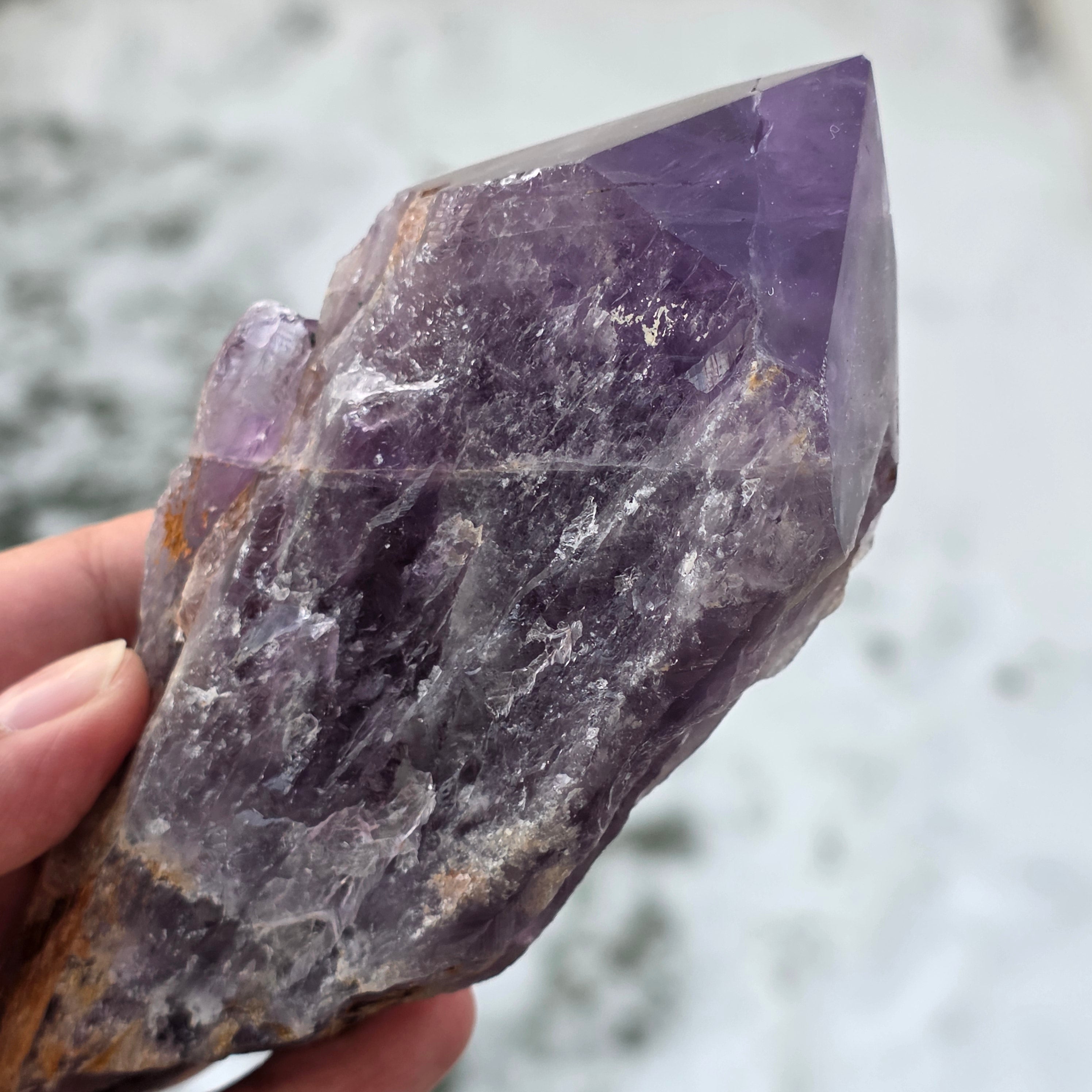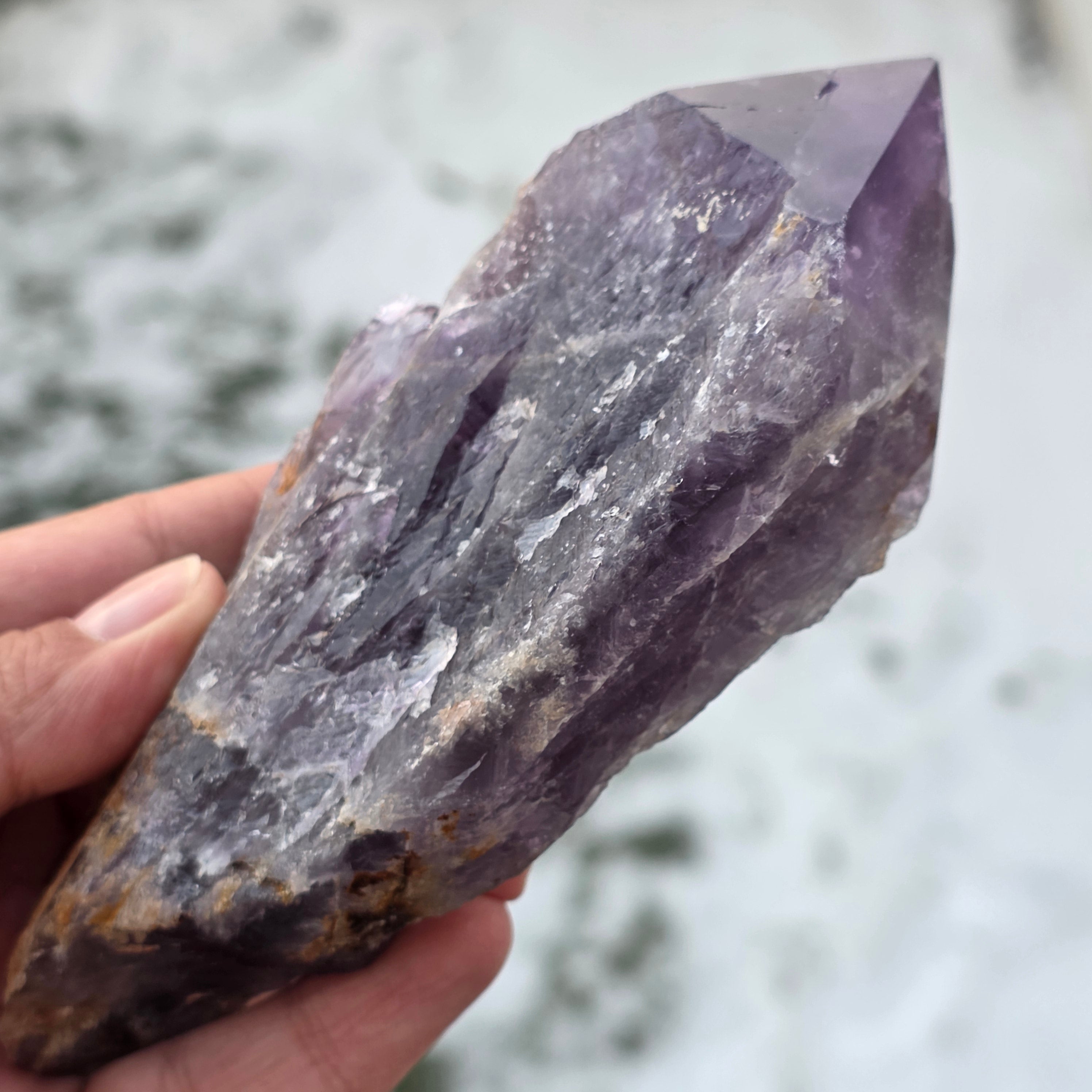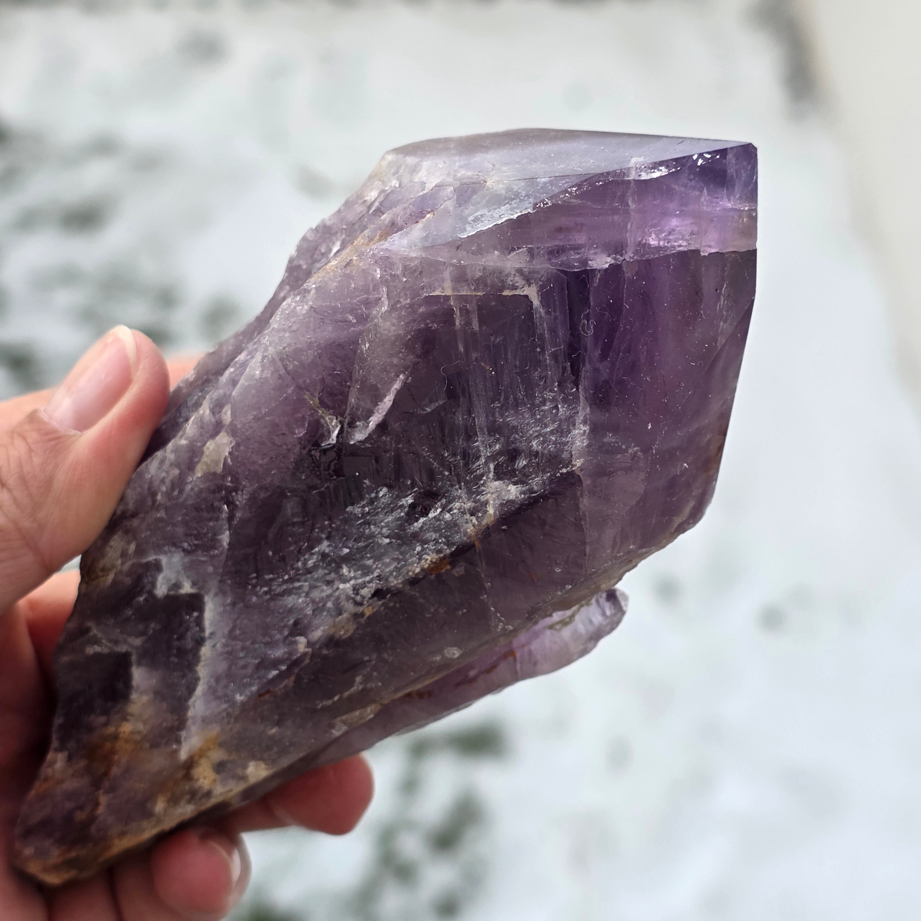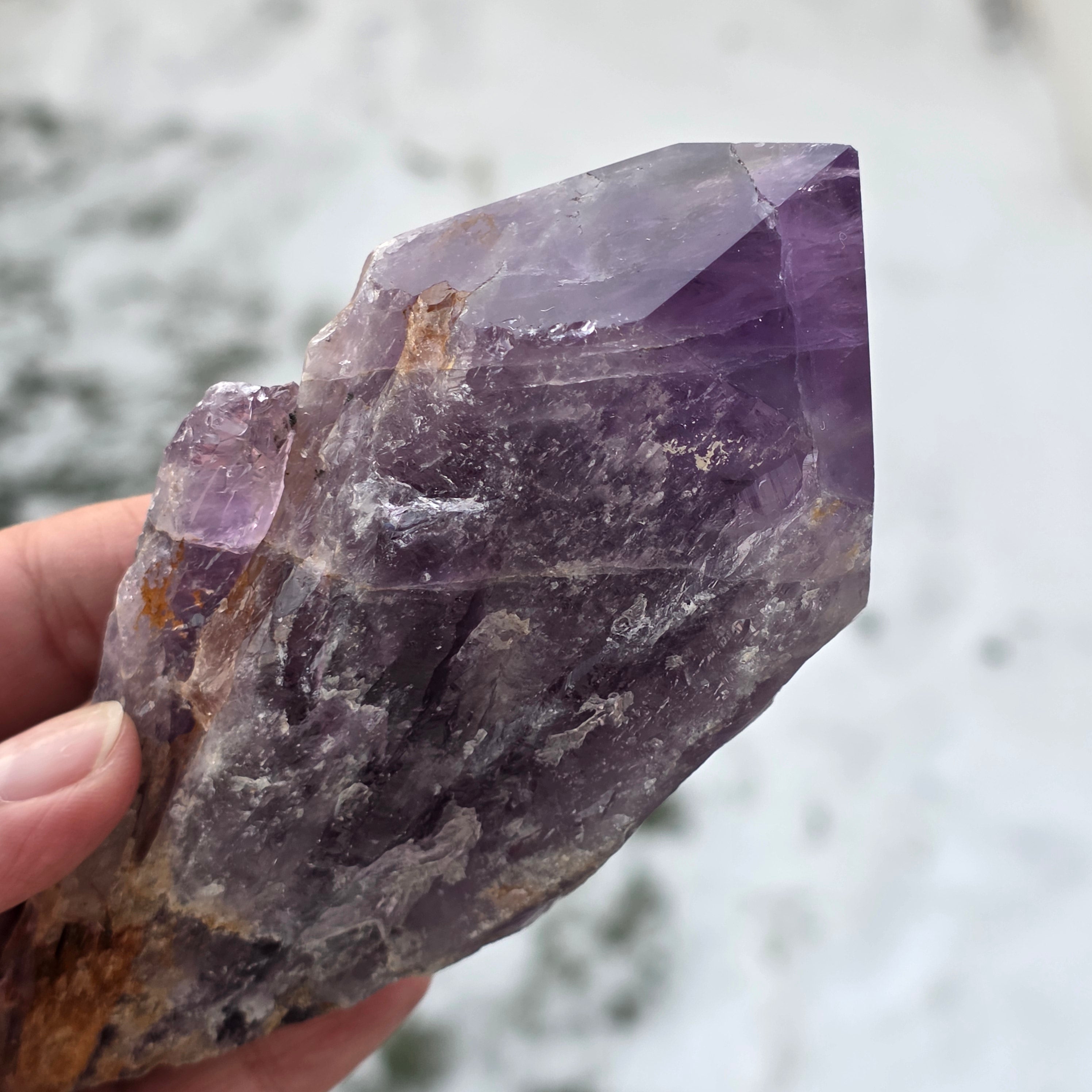 Ametistul Bahia, uneori numit și "Colțul Dragonului", este extras din regiunea Bahia, Brazilia. Fiecare cristal este un specimen natural unic, cu o formă cristalină bine definită și prezintă chei sau proeminente pe toată lungimea sa. Aceste cristale nu sunt desprinse dintr-un grup mai mare, ci se formează individual, unul câte unul.