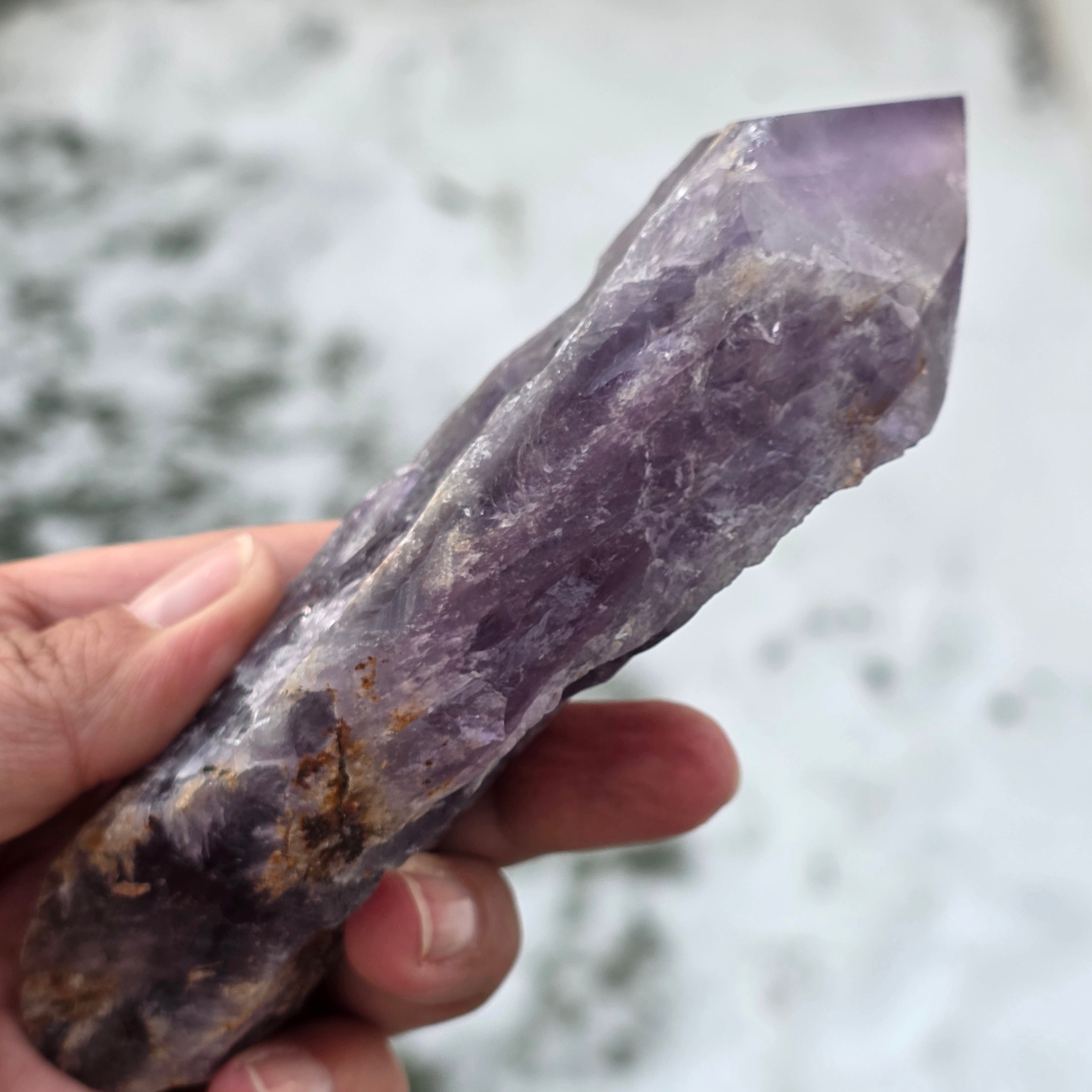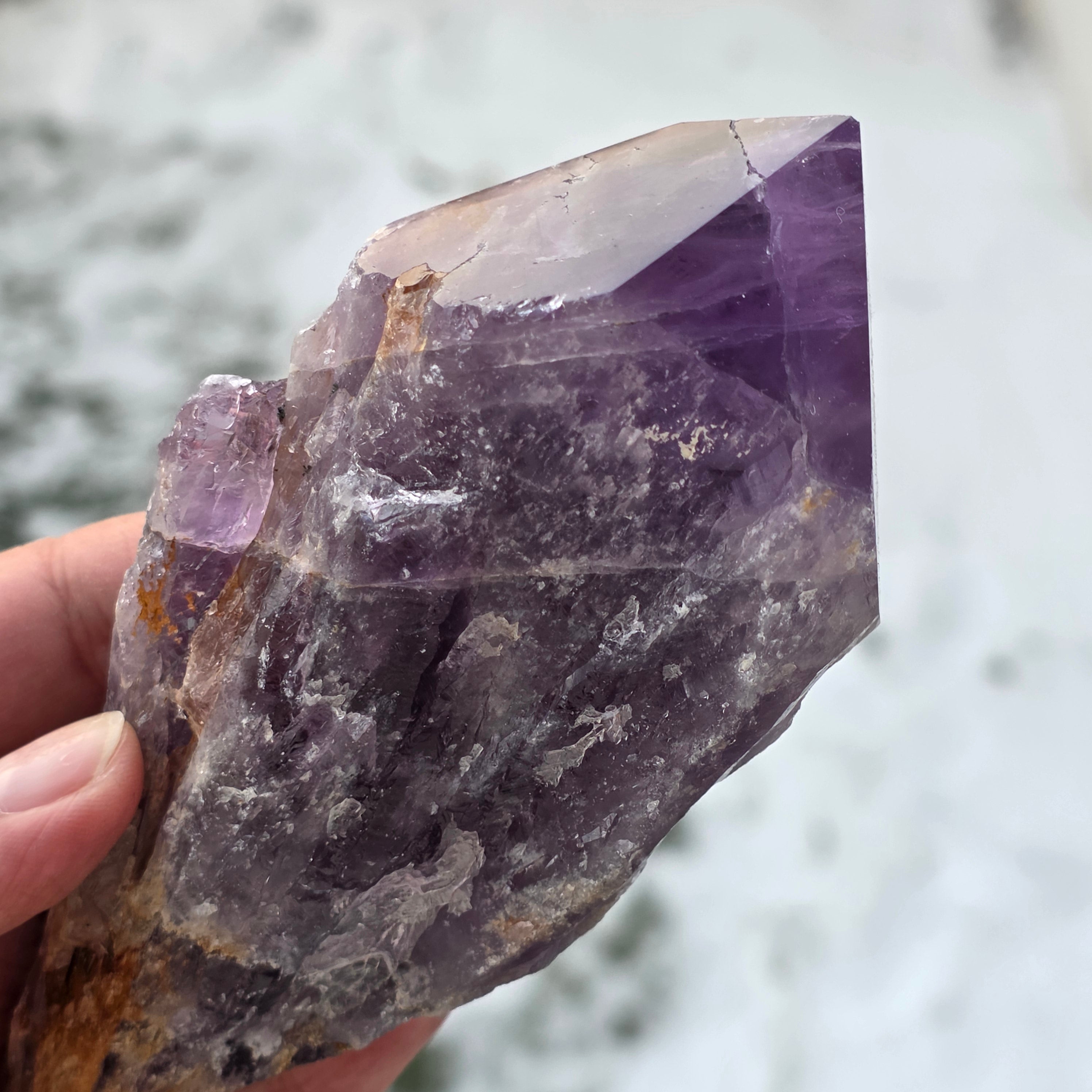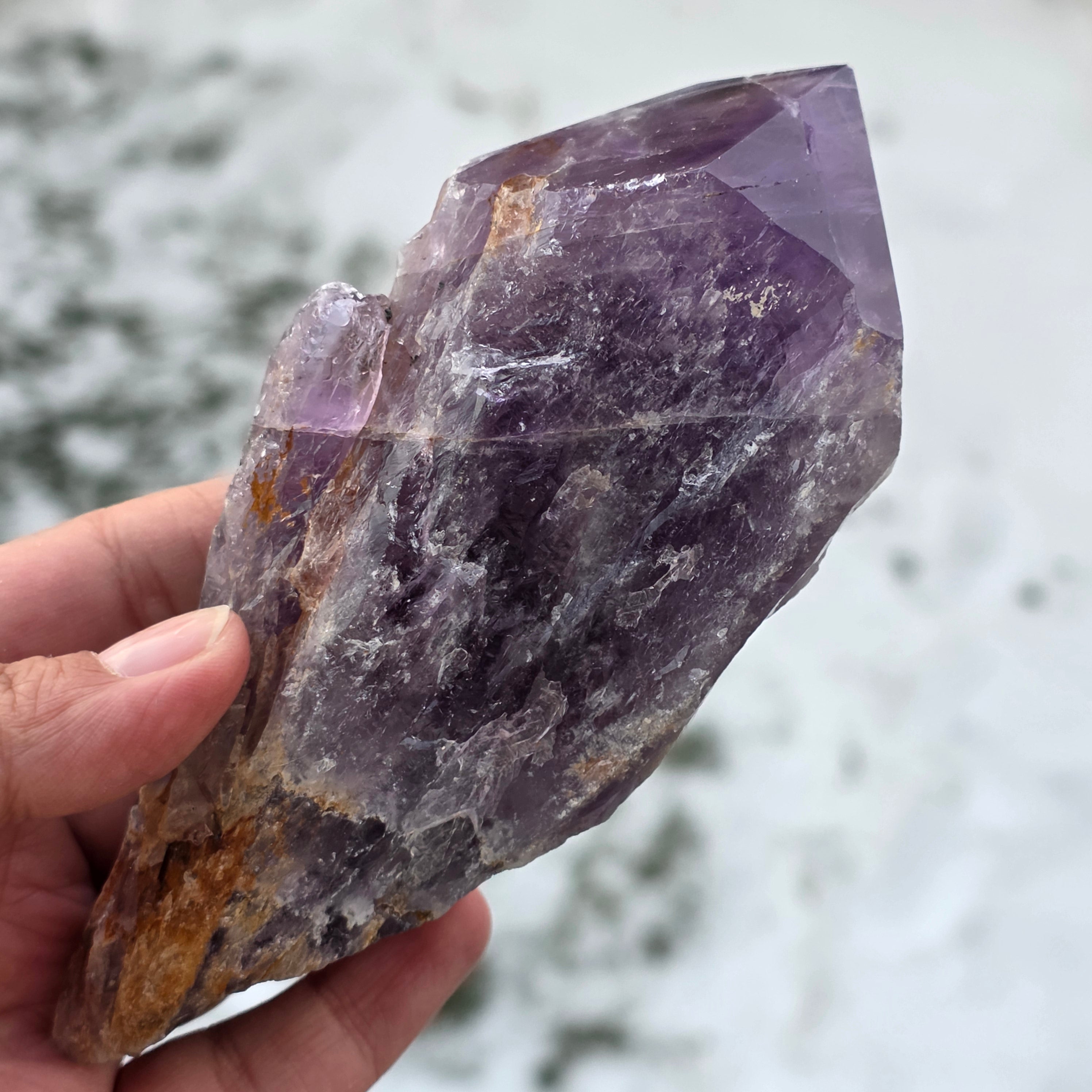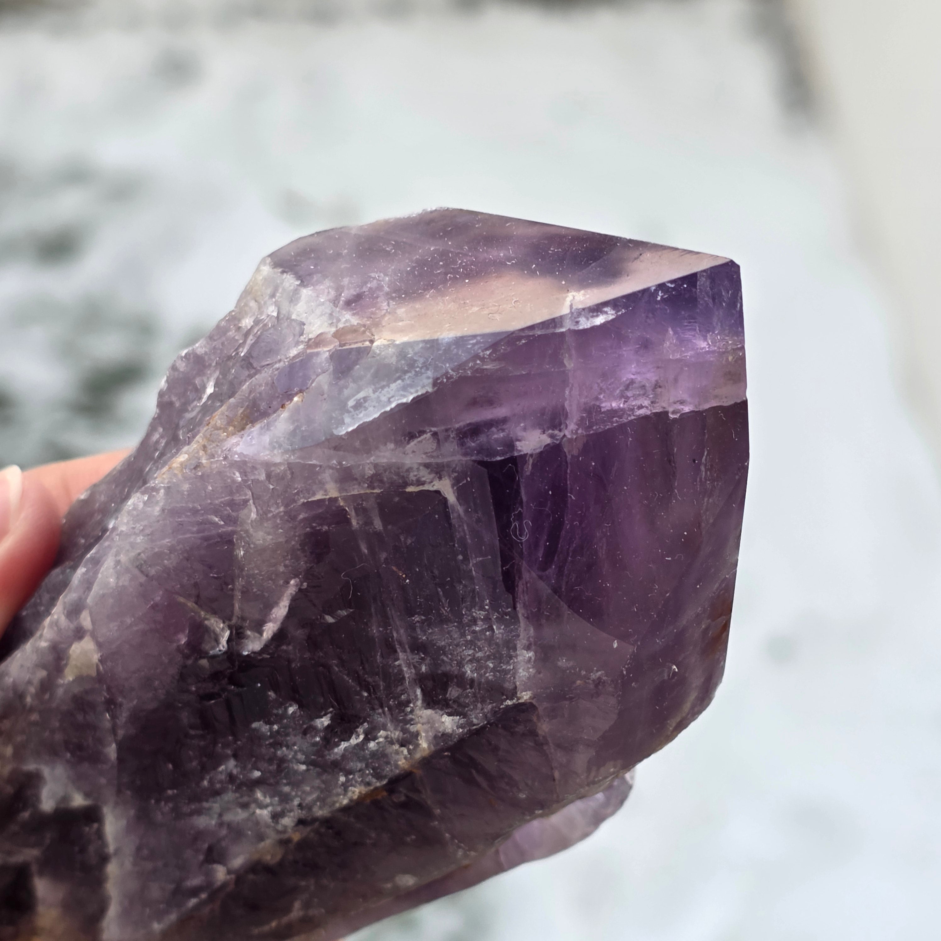 Ametistul Bahia, uneori numit și "Colțul Dragonului", este extras din regiunea Bahia, Brazilia. Fiecare cristal este un specimen natural unic, cu o formă cristalină bine definită și prezintă chei sau proeminente pe toată lungimea sa. Aceste cristale nu sunt desprinse dintr-un grup mai mare, ci se formează individual, unul câte unul.