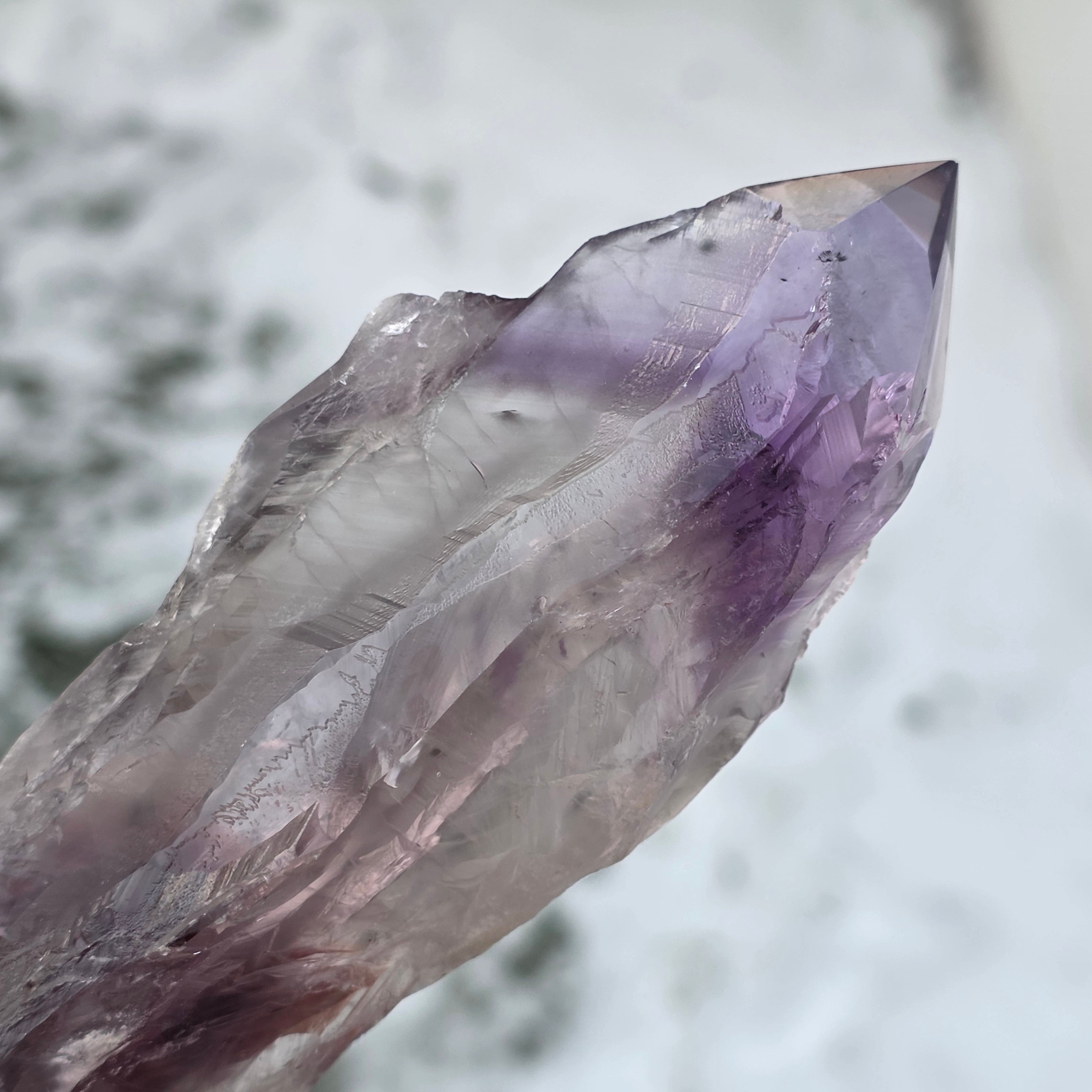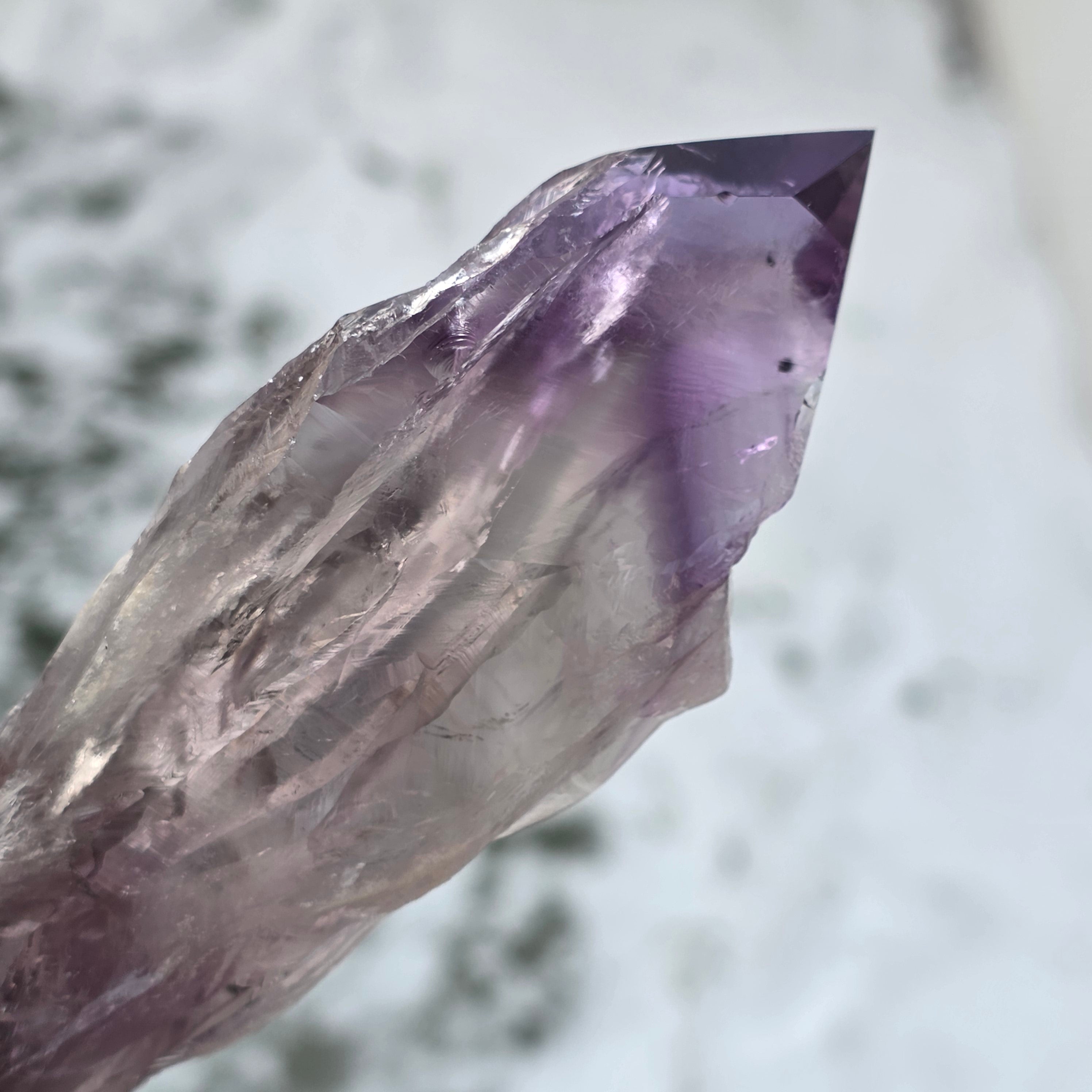 Ametistul Bahia, uneori numit și "Colțul Dragonului", este extras din regiunea Bahia, Brazilia. Fiecare cristal este un specimen natural unic, cu o formă cristalină bine definită și prezintă chei sau proeminente pe toată lungimea sa. Aceste cristale nu sunt desprinse dintr-un grup mai mare, ci se formează individual, unul câte unul.