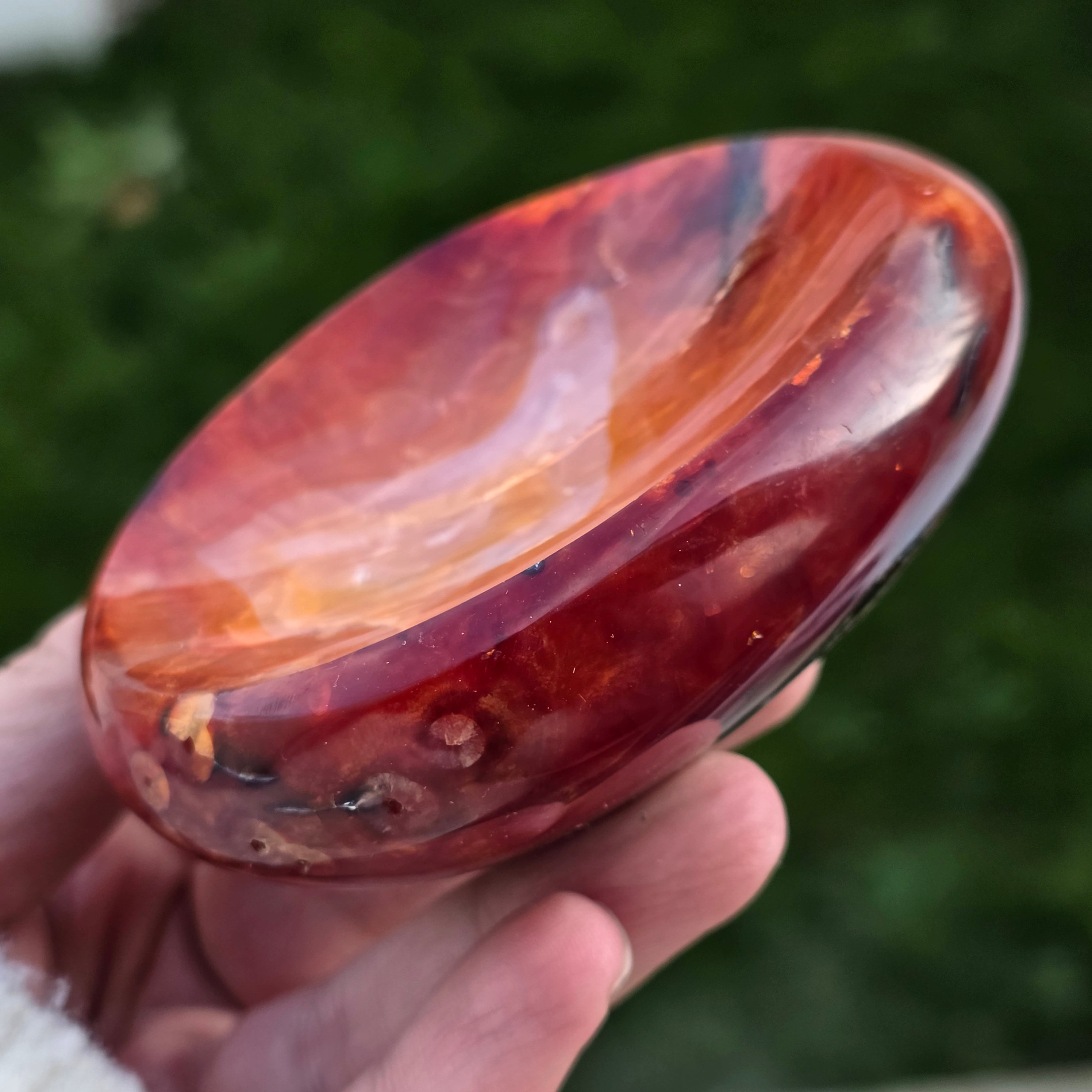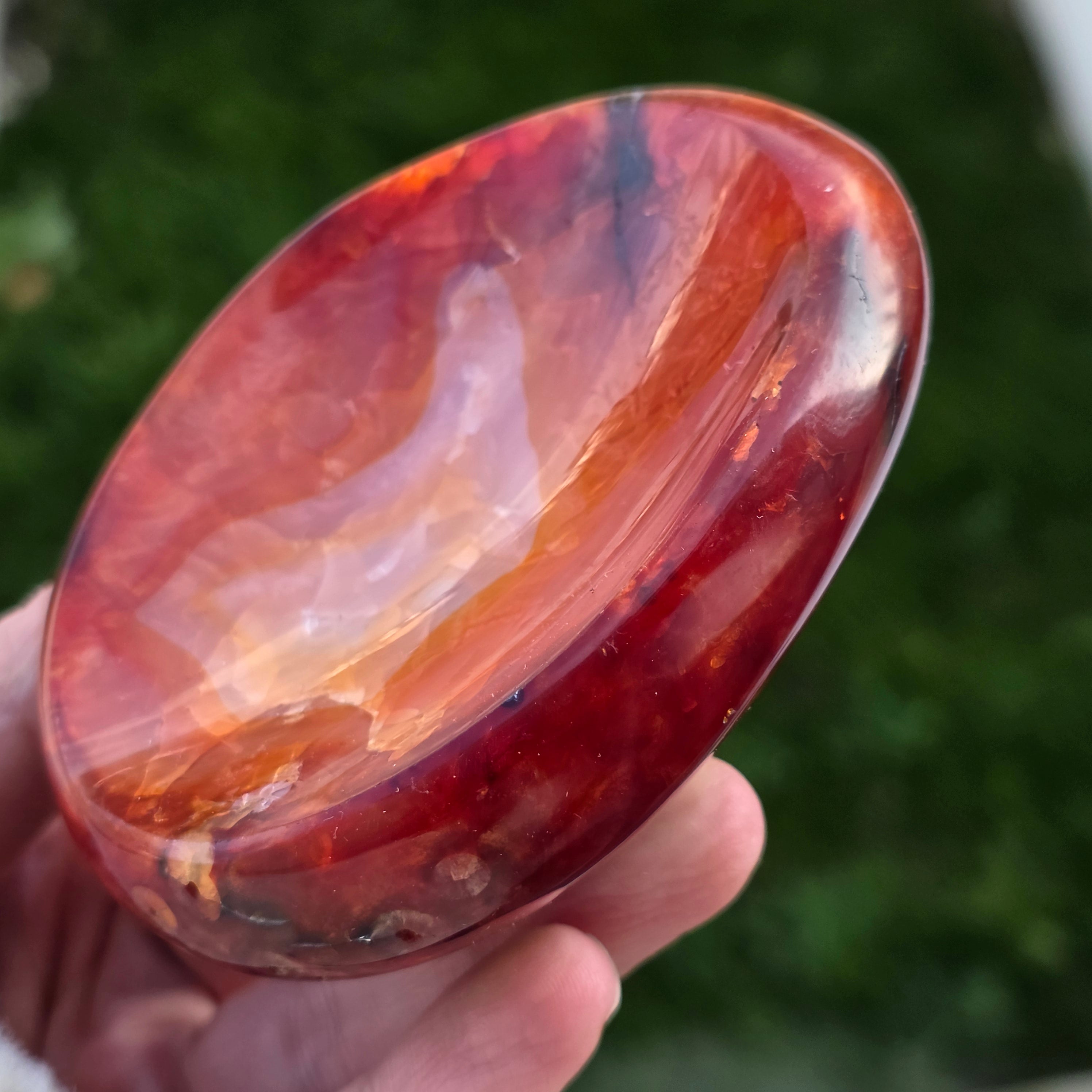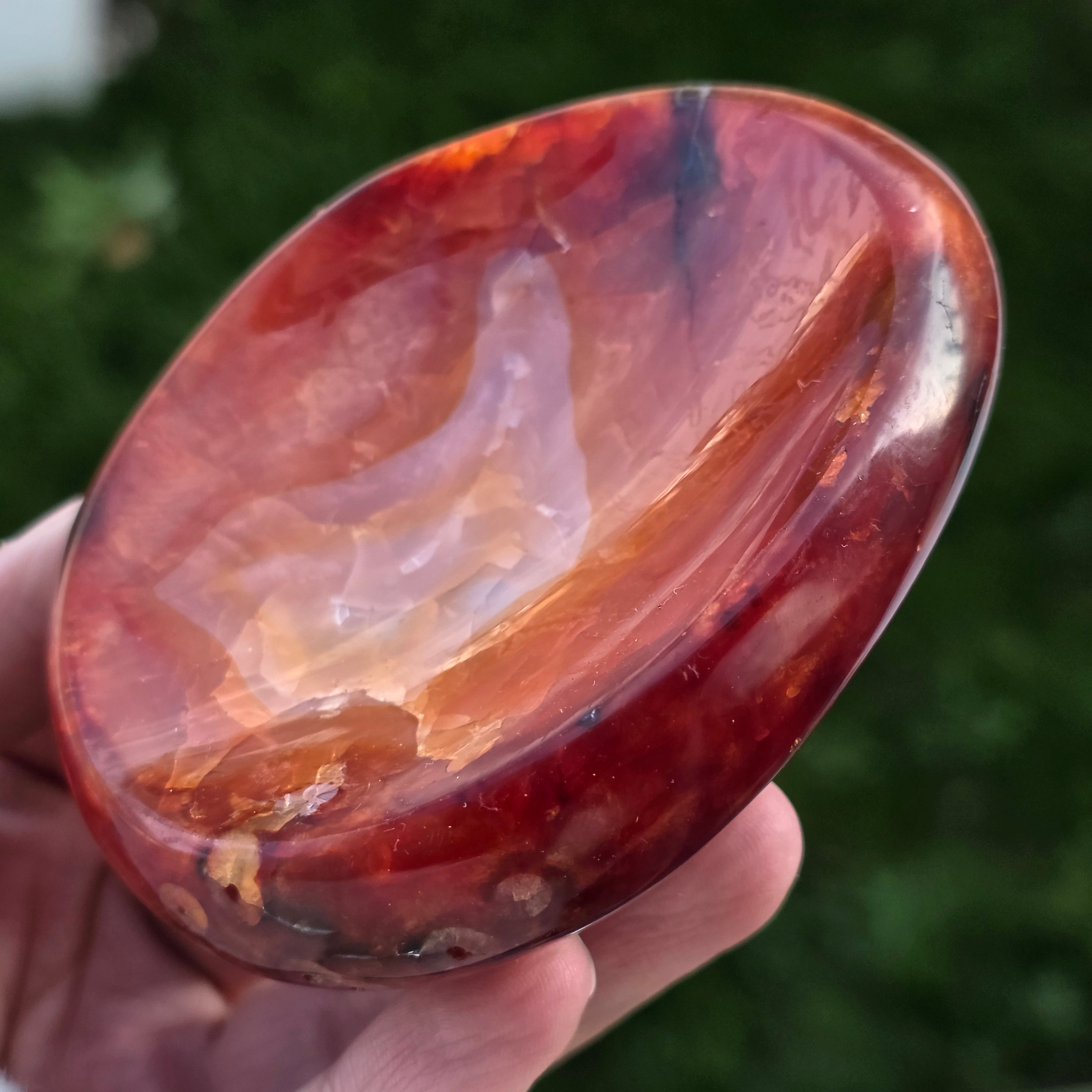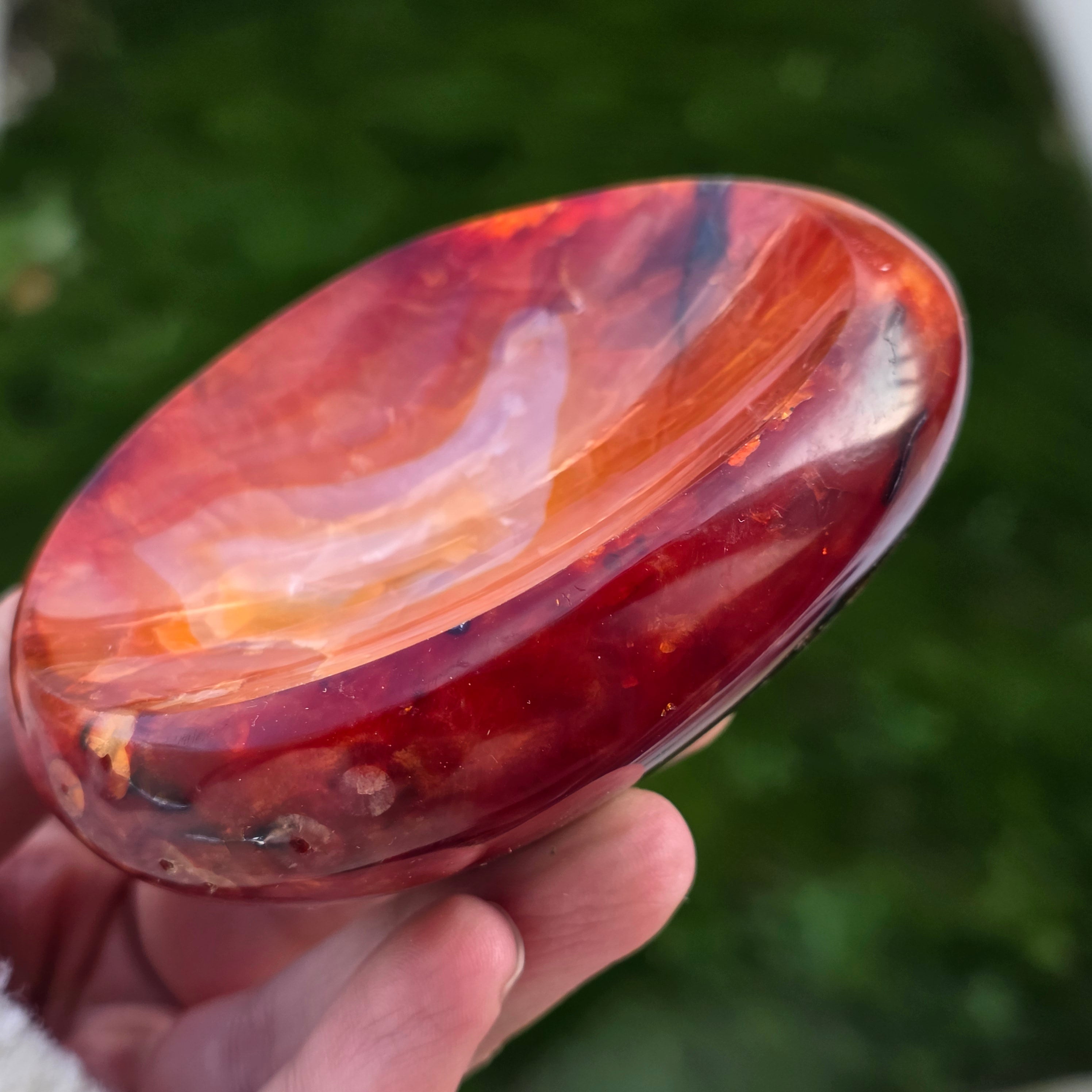 Bol din carneol natural unicat, provenit din Madagascar, sculptat cu grijă pentru a evidenția frumusețea naturală a pietrei.