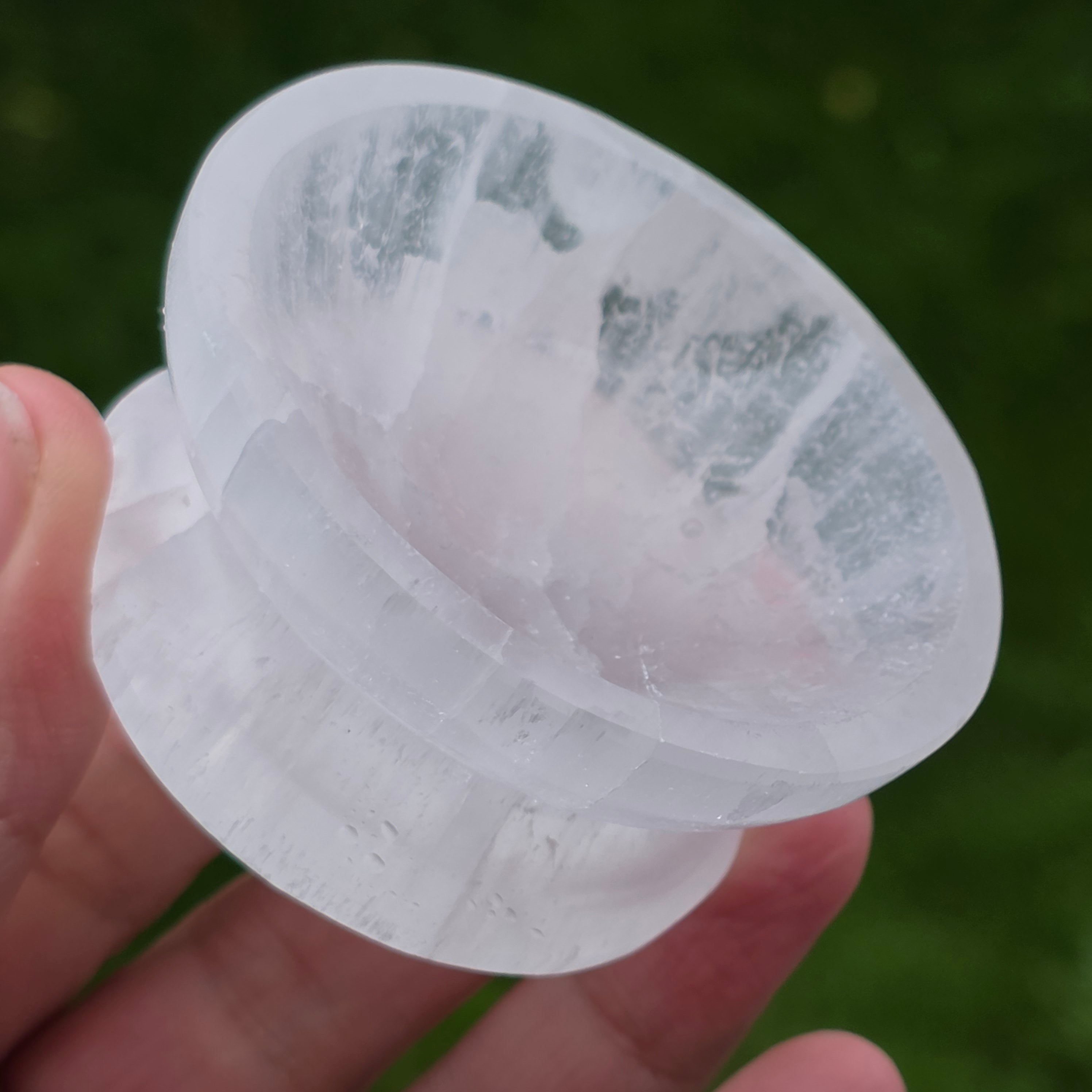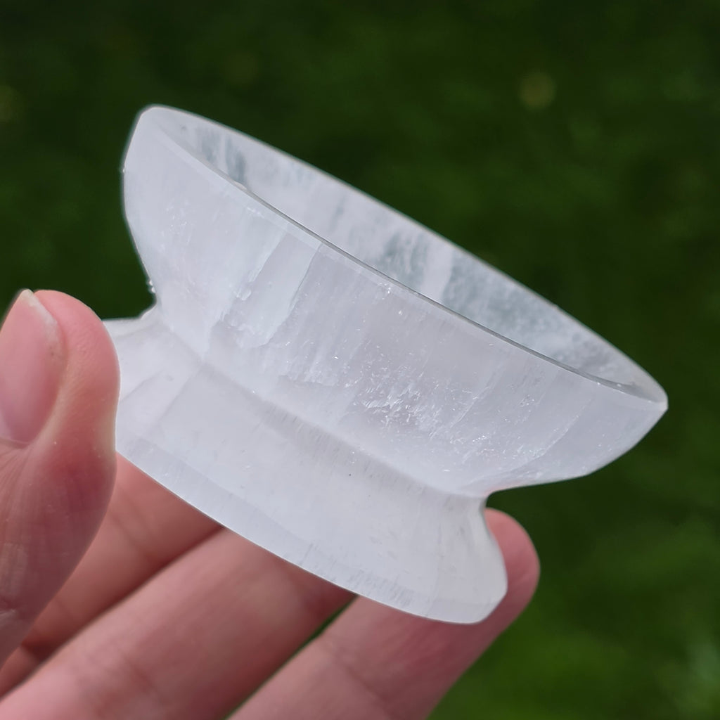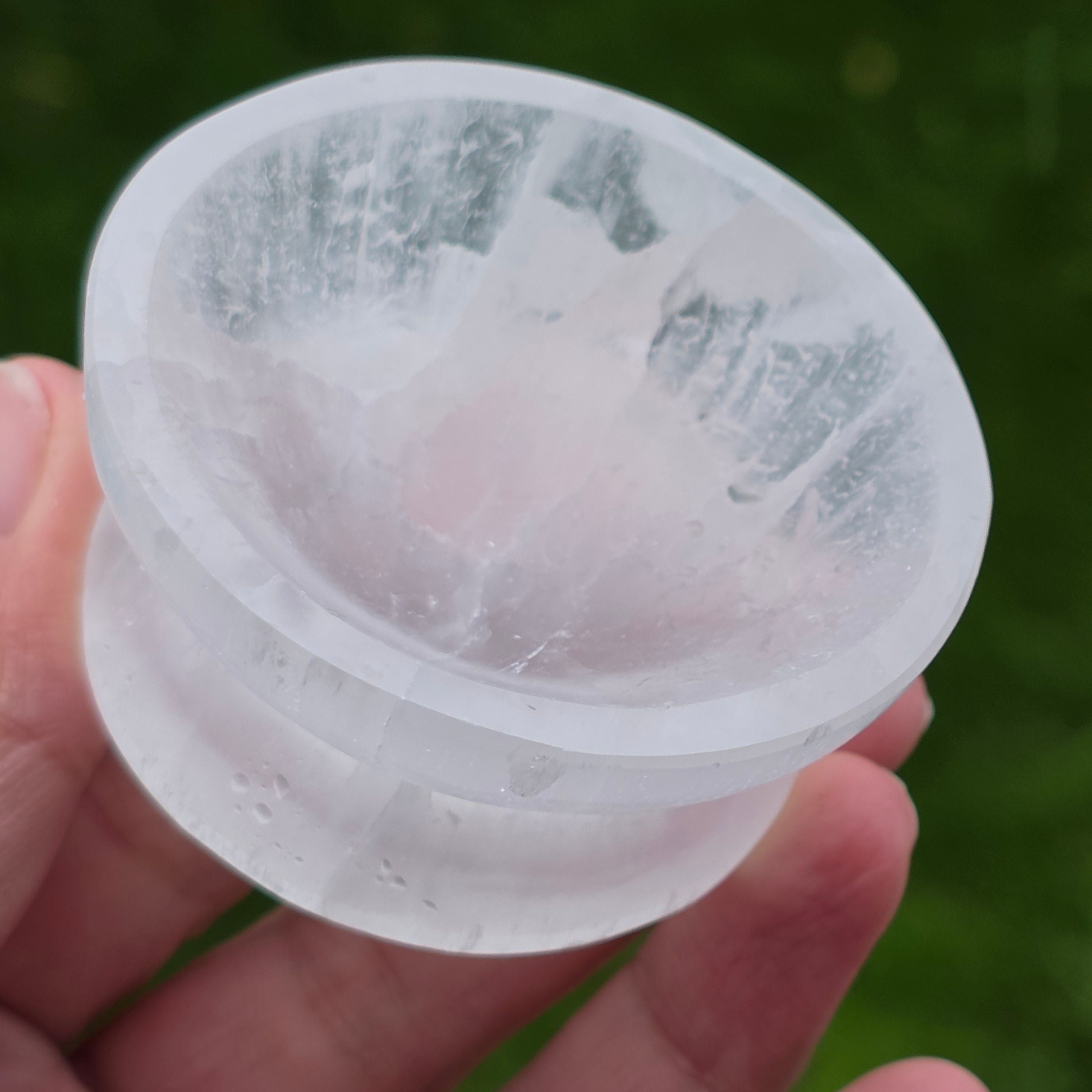 Bolul din Selenit este una dintre acele piese mici, dar spectaculoase, care transformă instant orice spațiu prin simplitatea și lumina lor interioară. Realizat manual din selenit marocan de o puritate remarcabilă, acest bol rotund, cu bază sculptată, emană un farmec discret și o transparență diafană ce amintește de lumina filtrată prin geamuri vechi de catedrală.