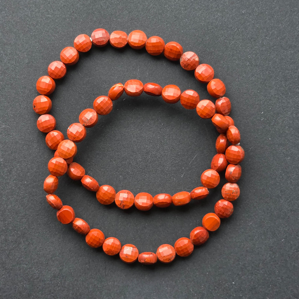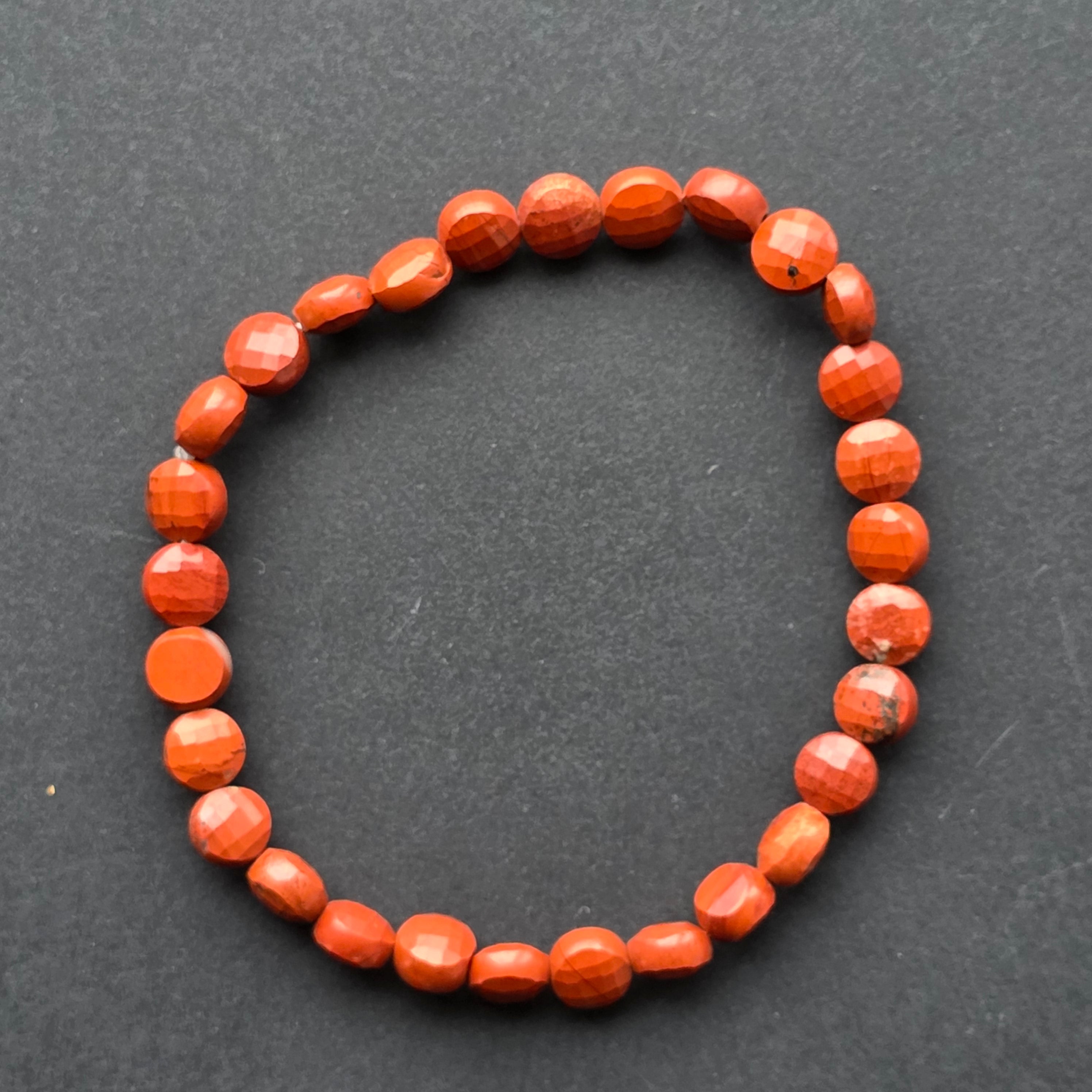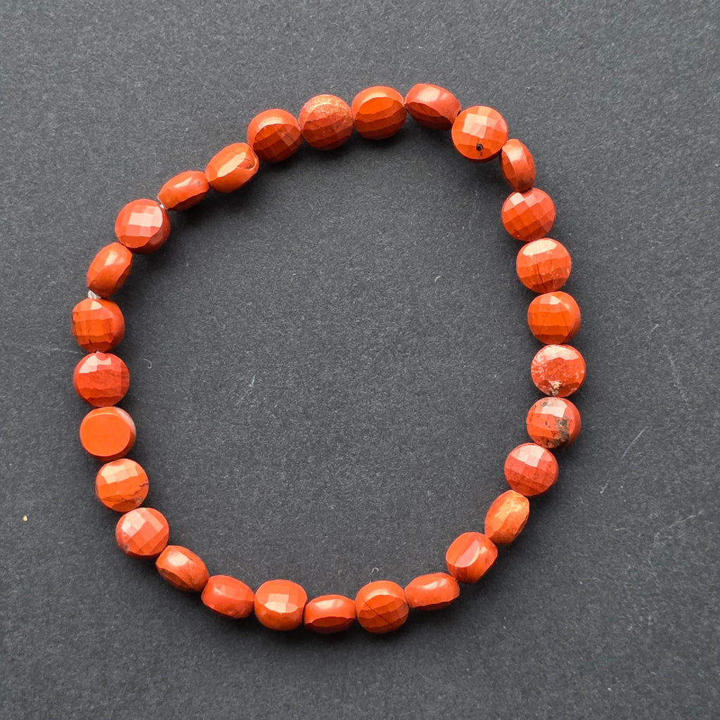 Brățară fațetată jasp rosu discuri rotunde 6x4 mm