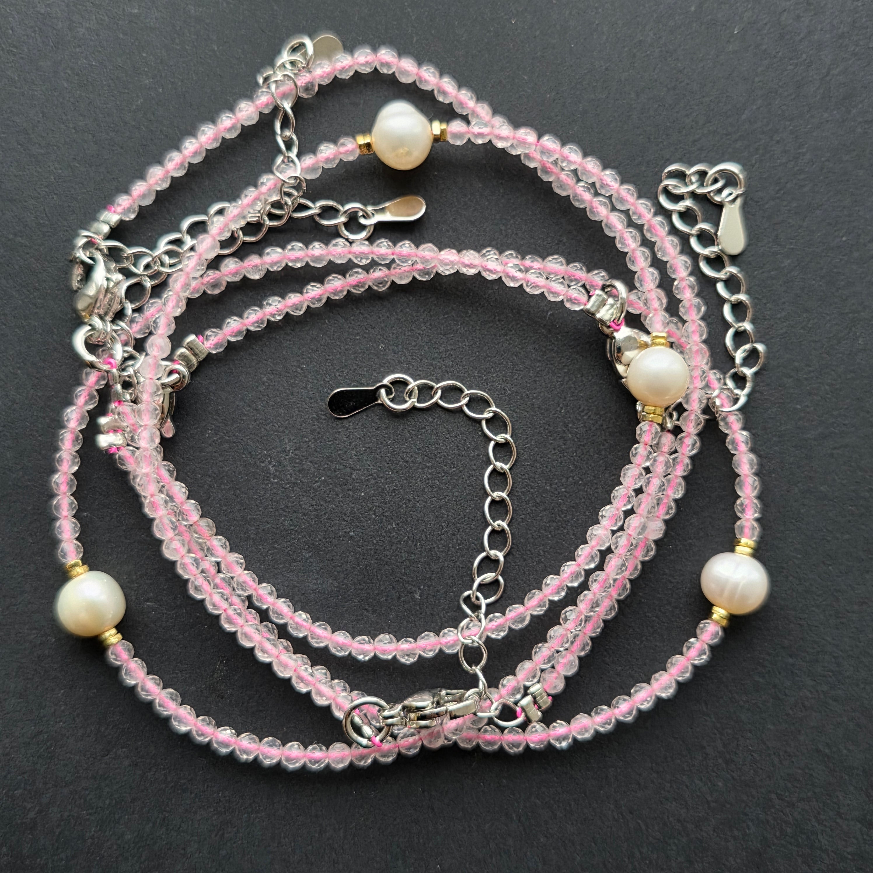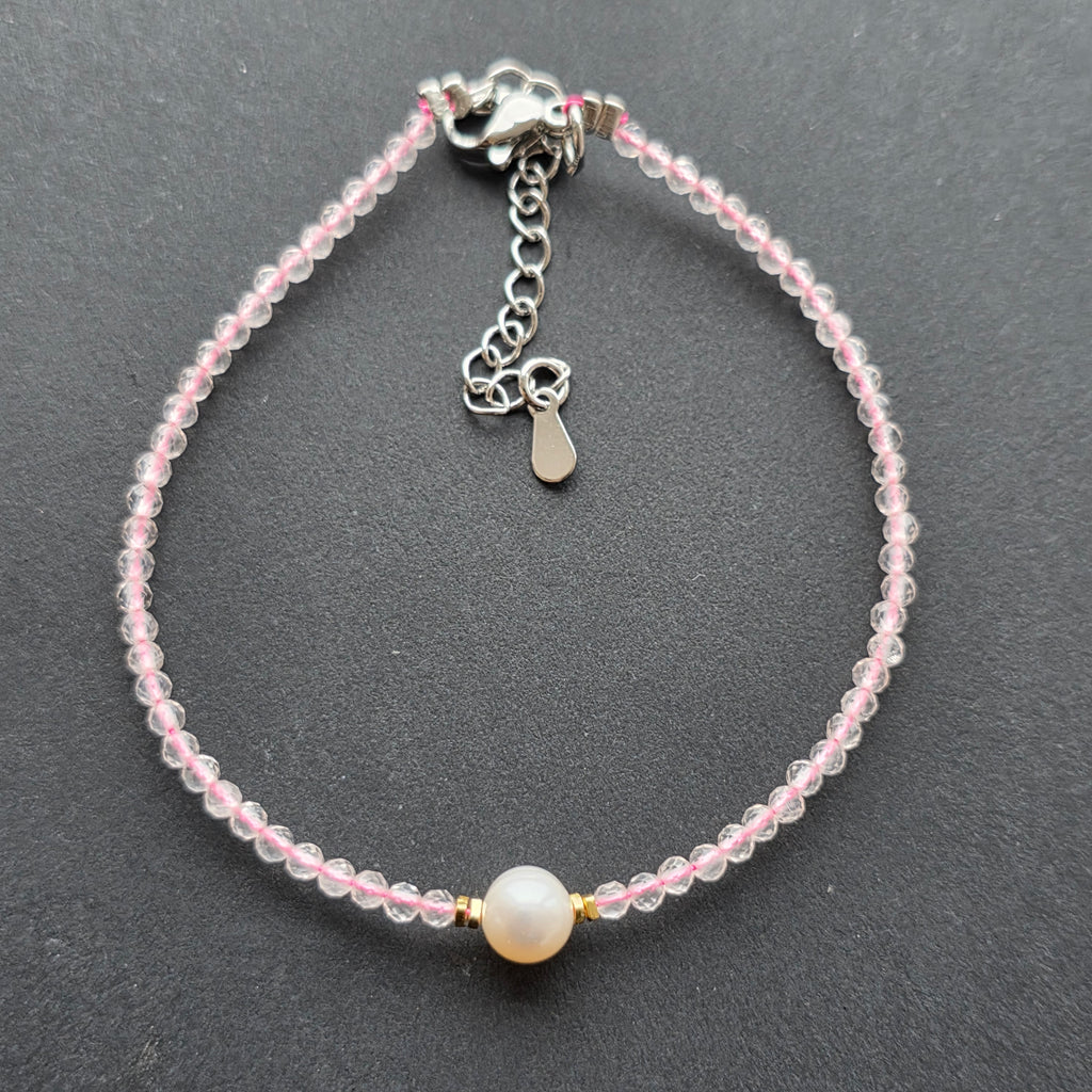 • Pietre: cuart roz natural fațetat 2 mm + perlă naturală