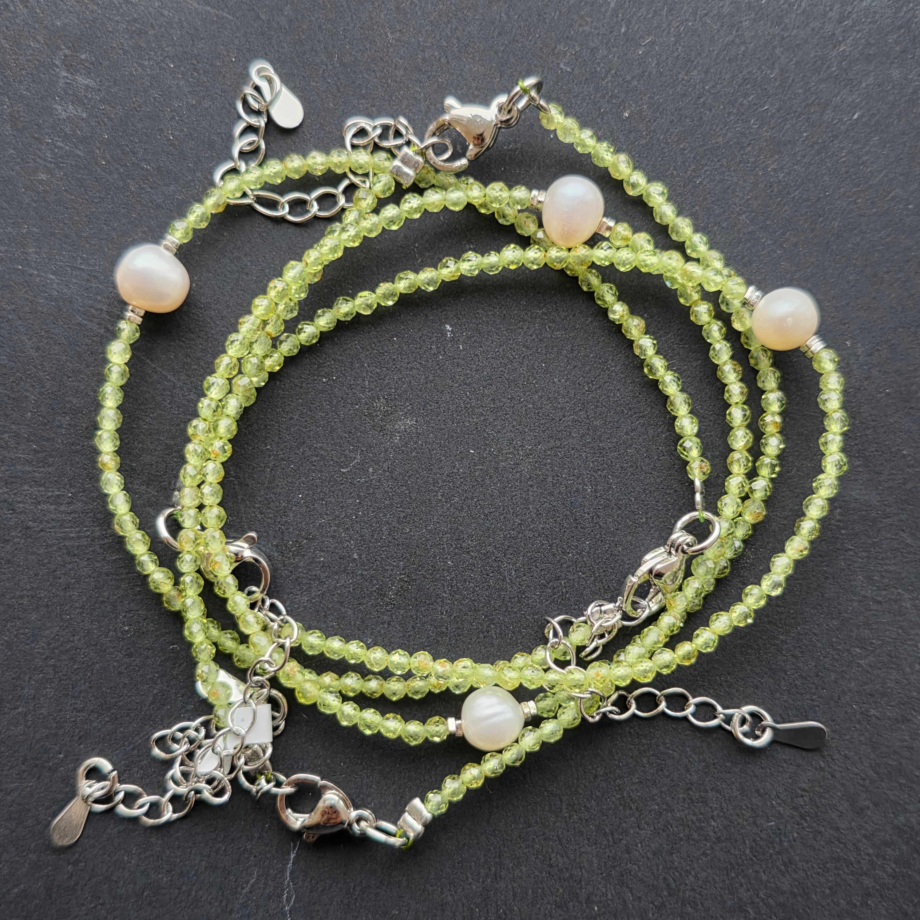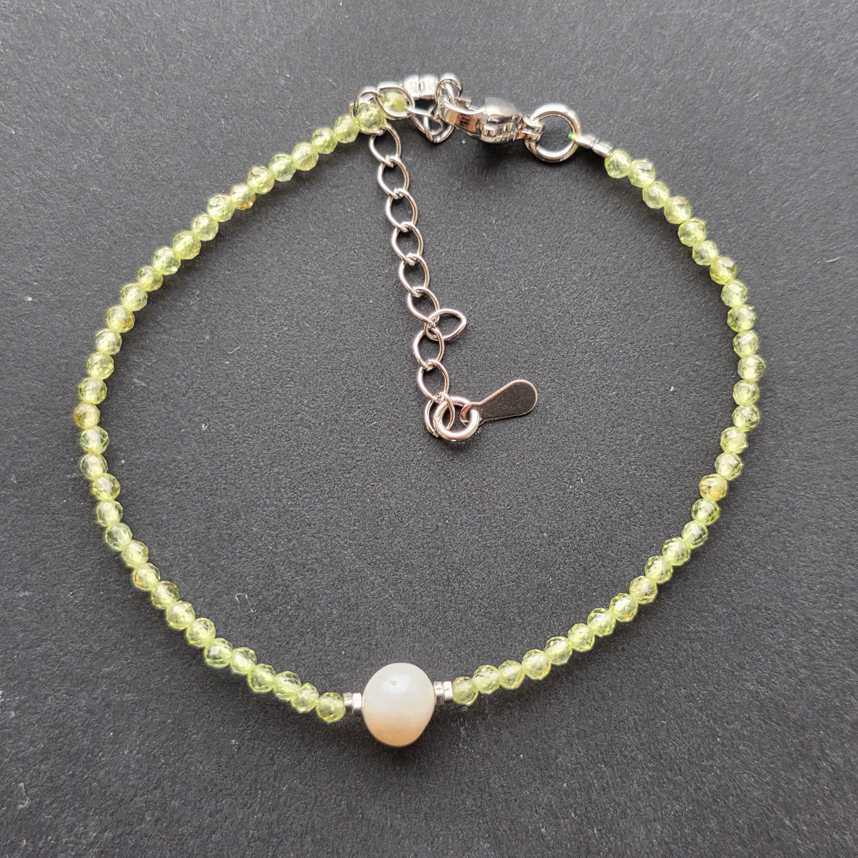 • Pietre: peridot natural fațetat 2 mm + perlă naturală