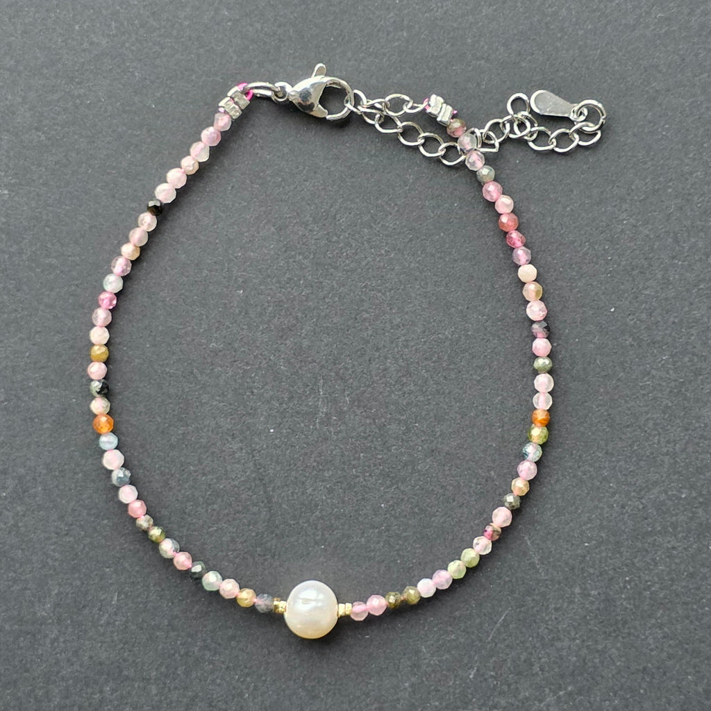 • Piatra: turmalină naturală, mix de culori si o perla accent