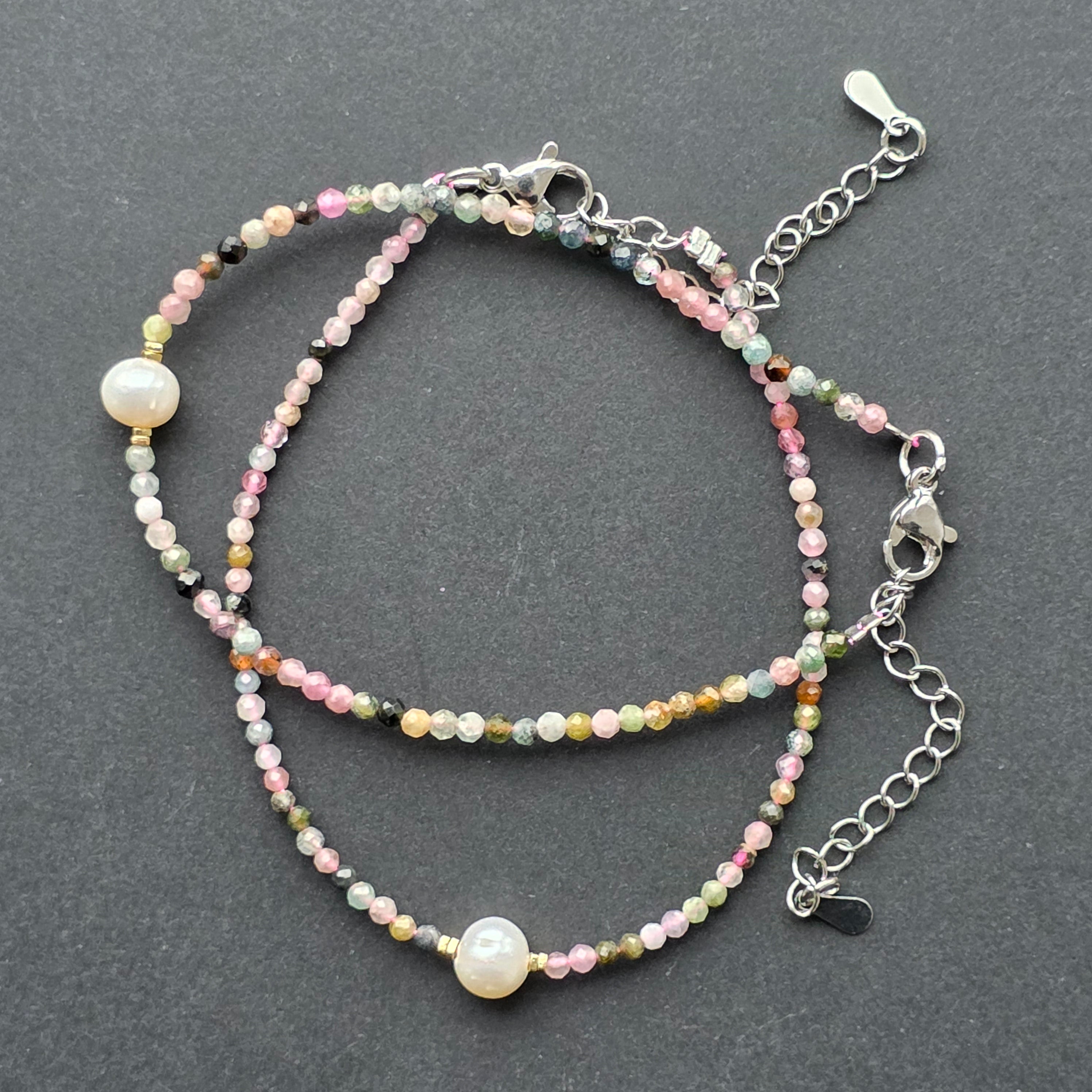 Brățară reglabila fatetata turmalina mix 2 mm | Pearl