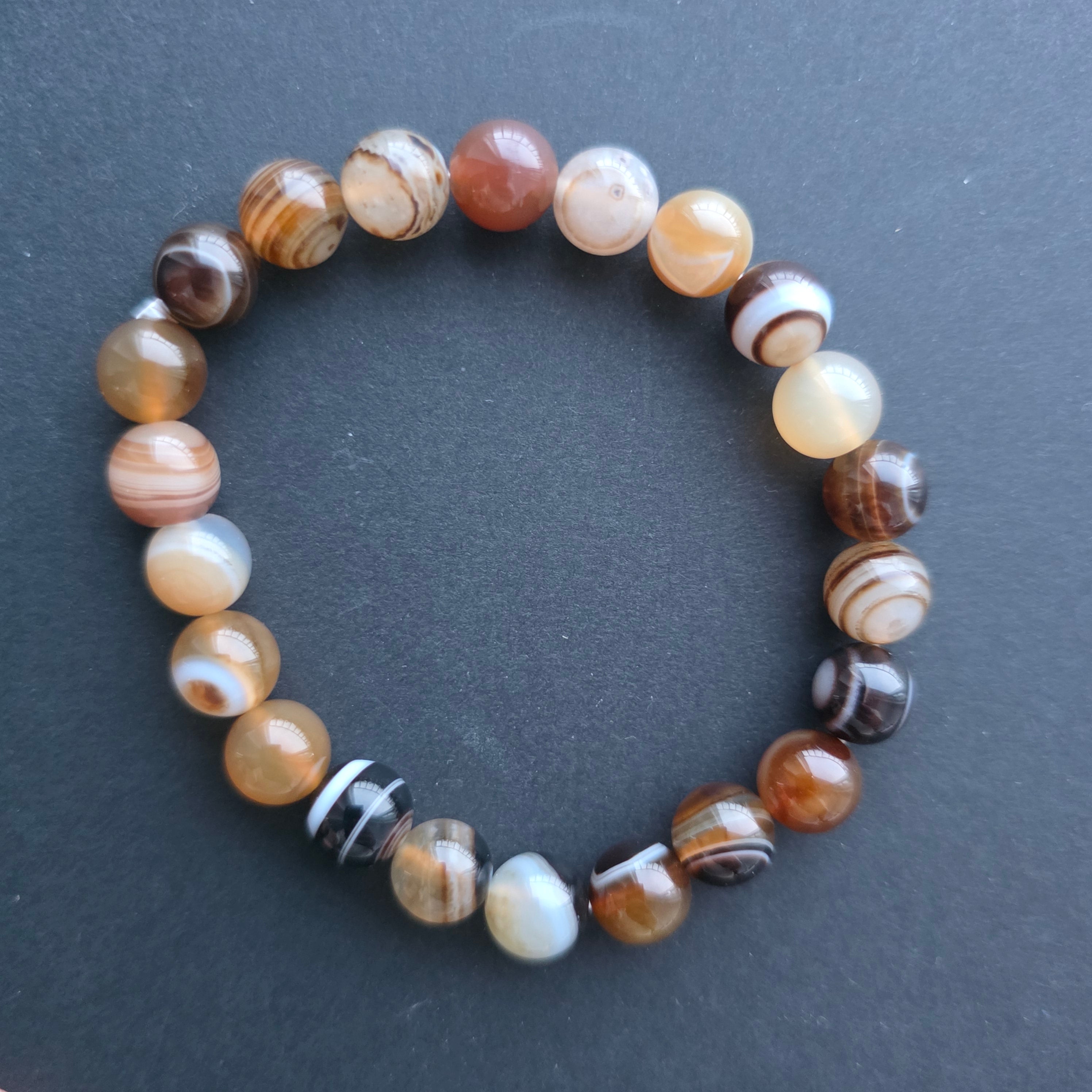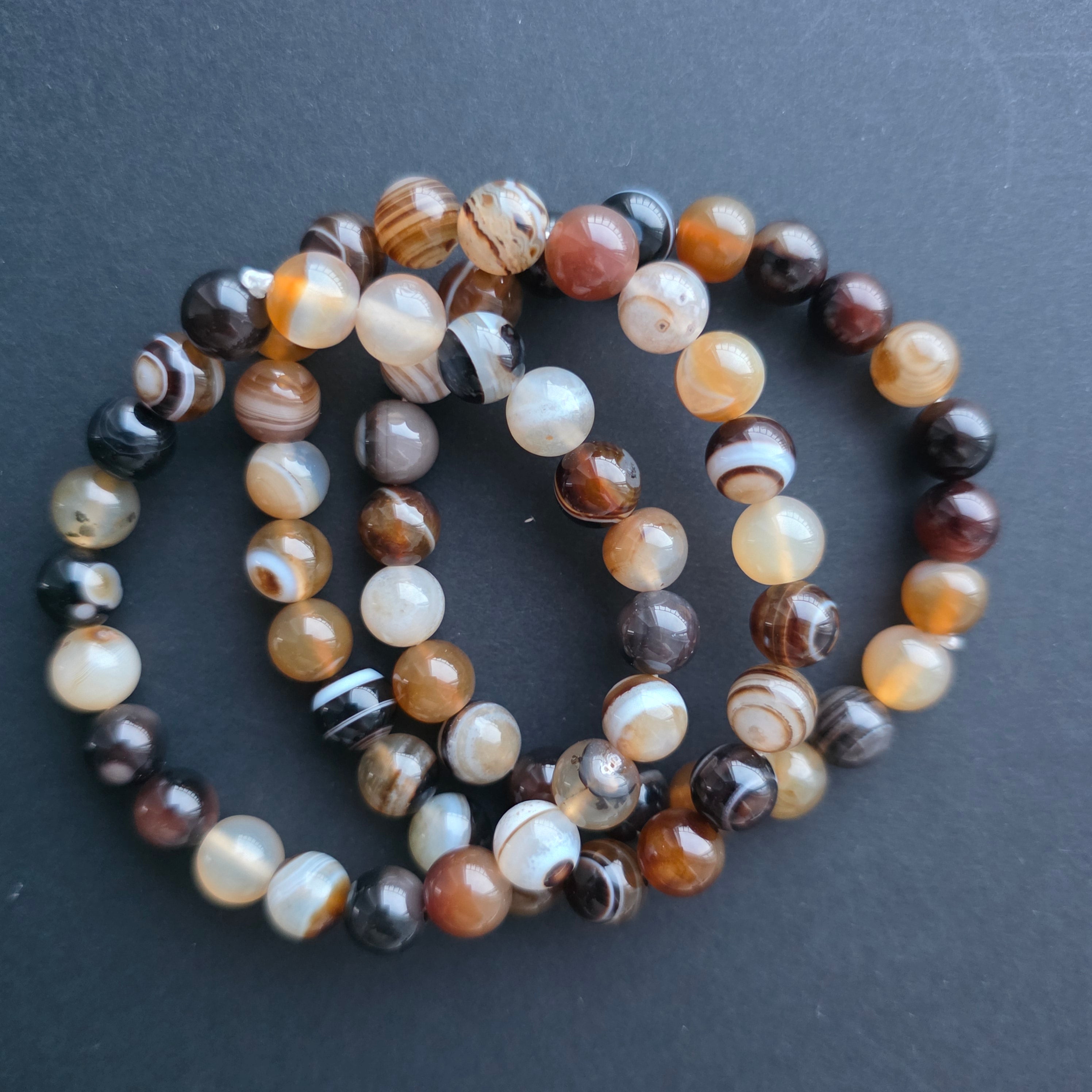 • Textură: suprafață lucioasă, mărgele masive, cu desene și benzi naturale specifice agatului