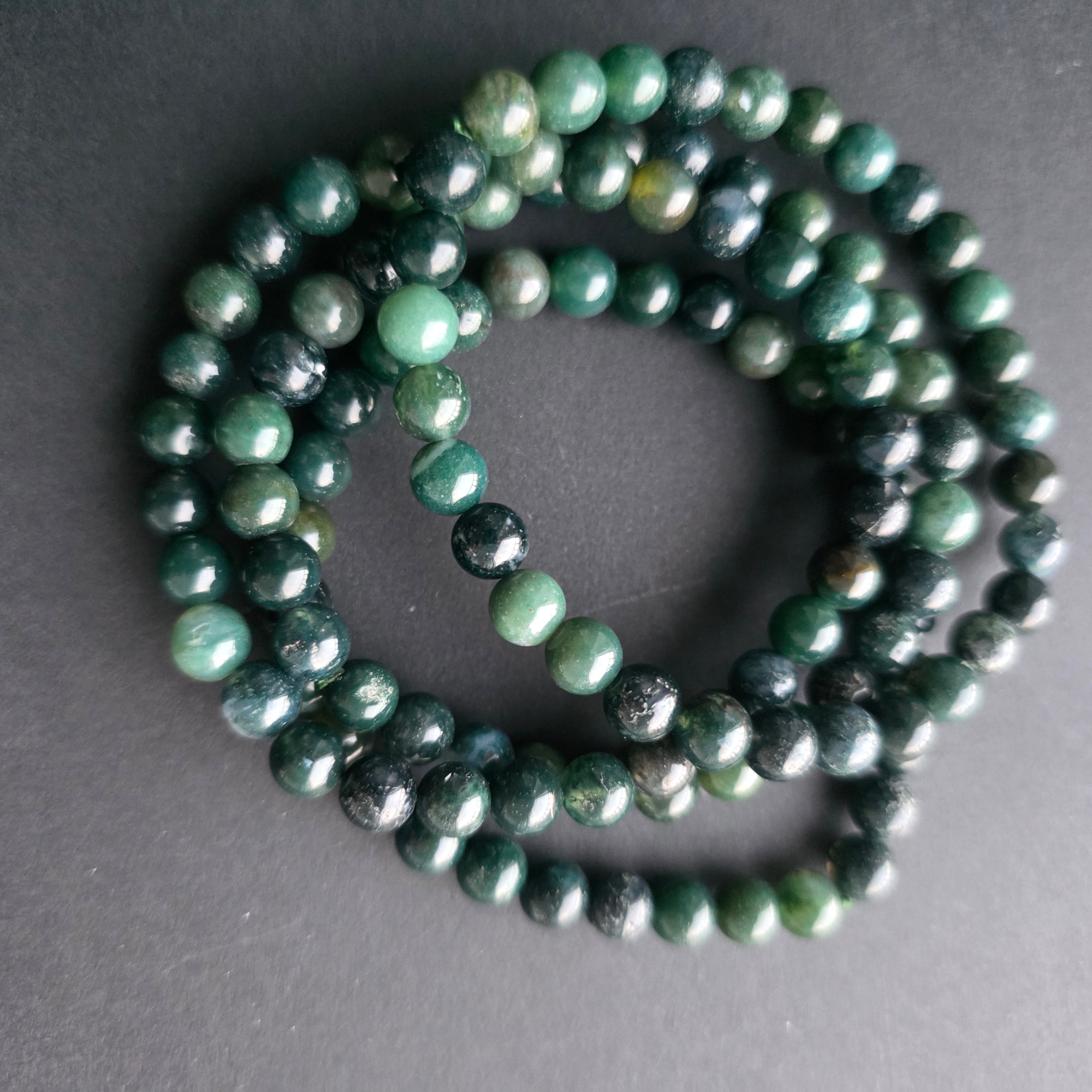 Descriere - Bratara agat muschi / moss 6 mm