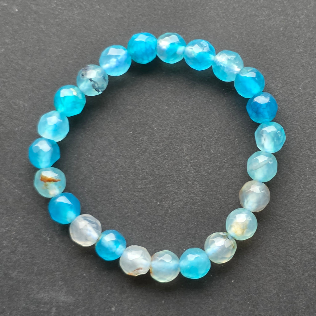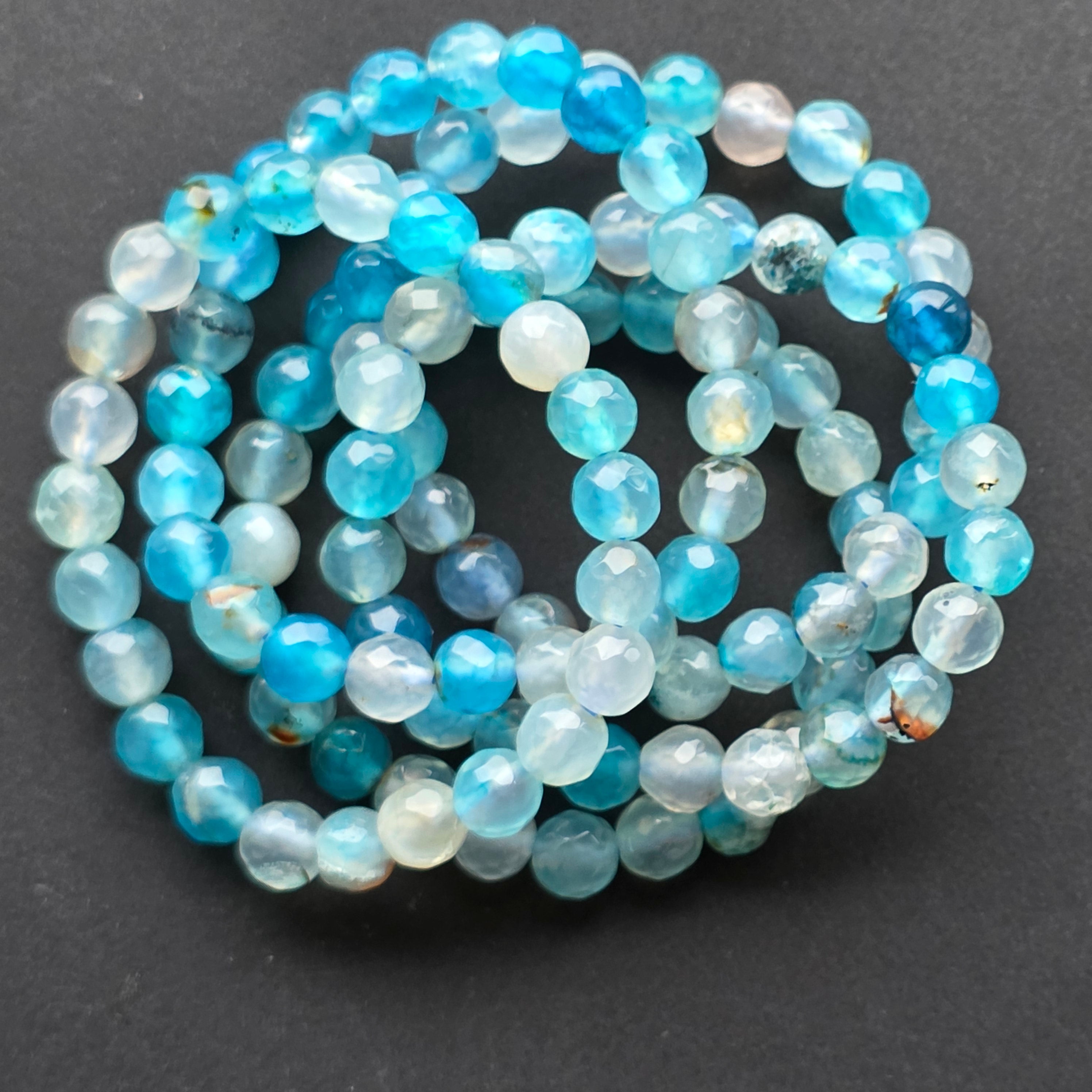 • Piatra: agat albastru natural, mărgele sferice fațetate 6 mm