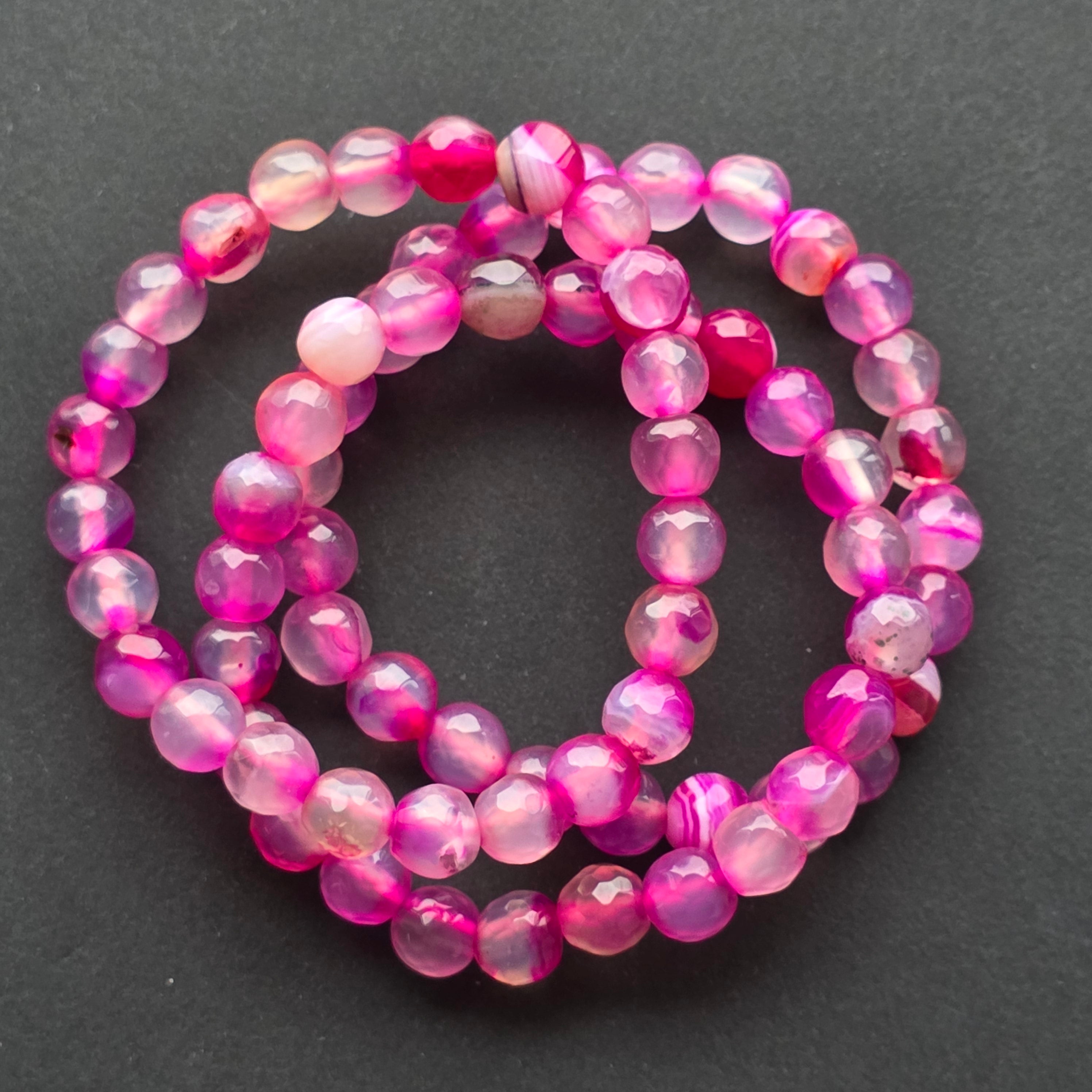 O brățară ca o mică poveste luminoasă, creată special pentru încheieturile delicate ale copiilor. Agatul roz, fațetat în sclipiri mici și vesele, captează lumina asemenea cristalelor ascunse într-o cutie de comori, răspândind culoare, bucurie și energie caldă.