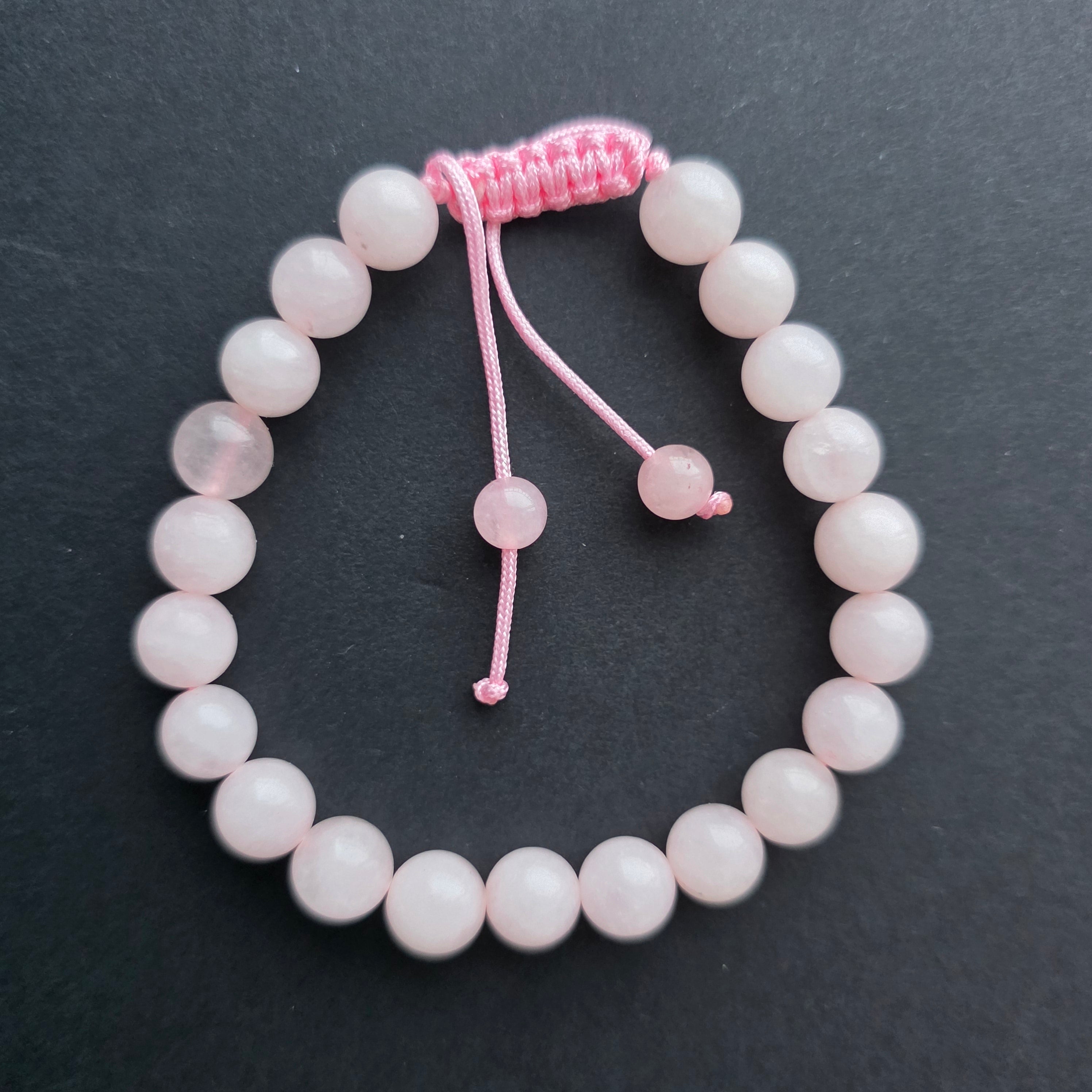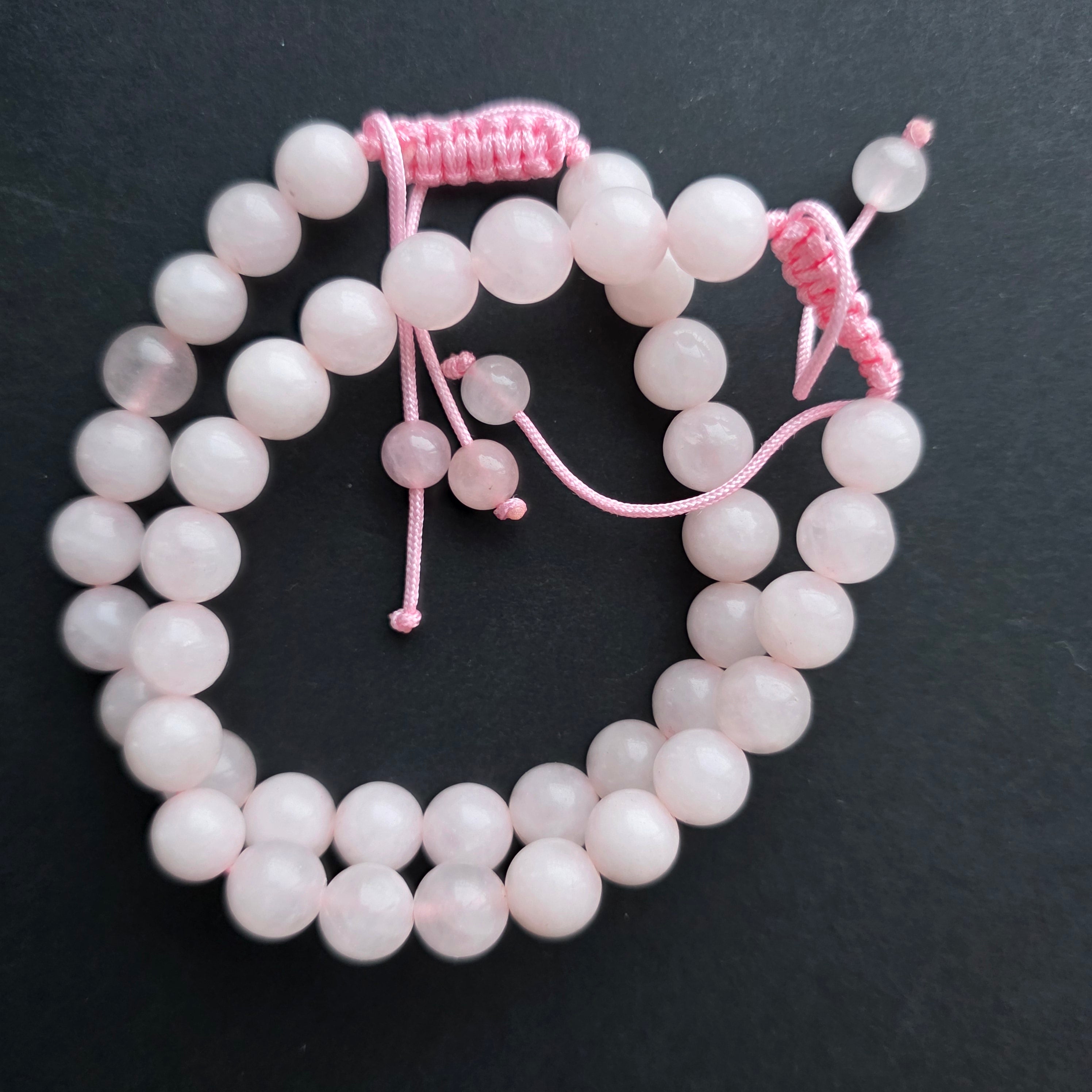 Descriere - Bratara cuart roz 8-9 mm snur reglabil