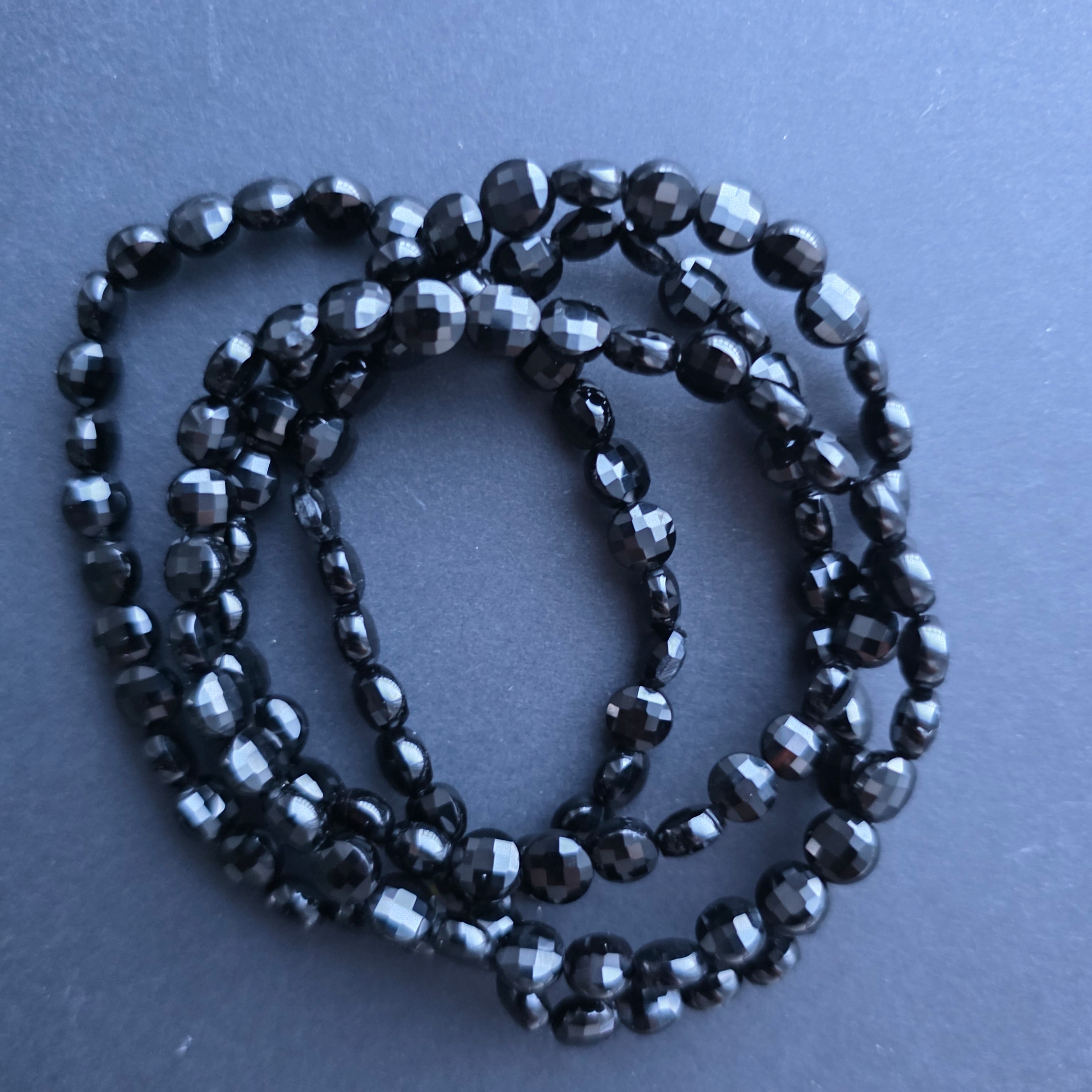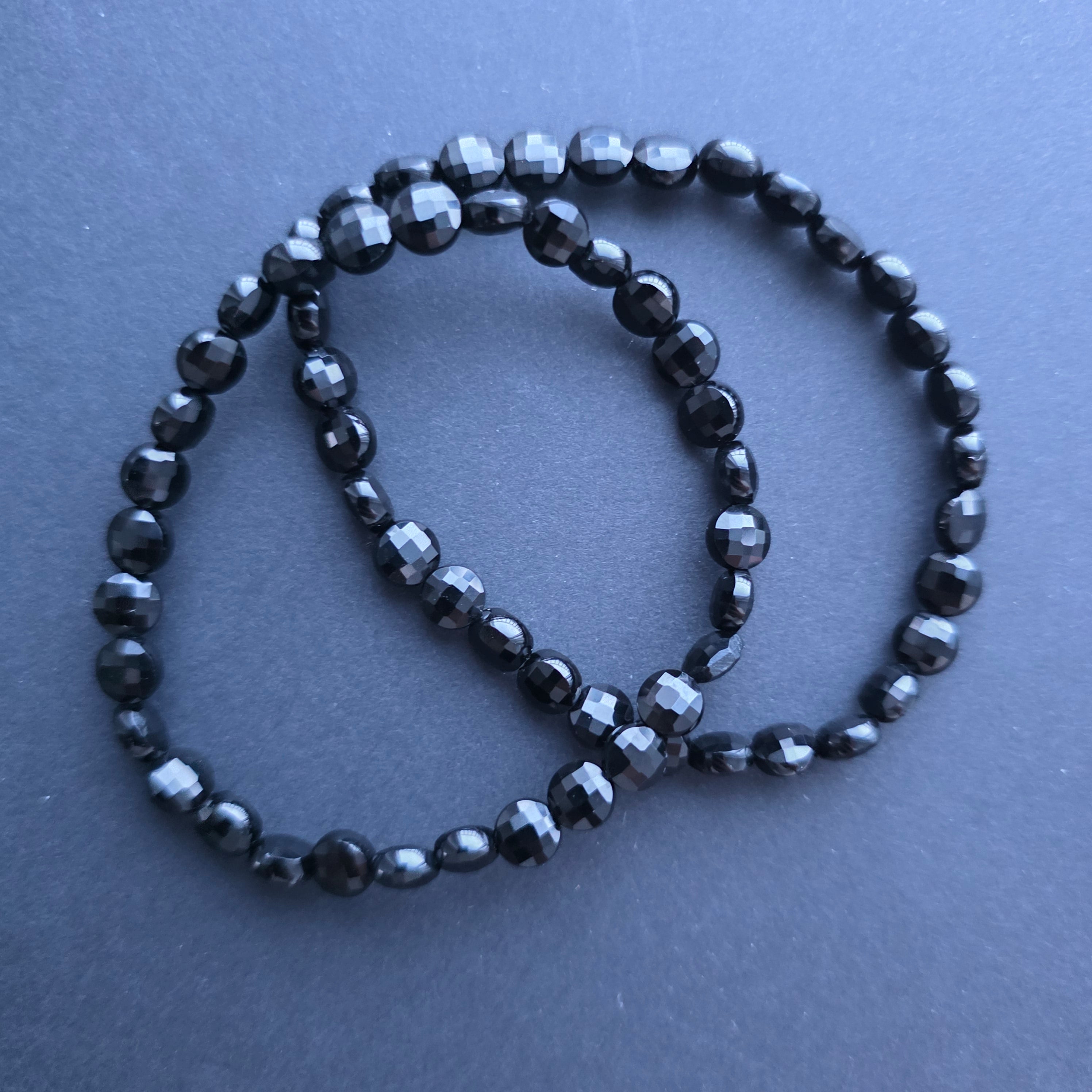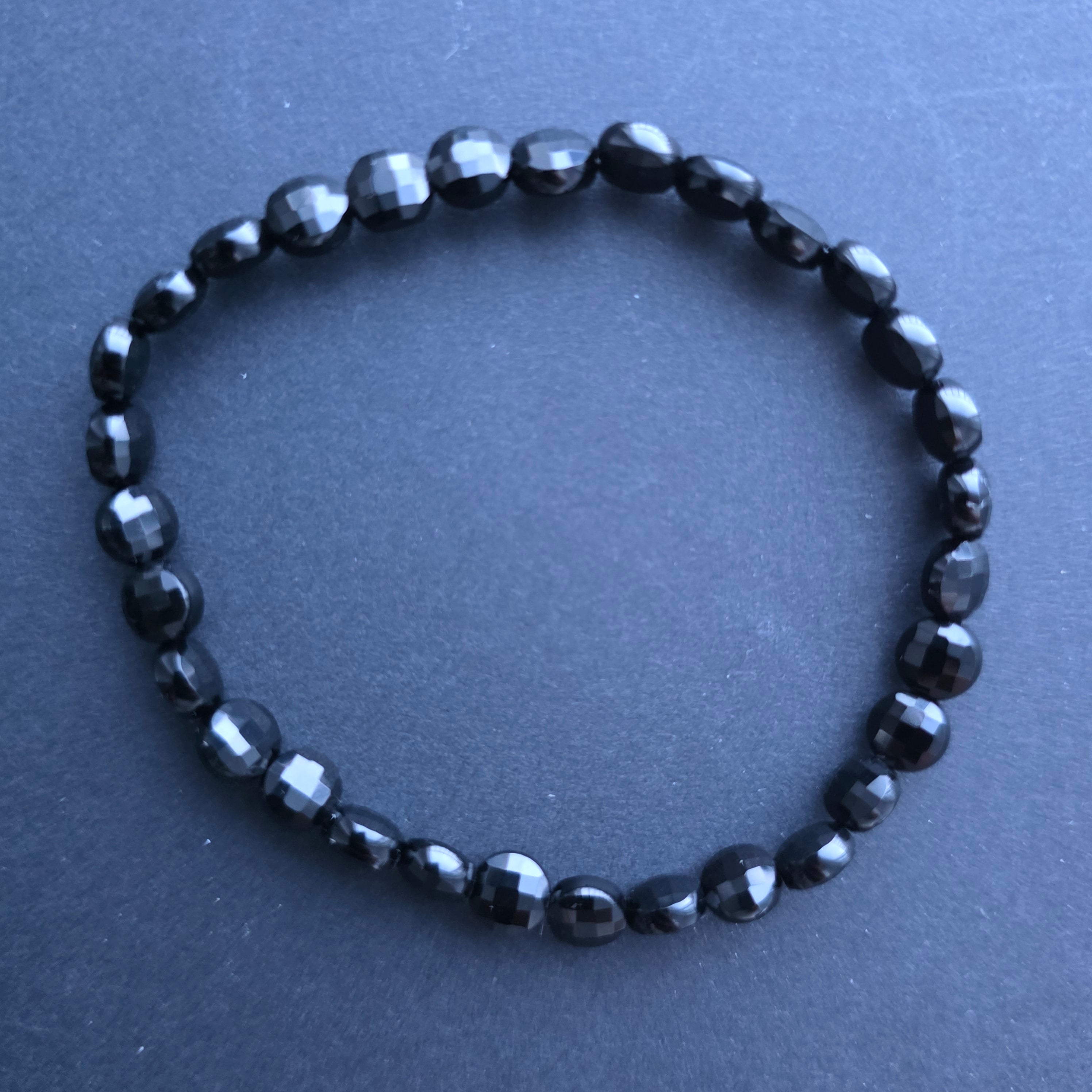 Descriere - Bratara discuri fatetate onix negru 6x4 mm