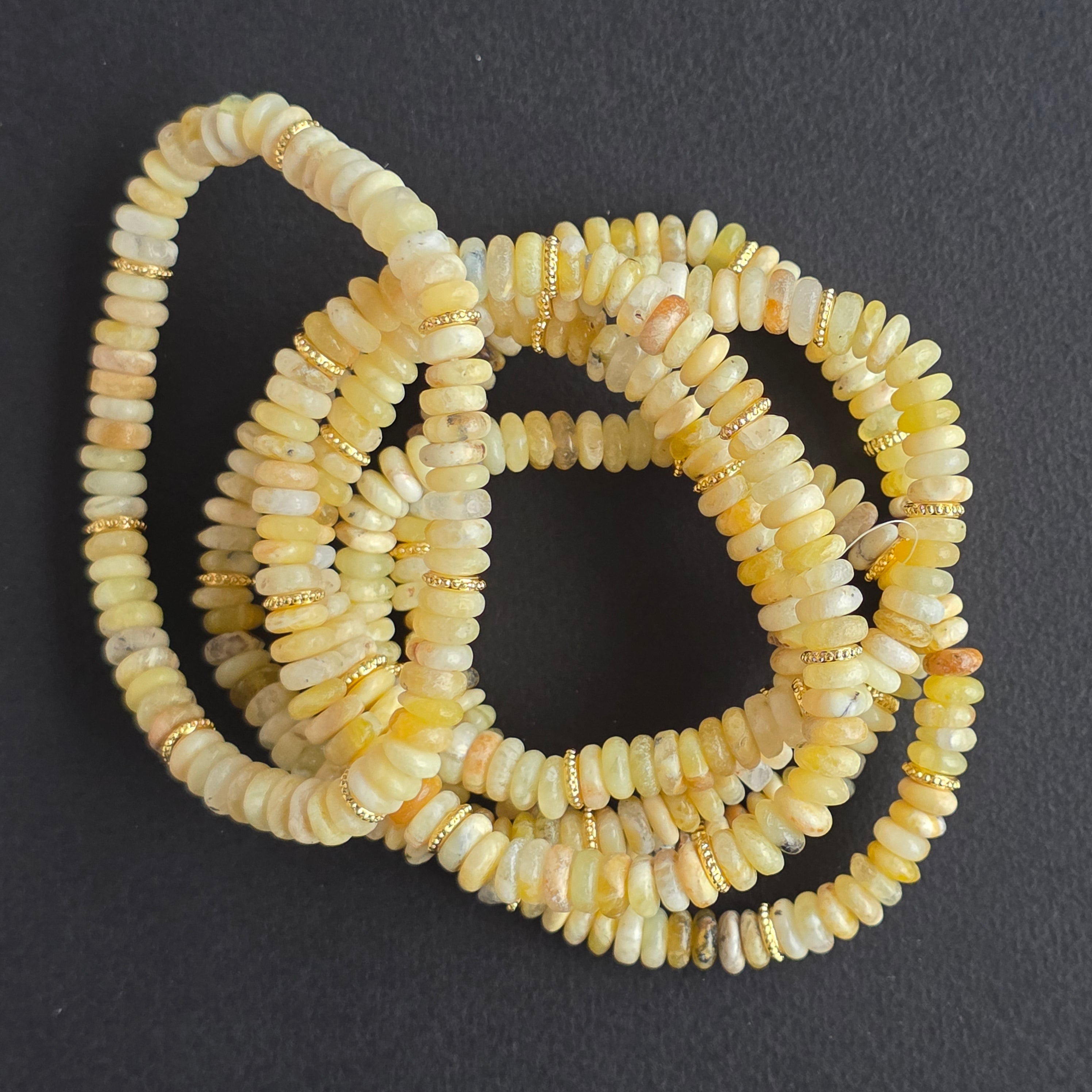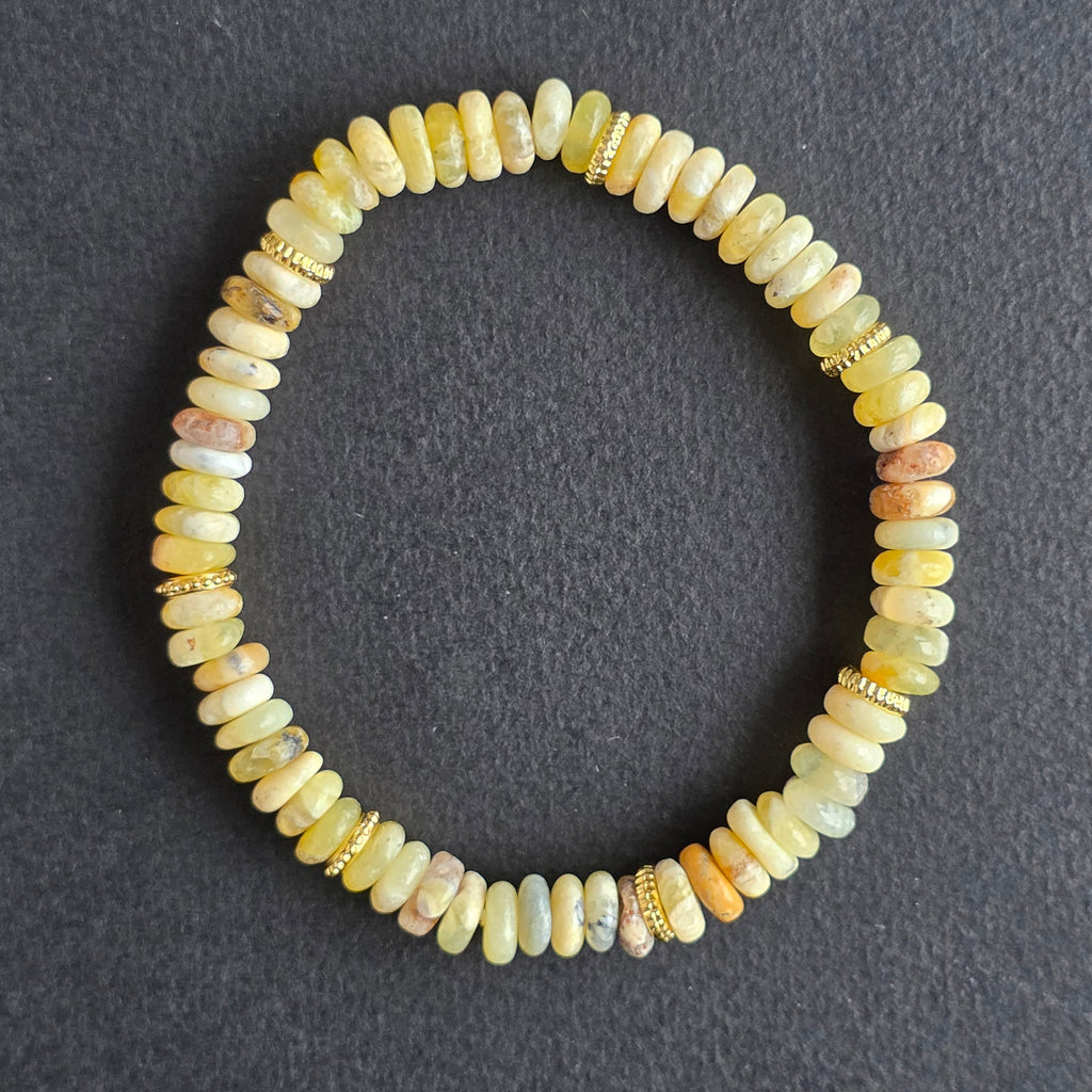 Descriere - Bratara discuri opal galben si insertii aurii – 6x2 mm