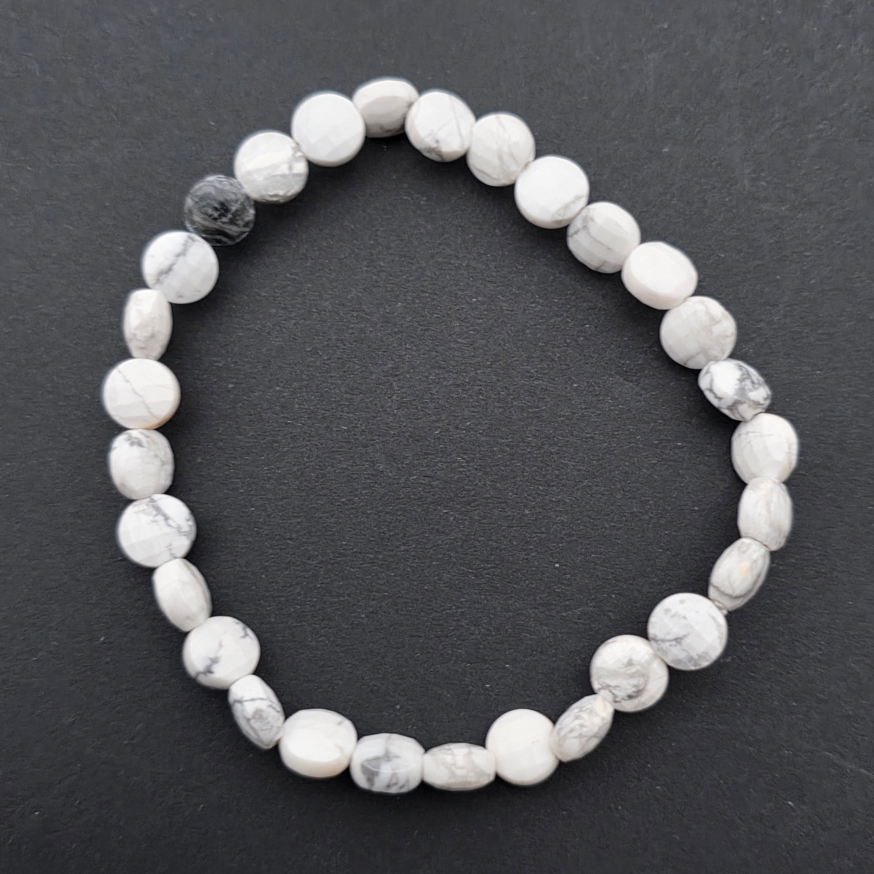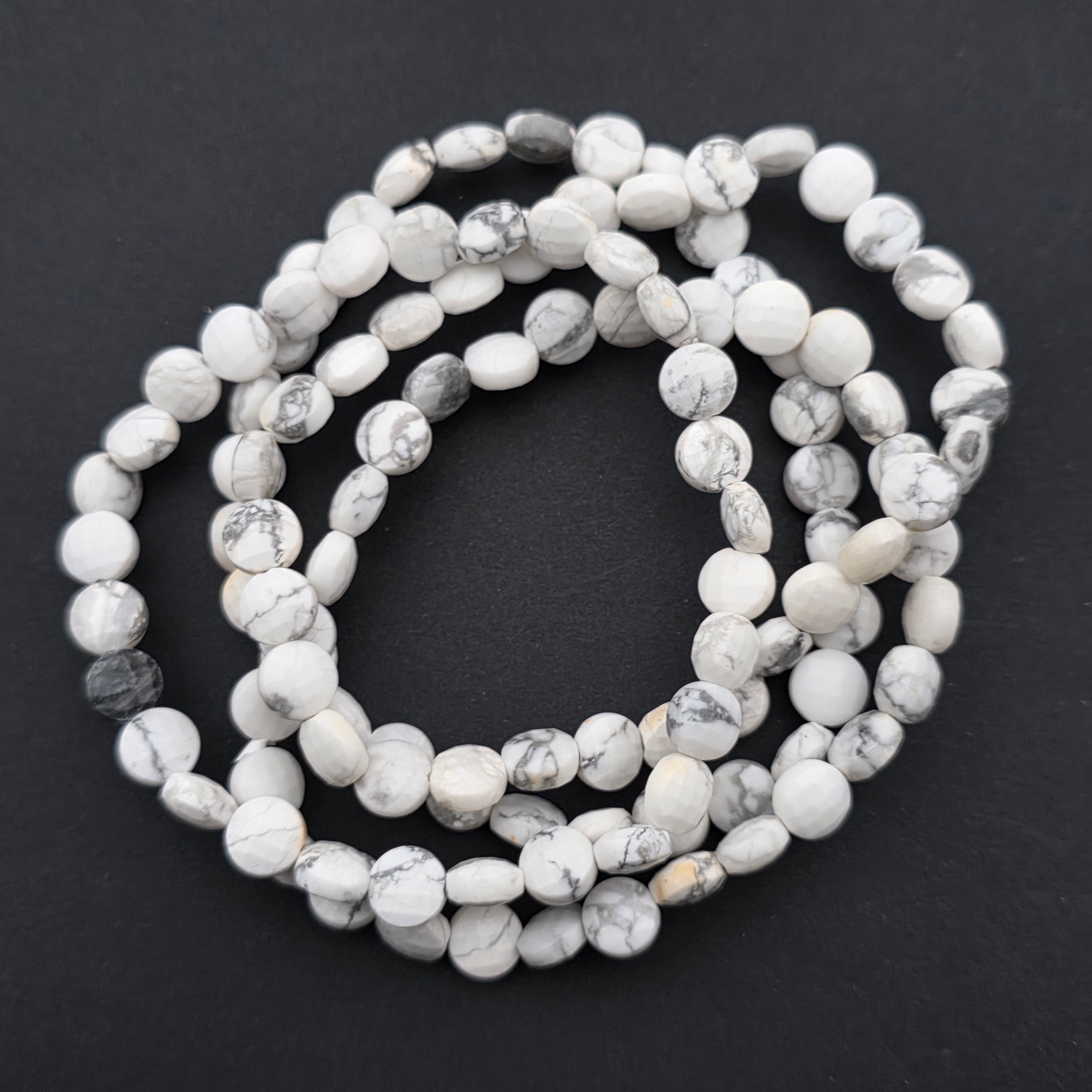 Descriere - Bratara discuri ovale fatetate howlit alb 6x4 mm