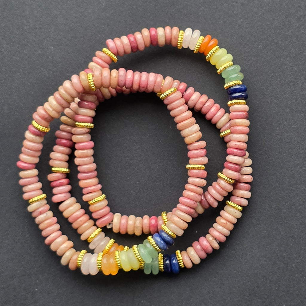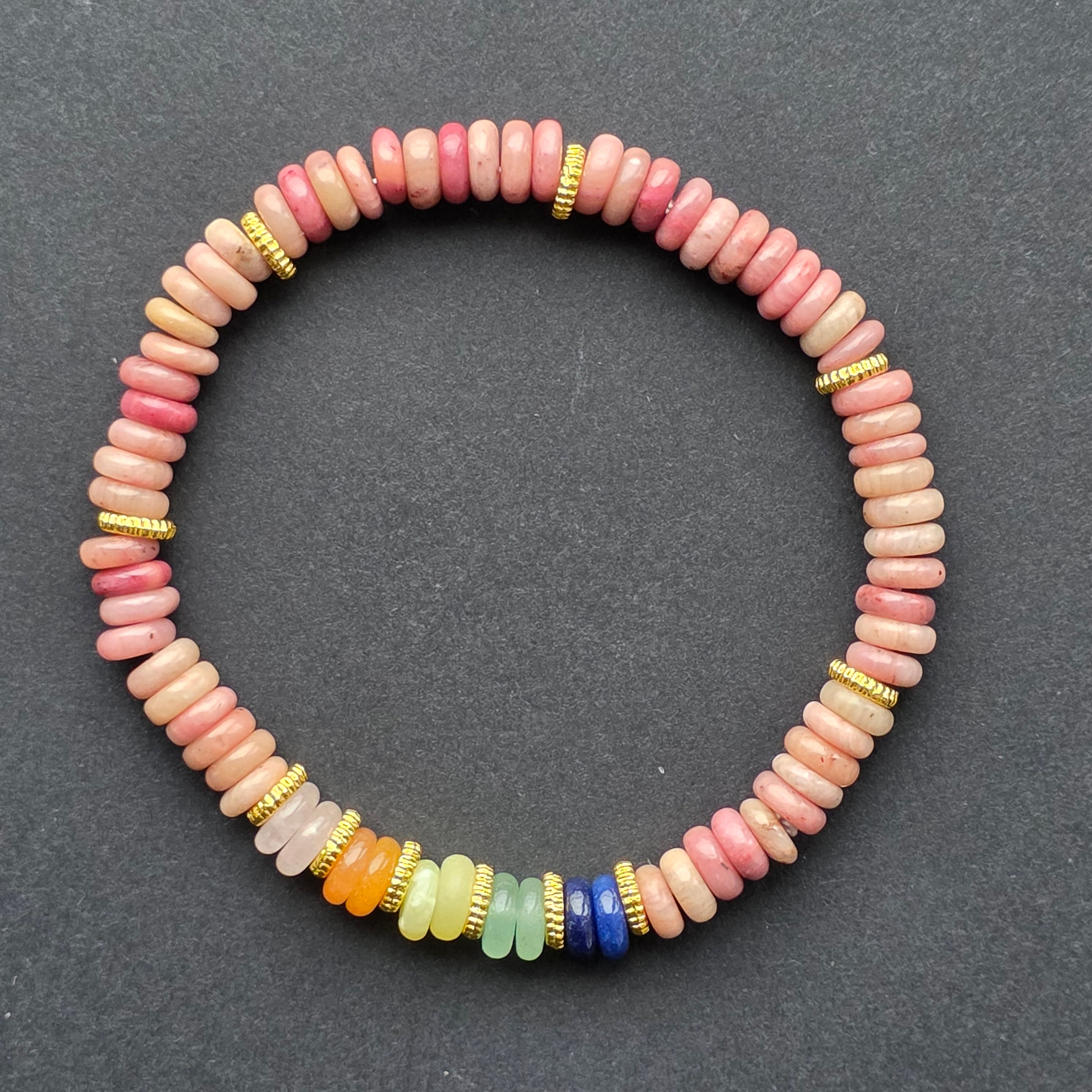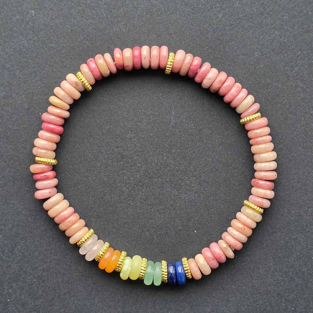 Culorile inspirate din energia chakrelor aduc o notă de echilibru și lumină, fără a domina vizual frumusețea naturală a pietrei principale. Brățara este ușoară, comodă și perfectă pentru a fi purtată în fiecare zi, fie individual, fie în combinații cu alte accesorii din minerale naturale.