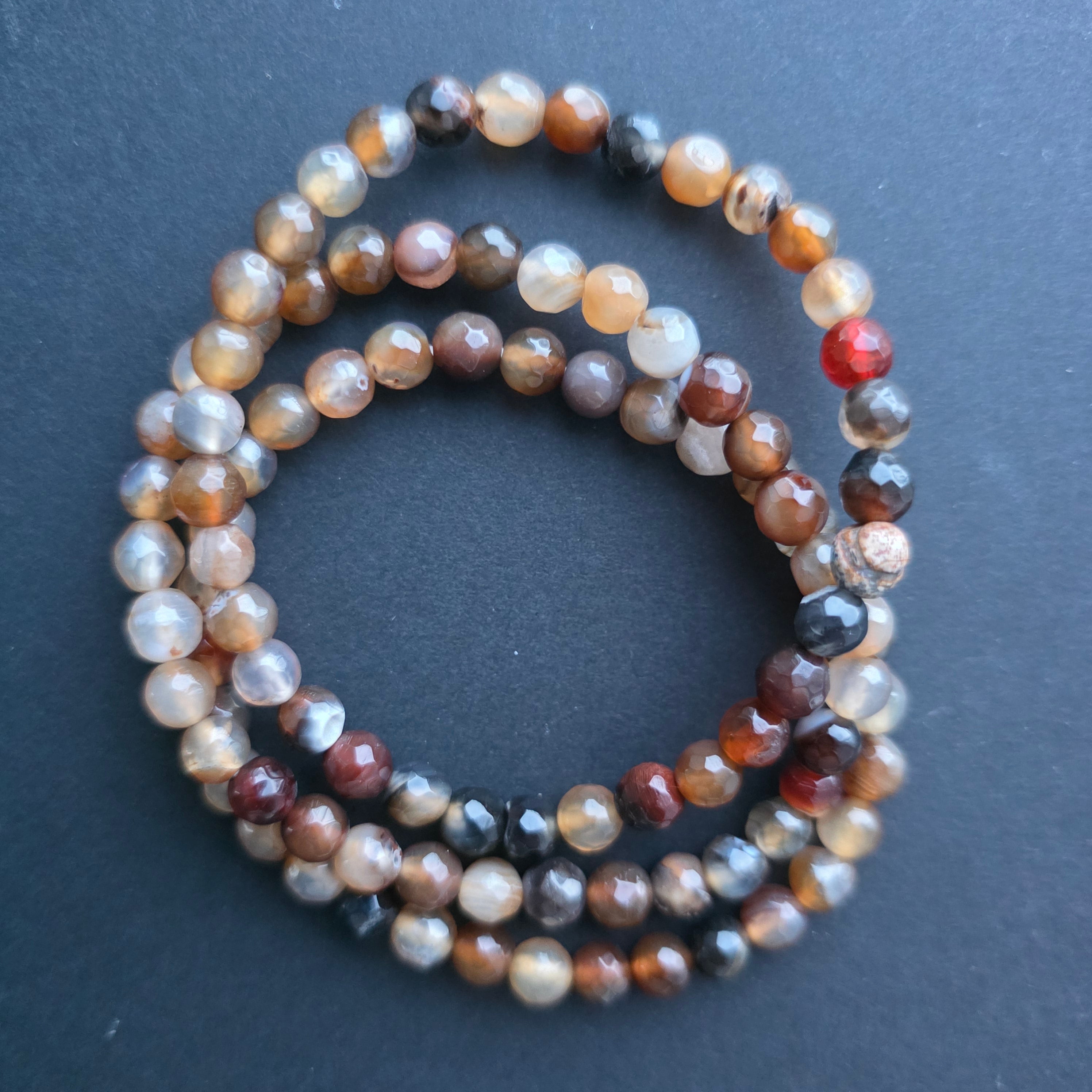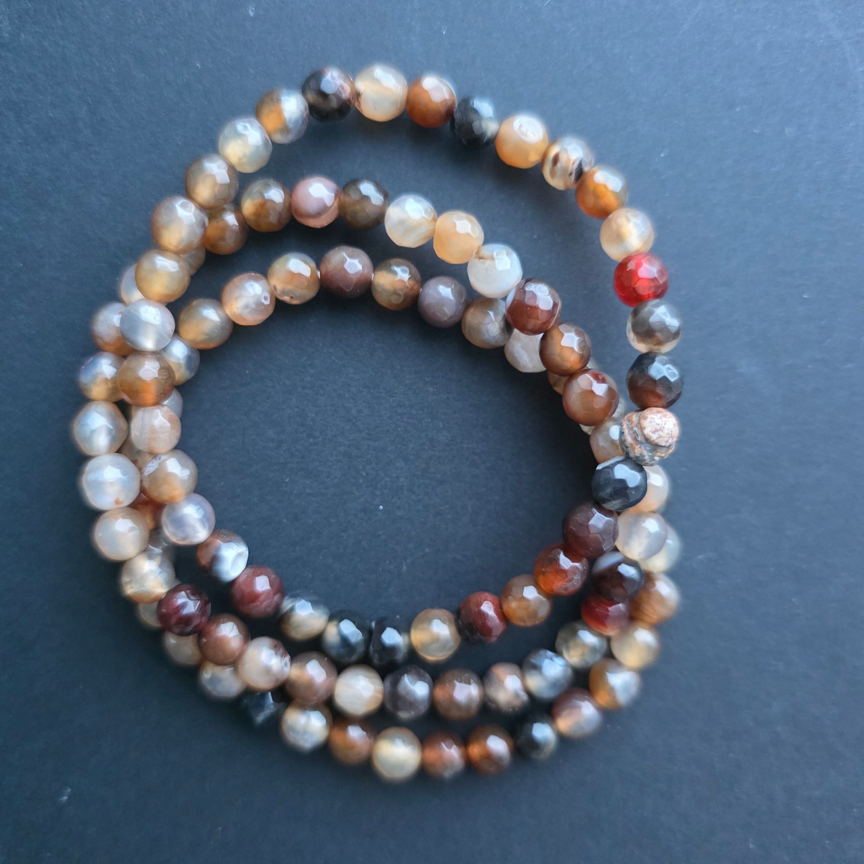 • Piatra: agat maro (brown agate)– mărgele sferice 6 mm