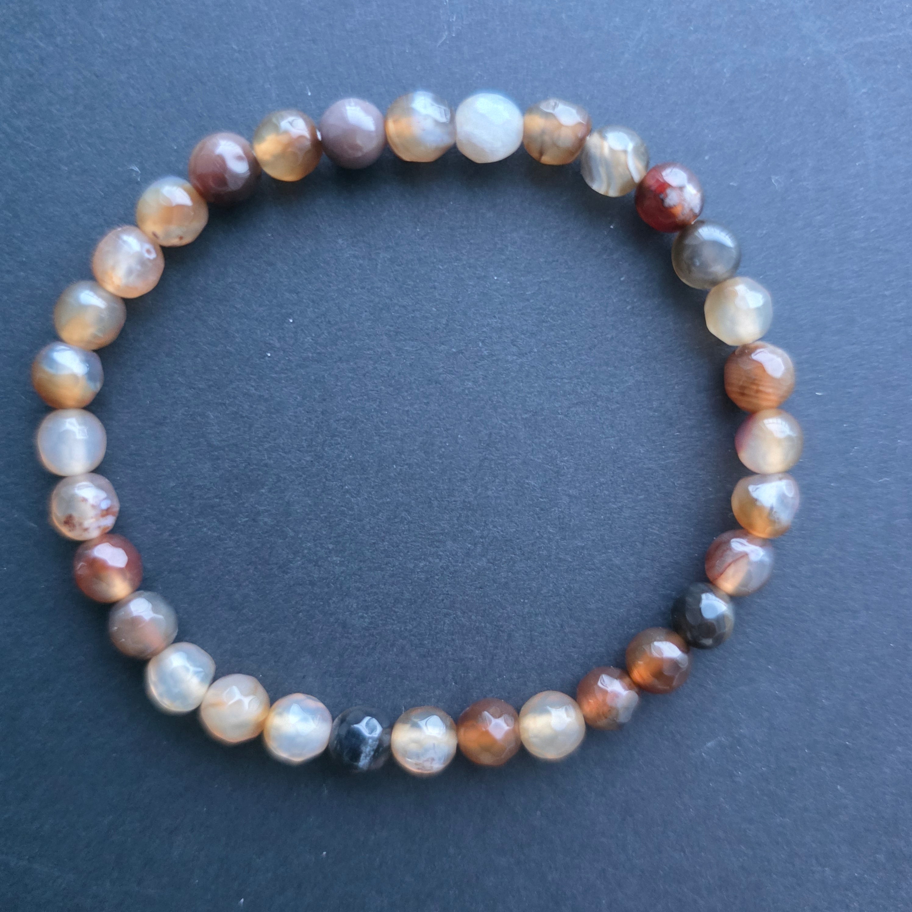 • Textură: suprafață lucioasă, mărgele masive, cu desene și benzi naturale specifice agatului