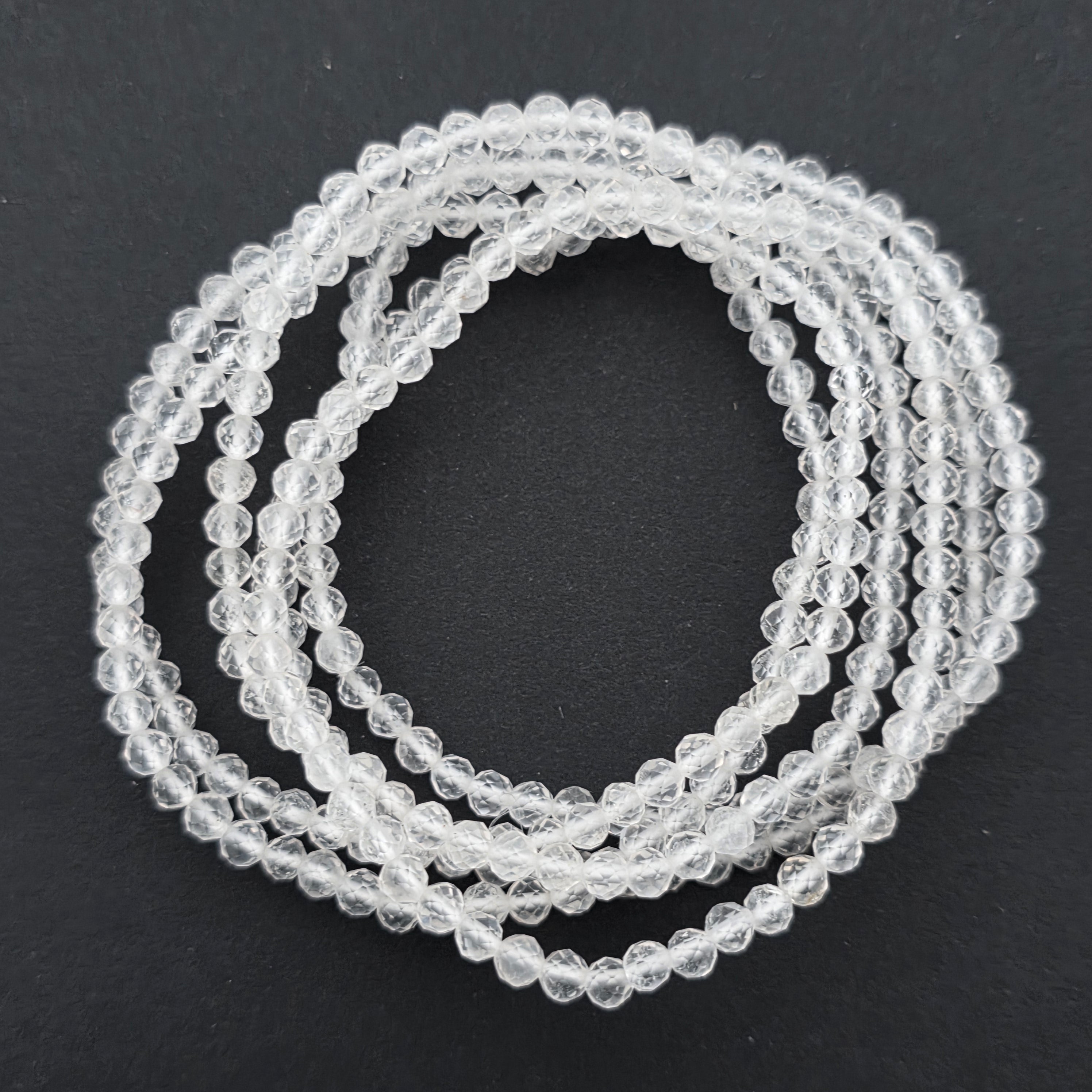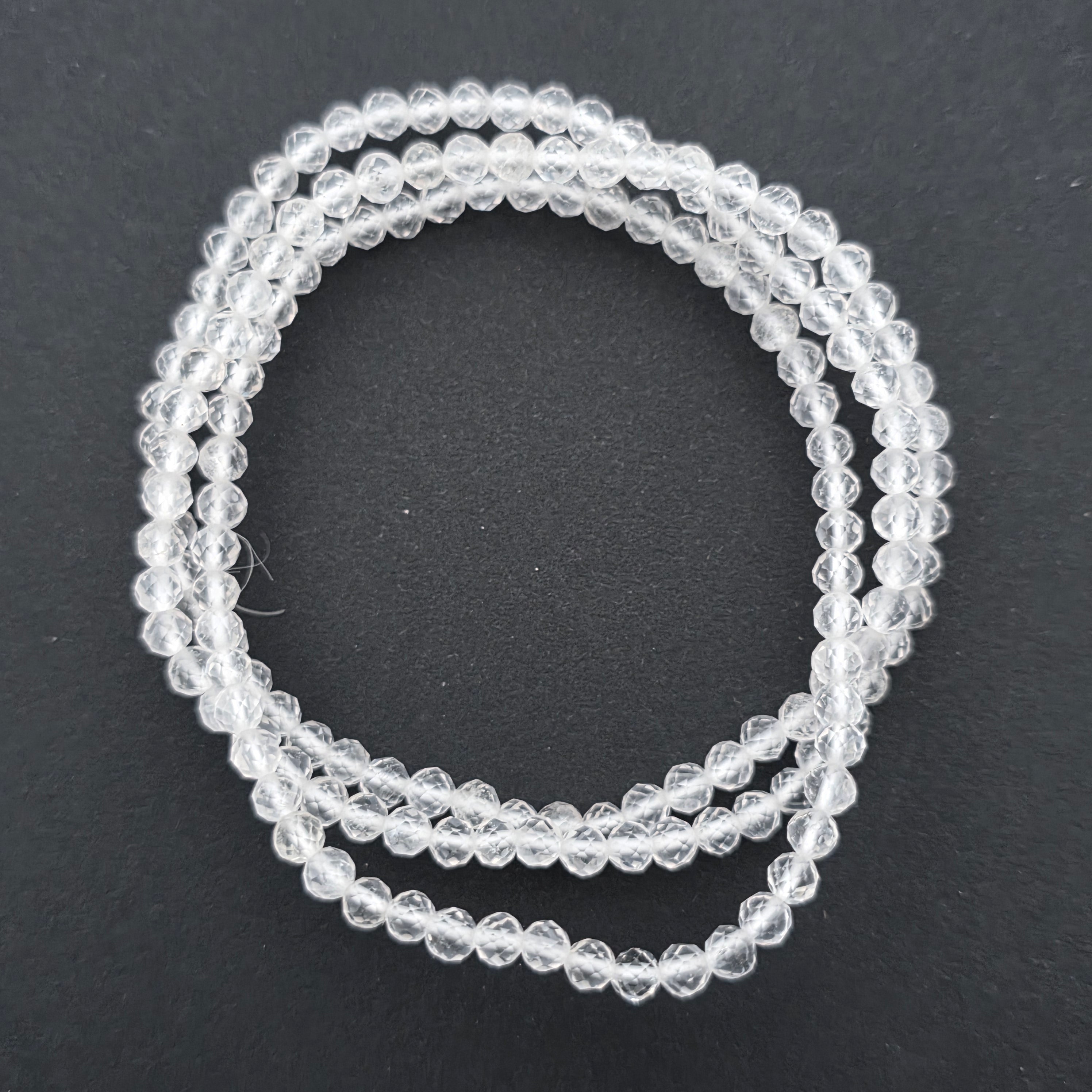 Descriere - Bratara fatetata cuart de stanca/cristal incolor 3-4 mm