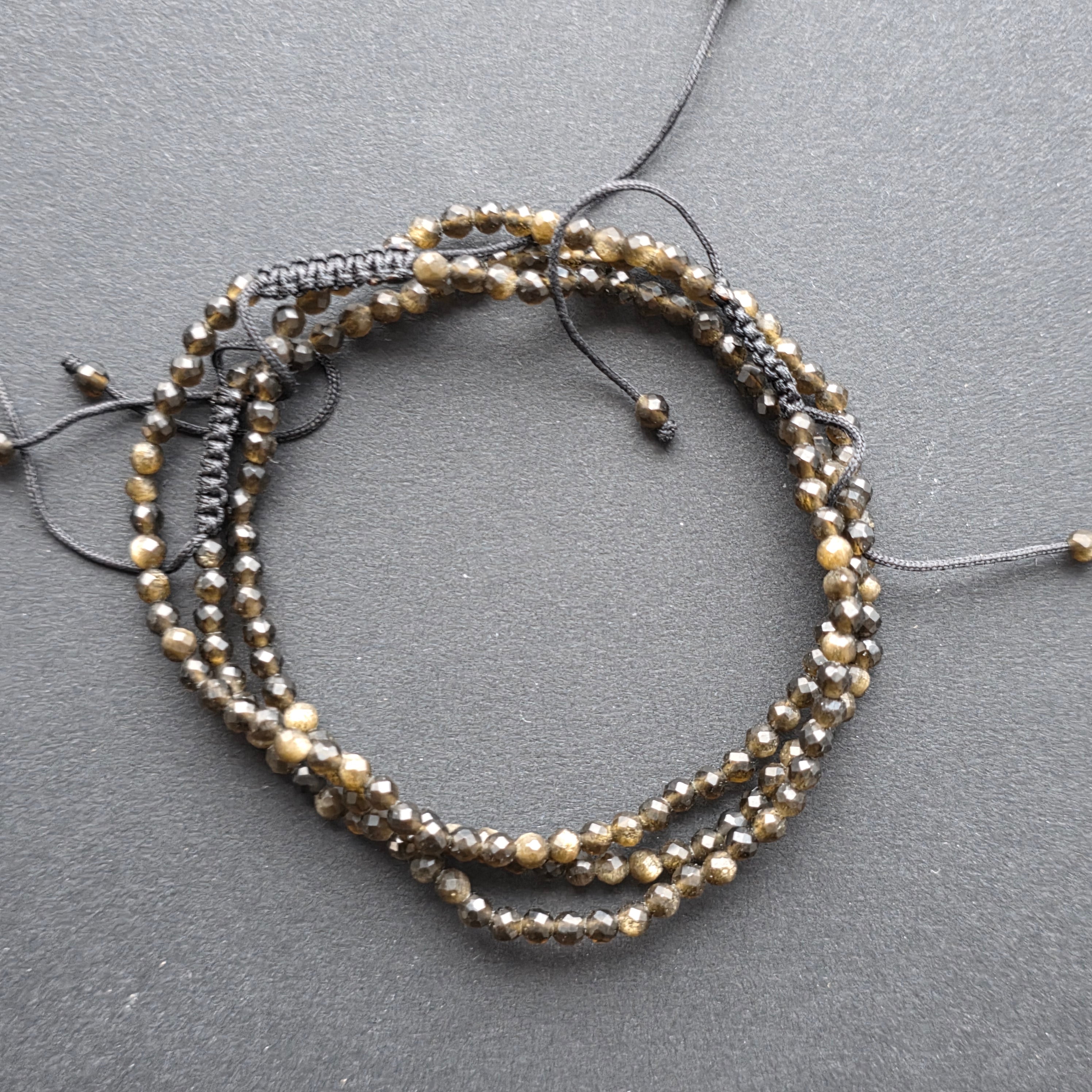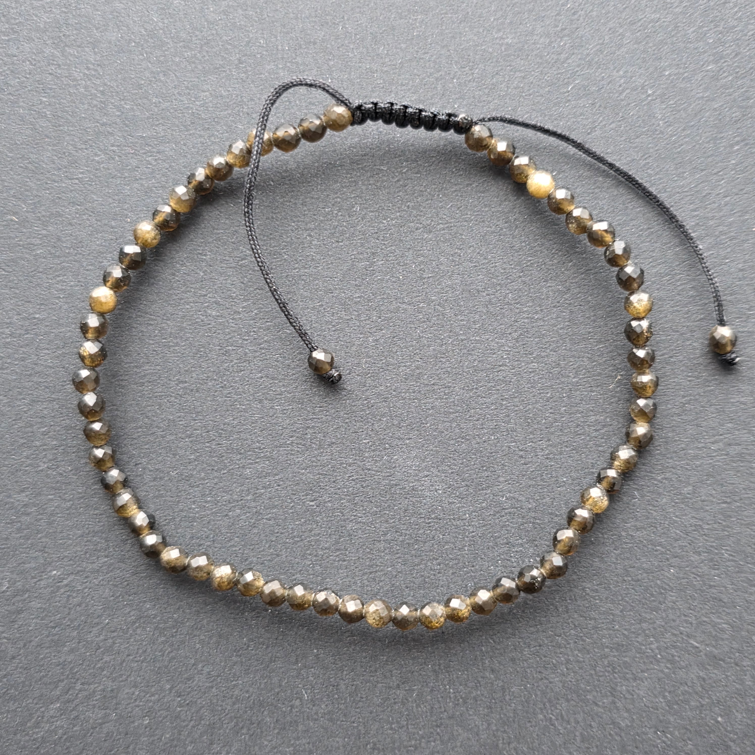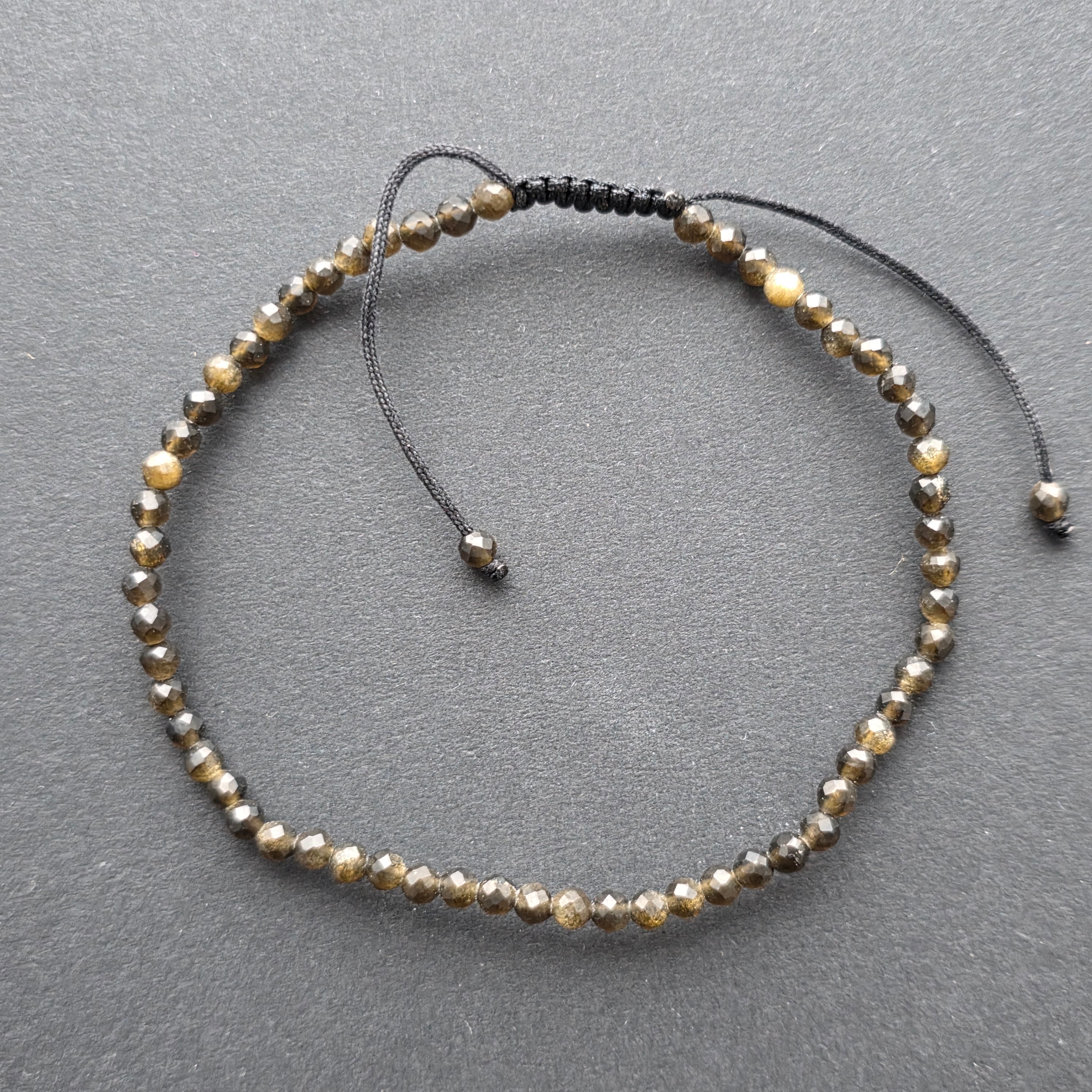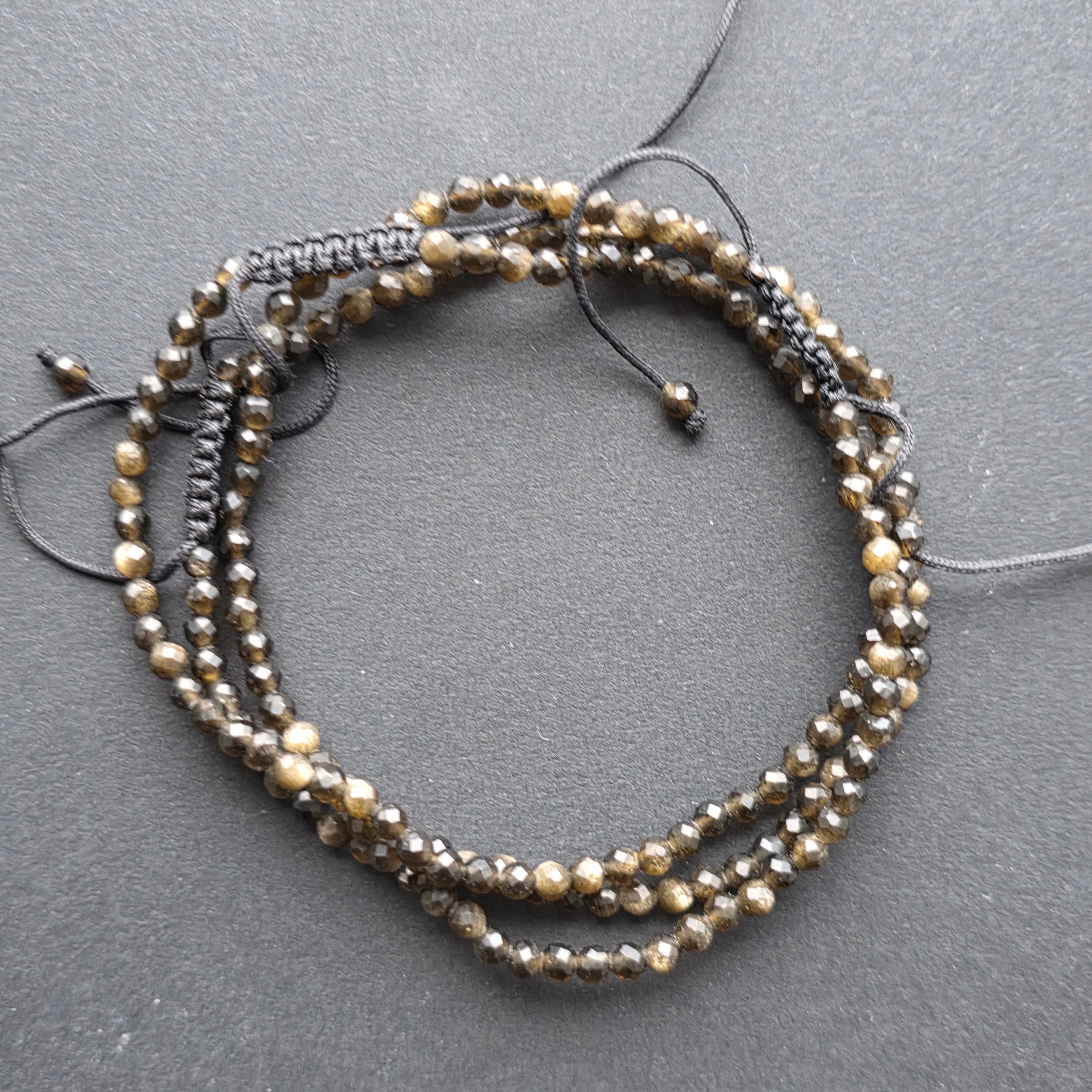 Descriere - Bratara fatetata obsidian auriu 3 mm snur reglabil