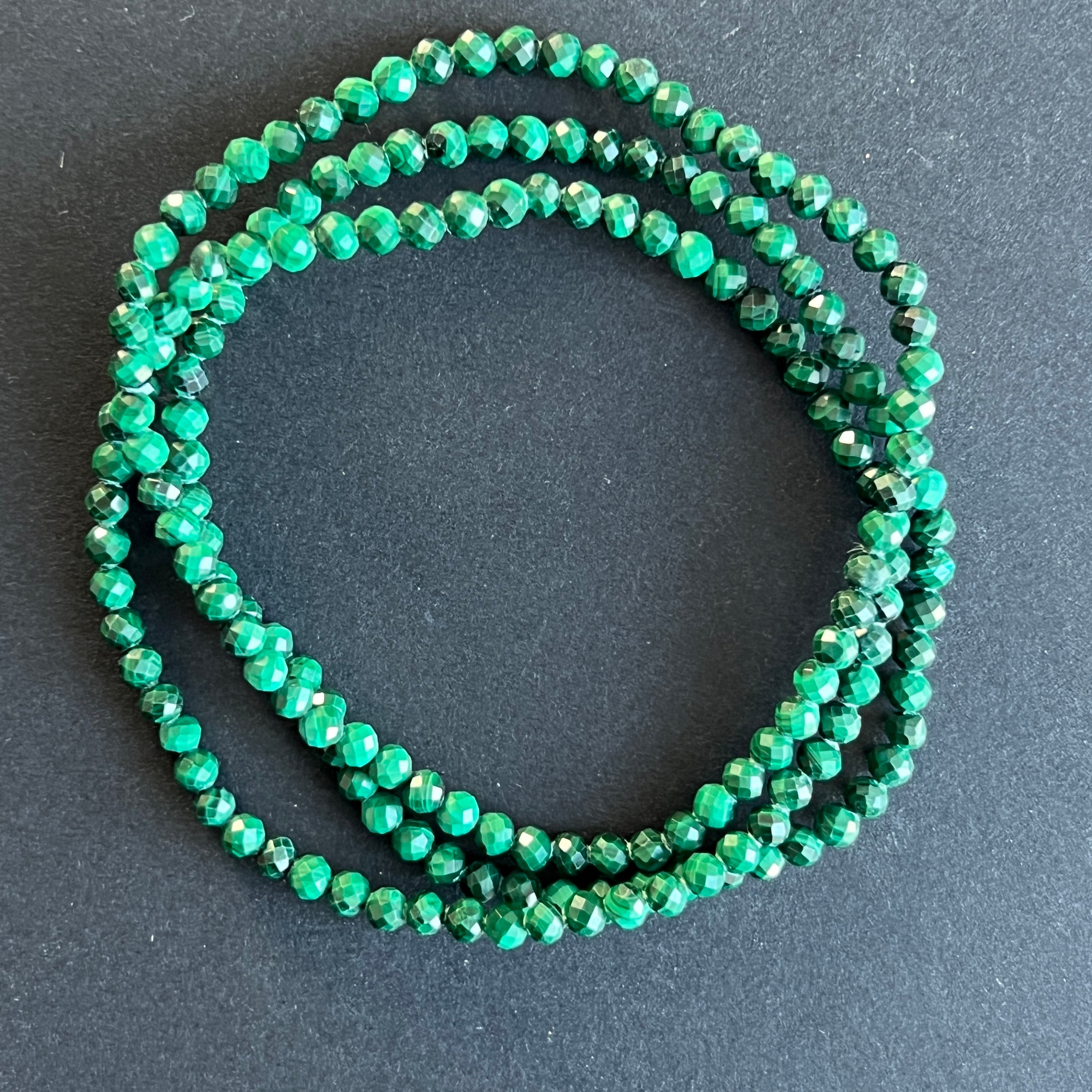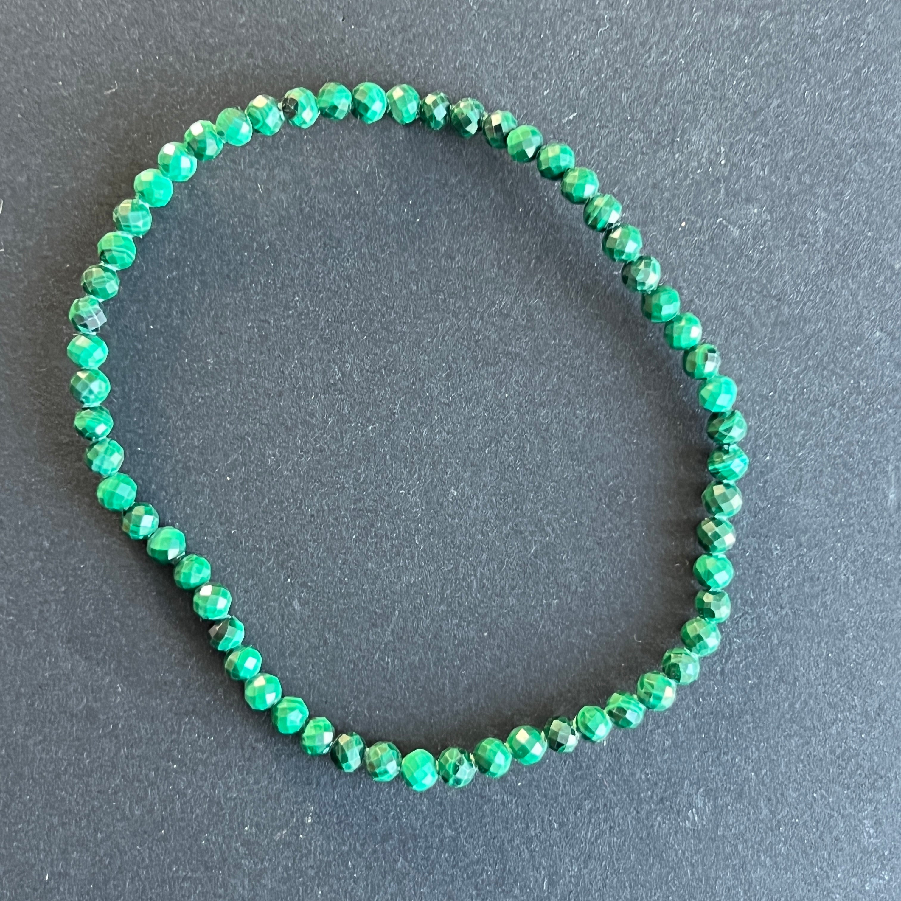 • Piatra: malachit natural calitate AAA – mărgele fațetate 3 mm, finisaj intens lucios