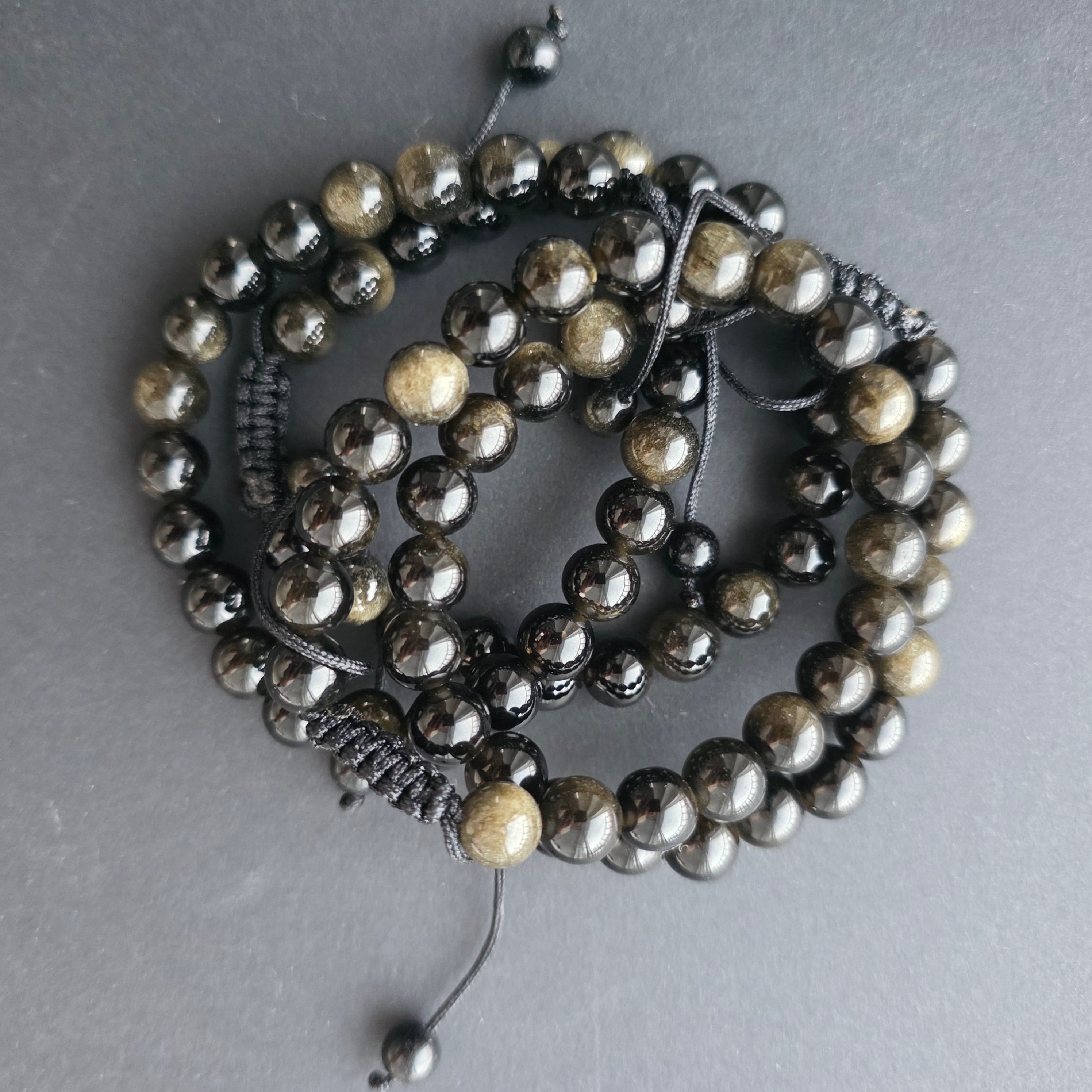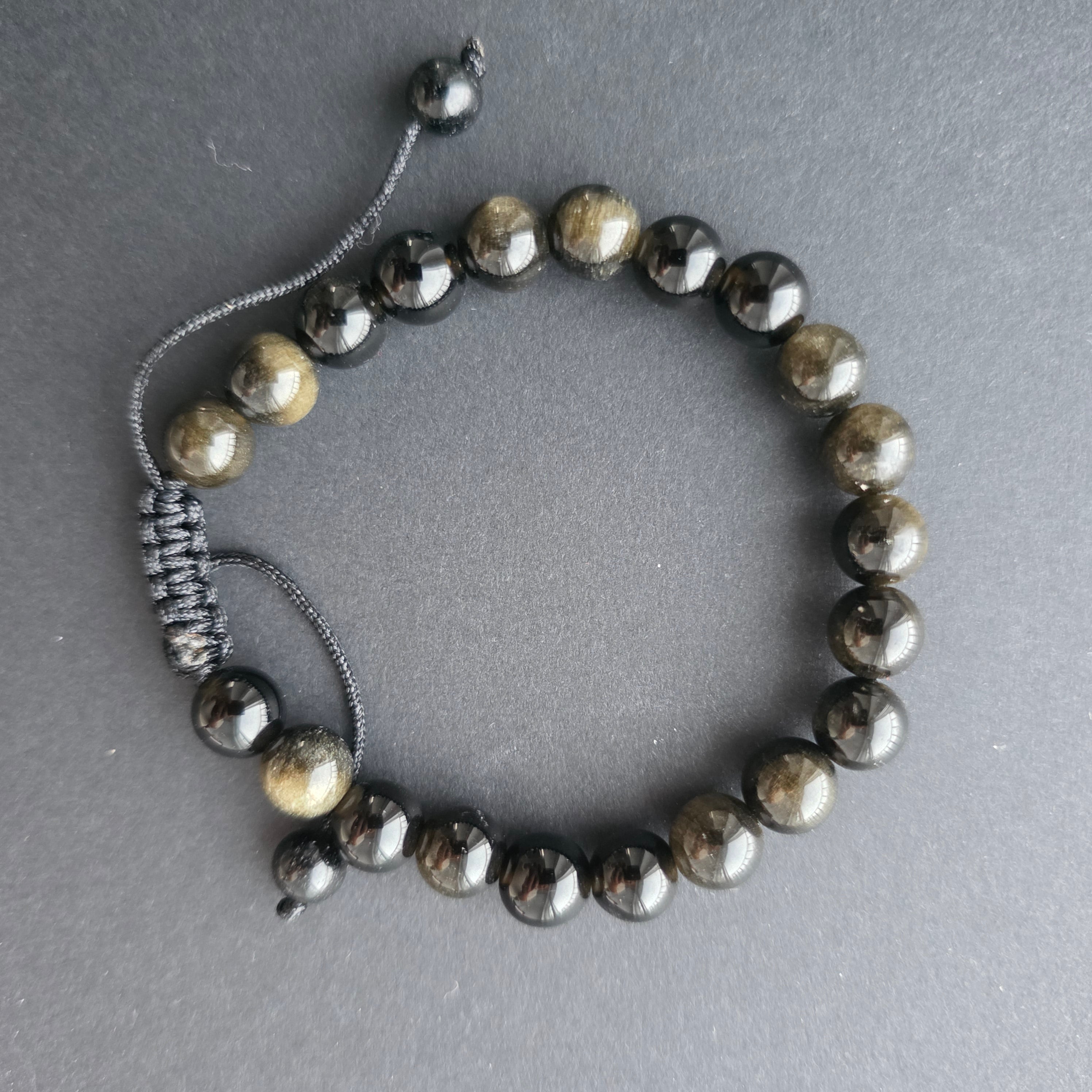 • Piatra: obsidian auriu natural – mărgele sferice 8 mm