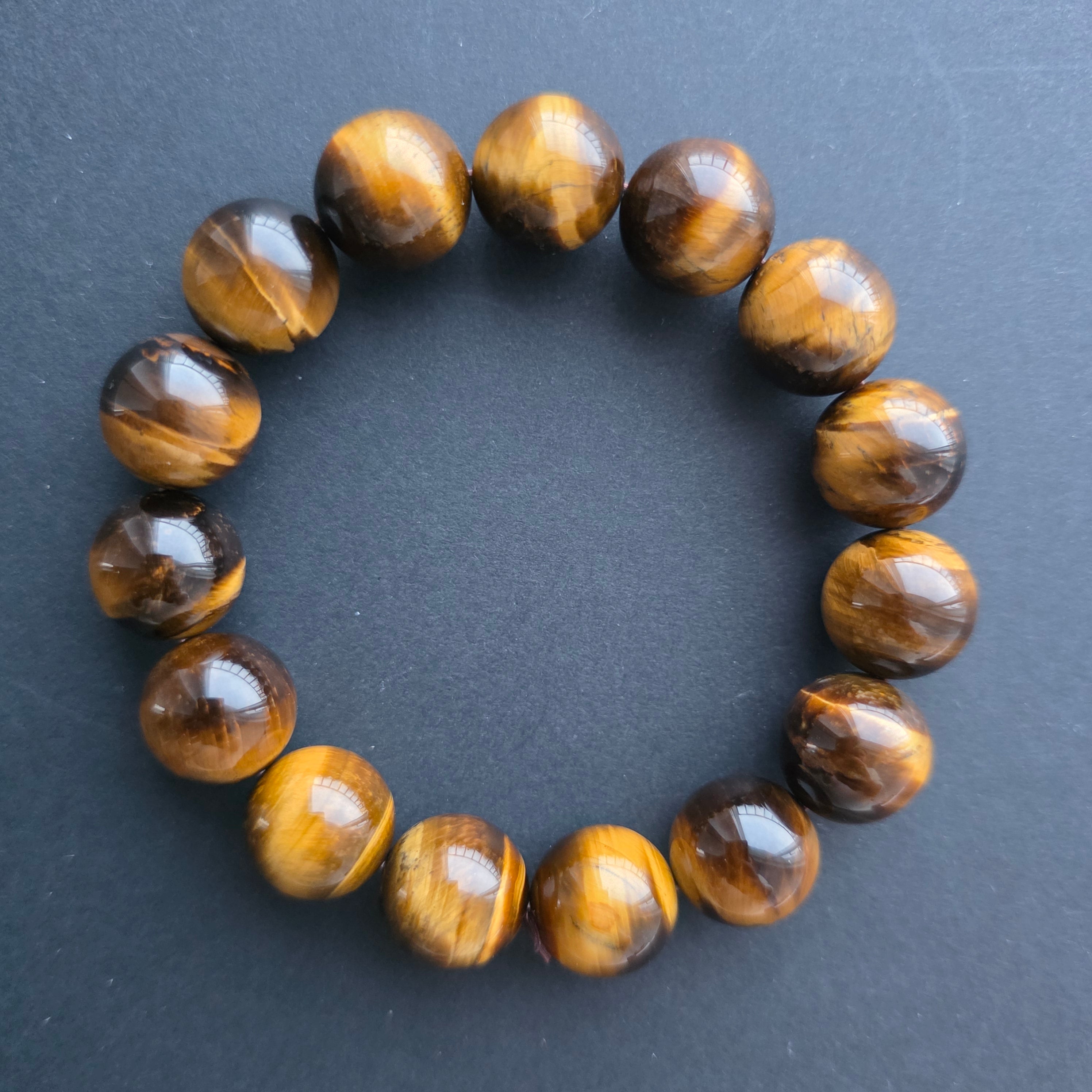 • Piatra: ochi de tigru galben natural – mărgele sferice 14 mm