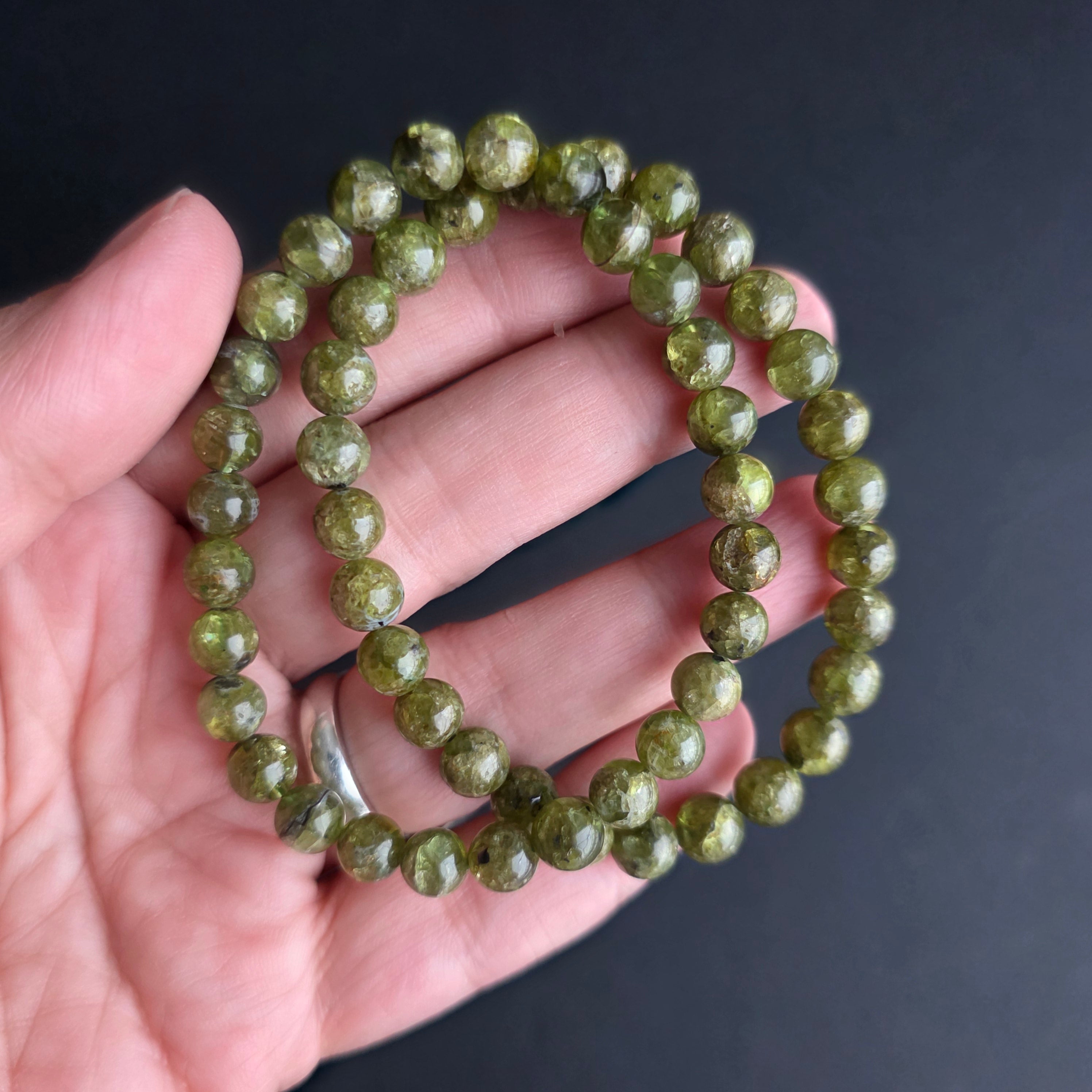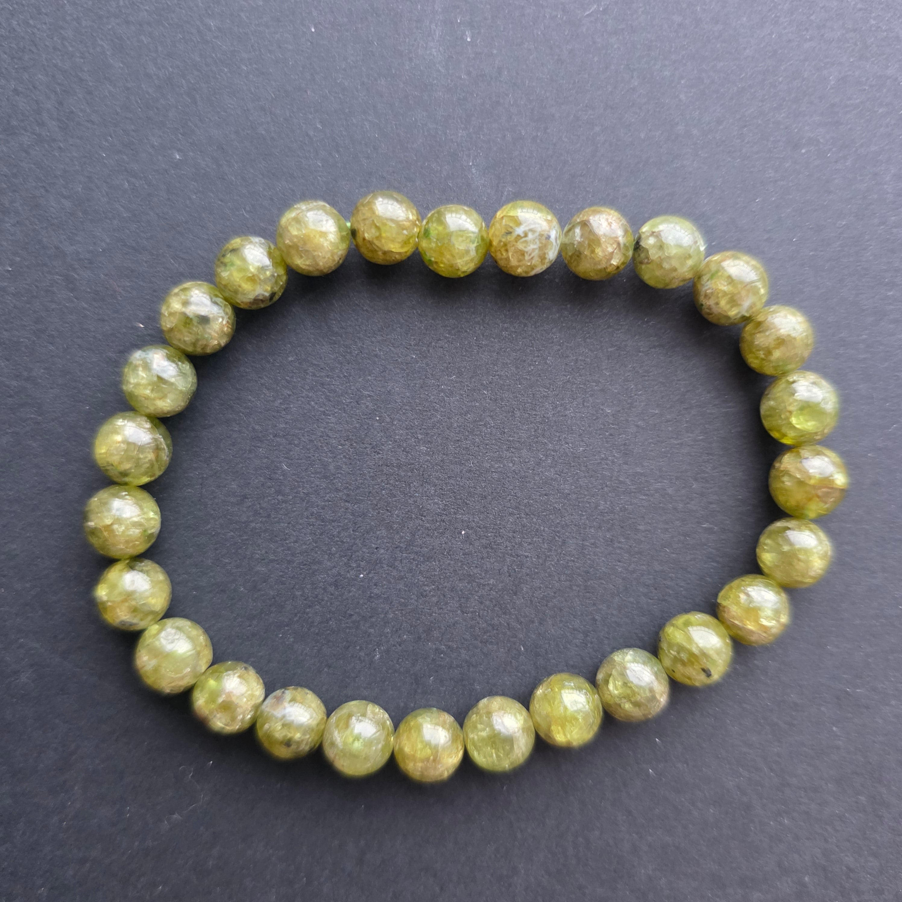 • Piatra: peridot natural – mărgele sferice 7–8 mm, calitate A