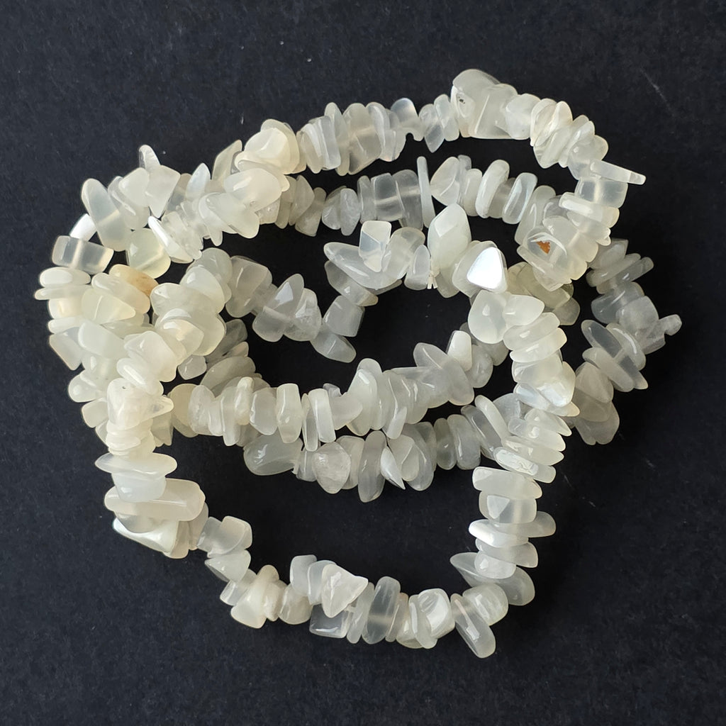 • Piatra: piatra lunii naturală (chipsuri neregulate, șlefuite manual) – asociată cu intuiția, armonia emoțională și feminitatea liniștită