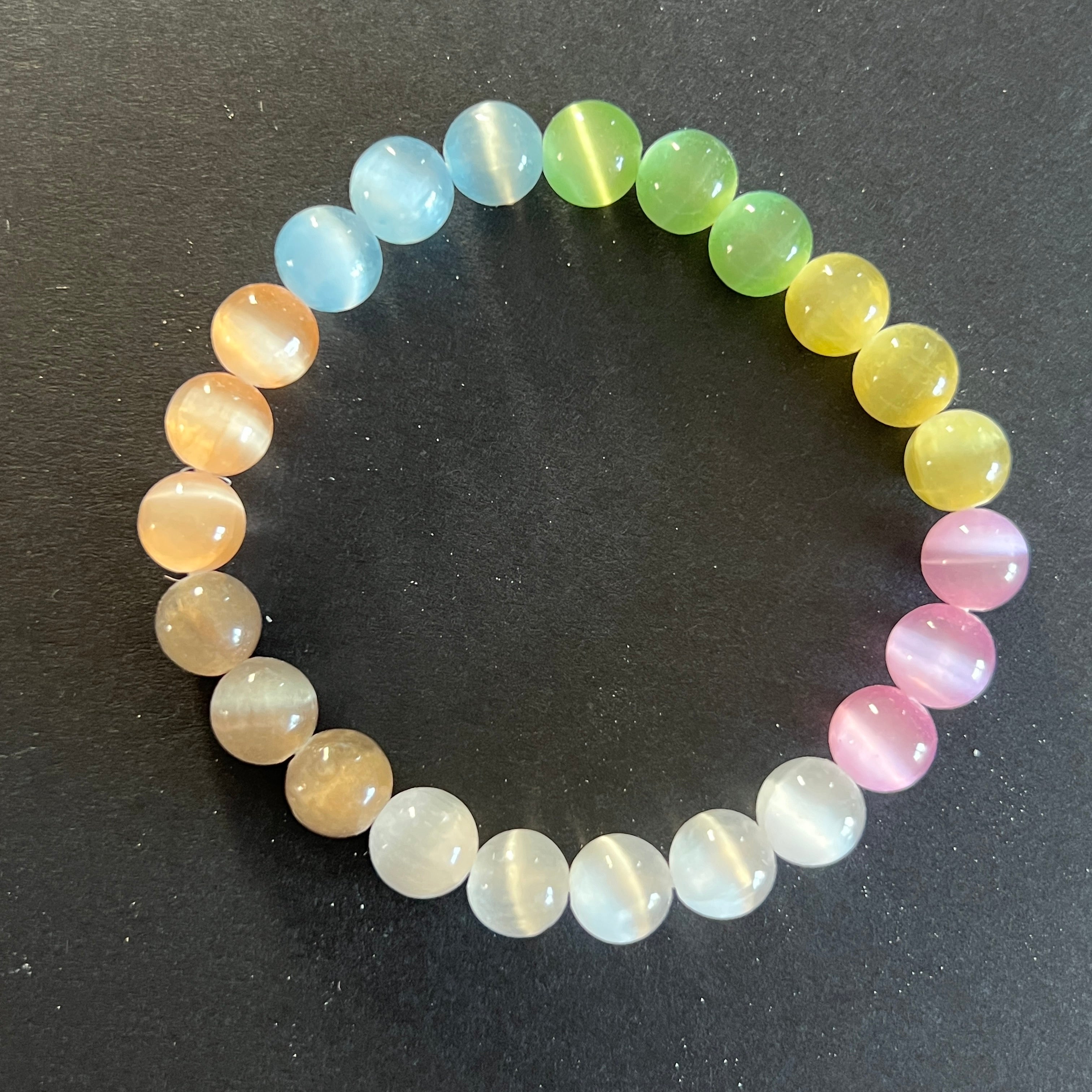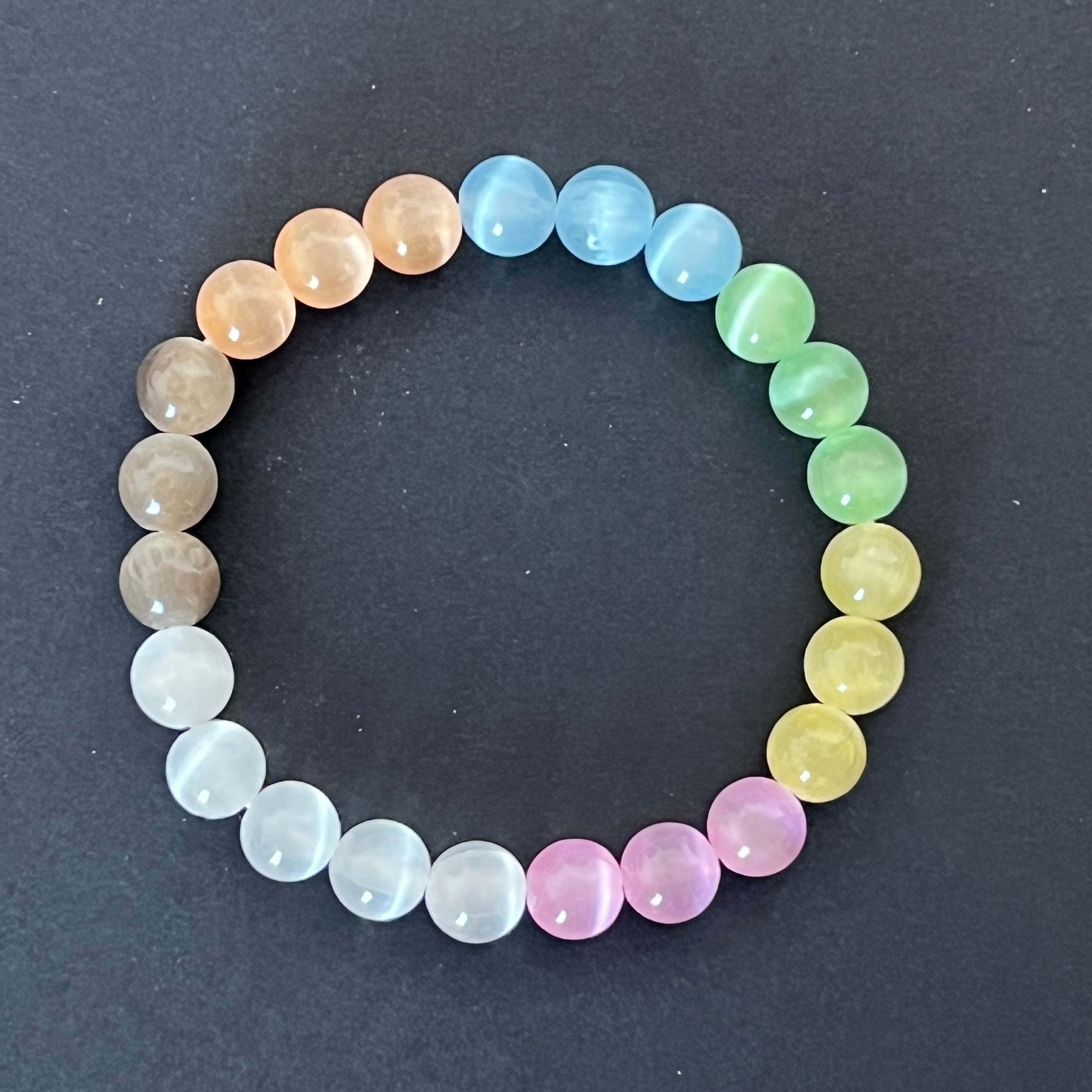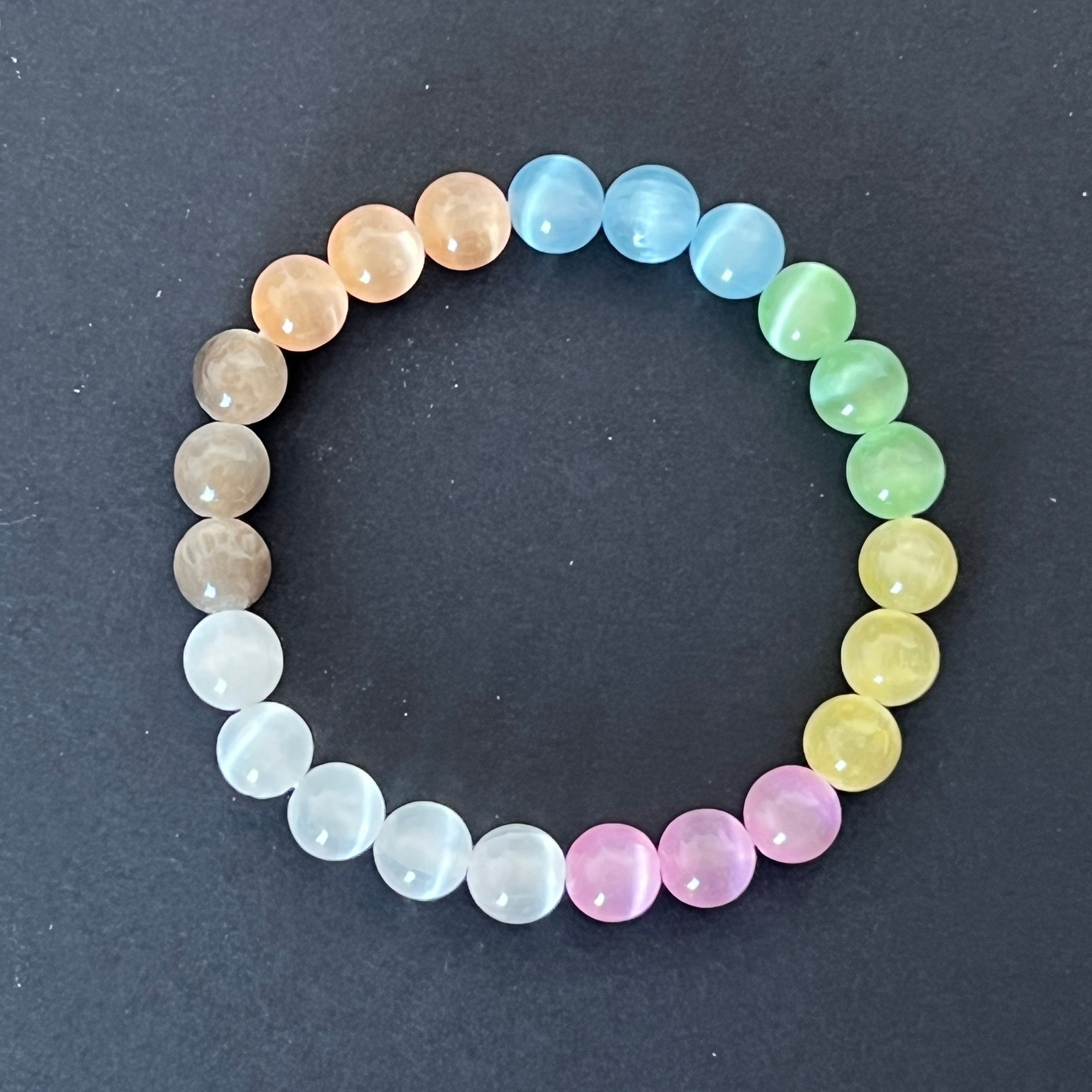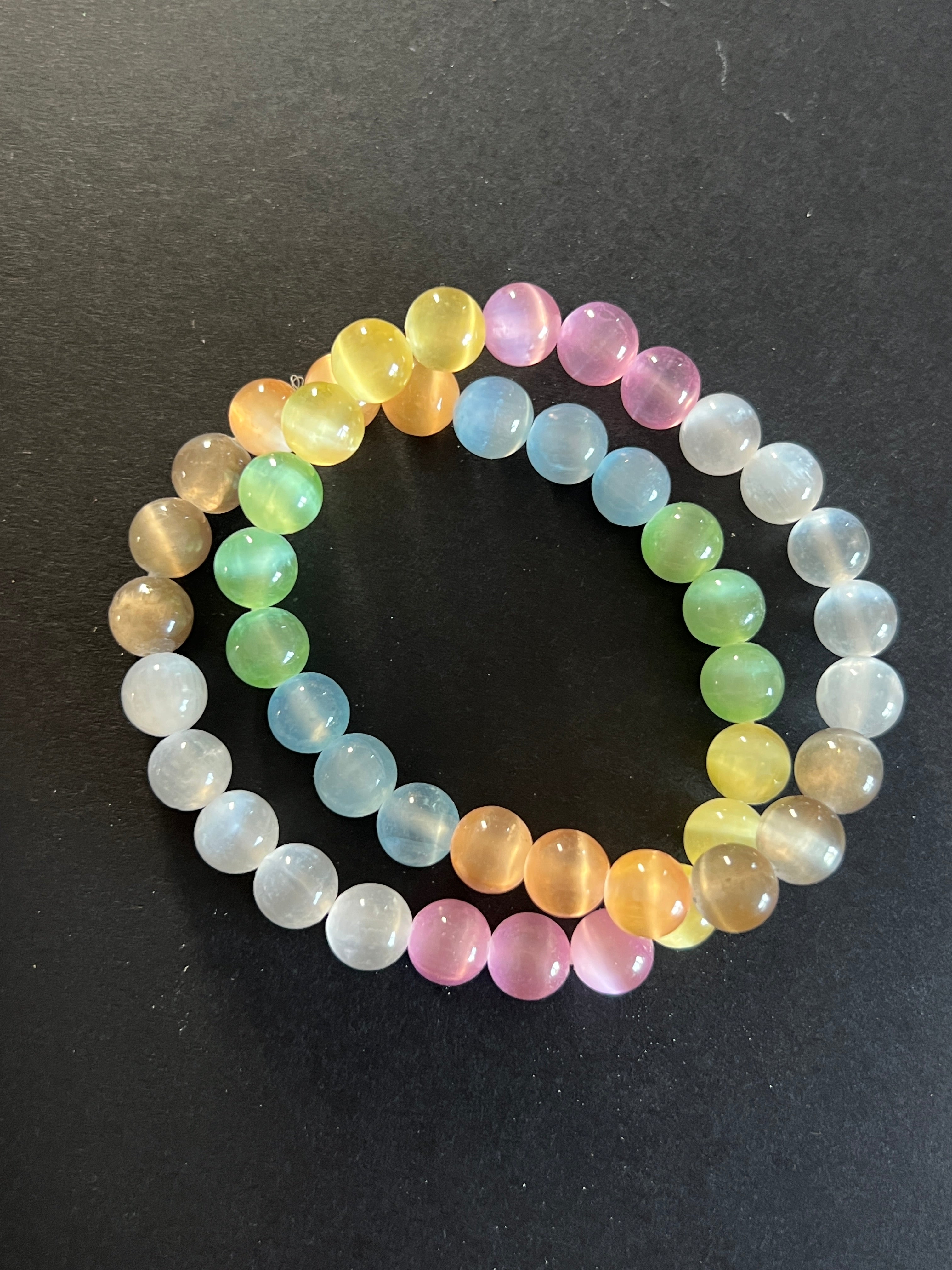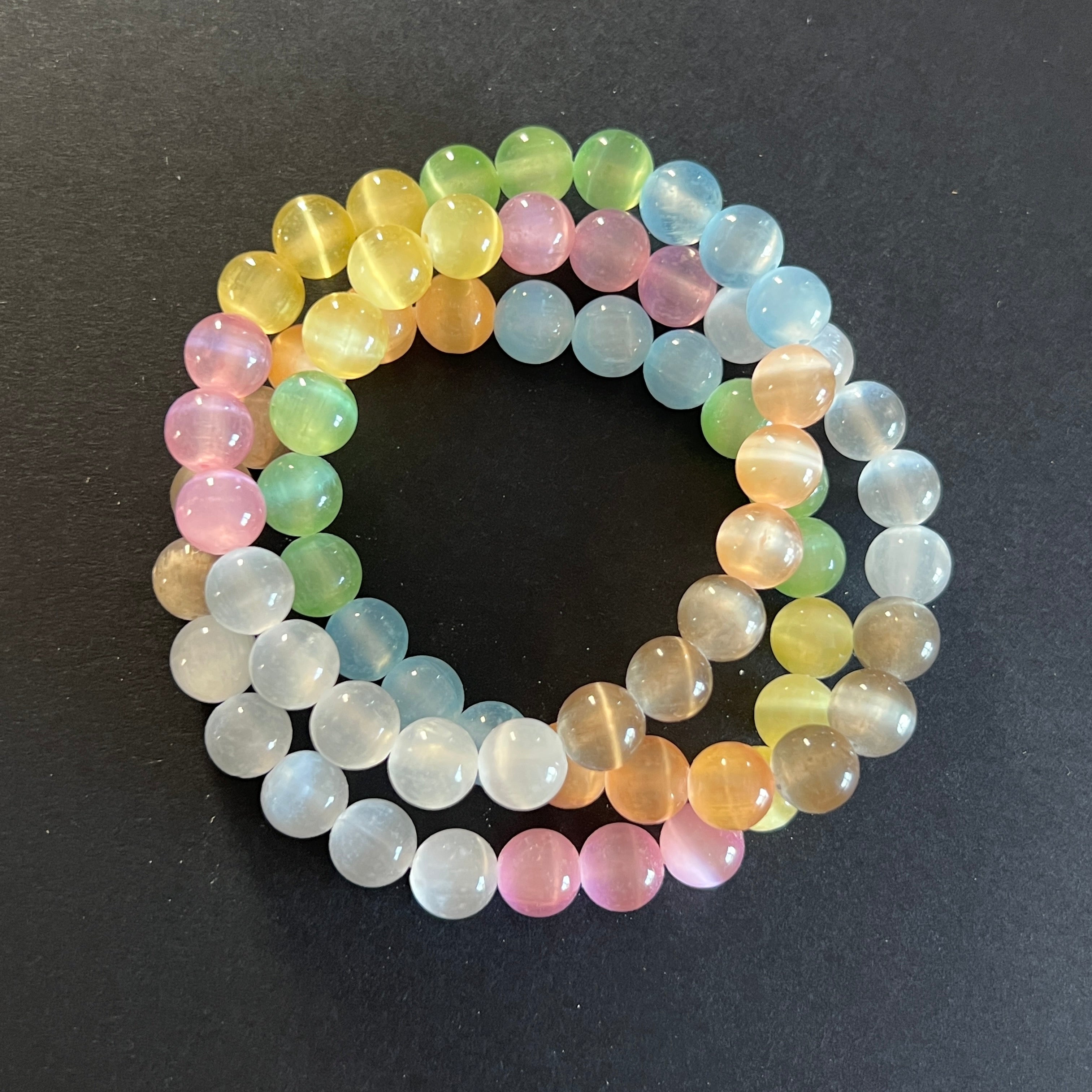 Descriere - Bratara sfere colorate din selenit 8 mm