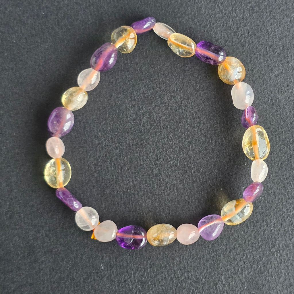 Bratara Triplă Armonie cuart roz, ametist, citrin Tumble