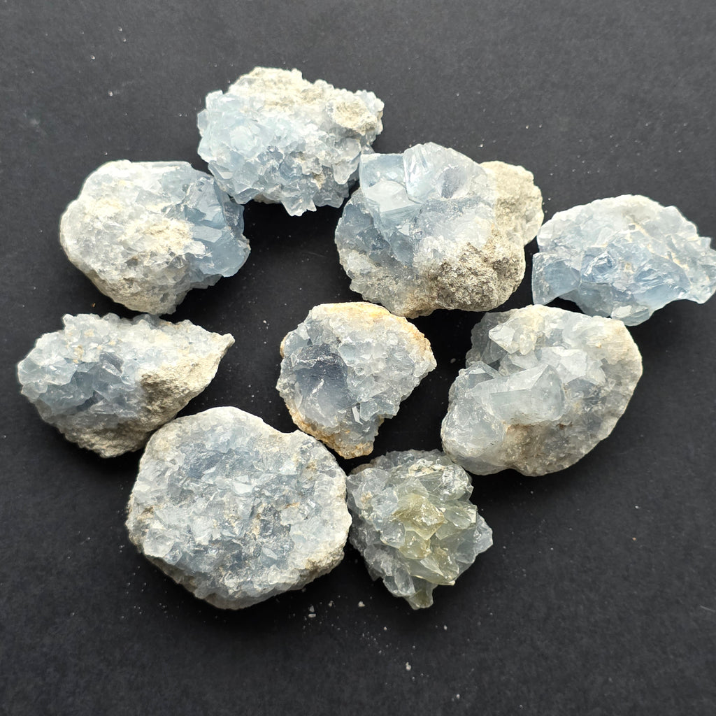 Celestitul este o piatră semiprețioasă de culoare albastră sau incoloră, formată din sulfat de strontiu. Acesta are proprietăți calmante și relaxante, fiind adesea folosit în meditație și în practici spirituale pentru a promova pacea interioară și claritatea mentală. Celestitul este asociat cu chakra gâtului și poate ajuta la comunicarea clară și la exprimarea emoțiilor. De asemenea, se crede că îmbunătățește creativitatea, intuiția și abilitățile psihice.