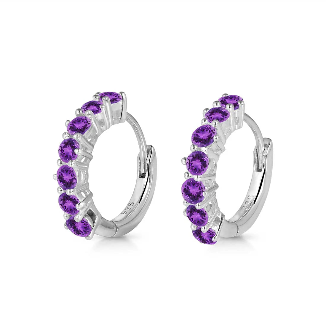Acești cercei hoop mini din argint 925 impresionează prin echilibrul perfect dintre dimensiune și strălucire. Cele 7 pietre de ametist montate pe fiecare cercel creează un efect continuu de lumină, discret, dar elegant.