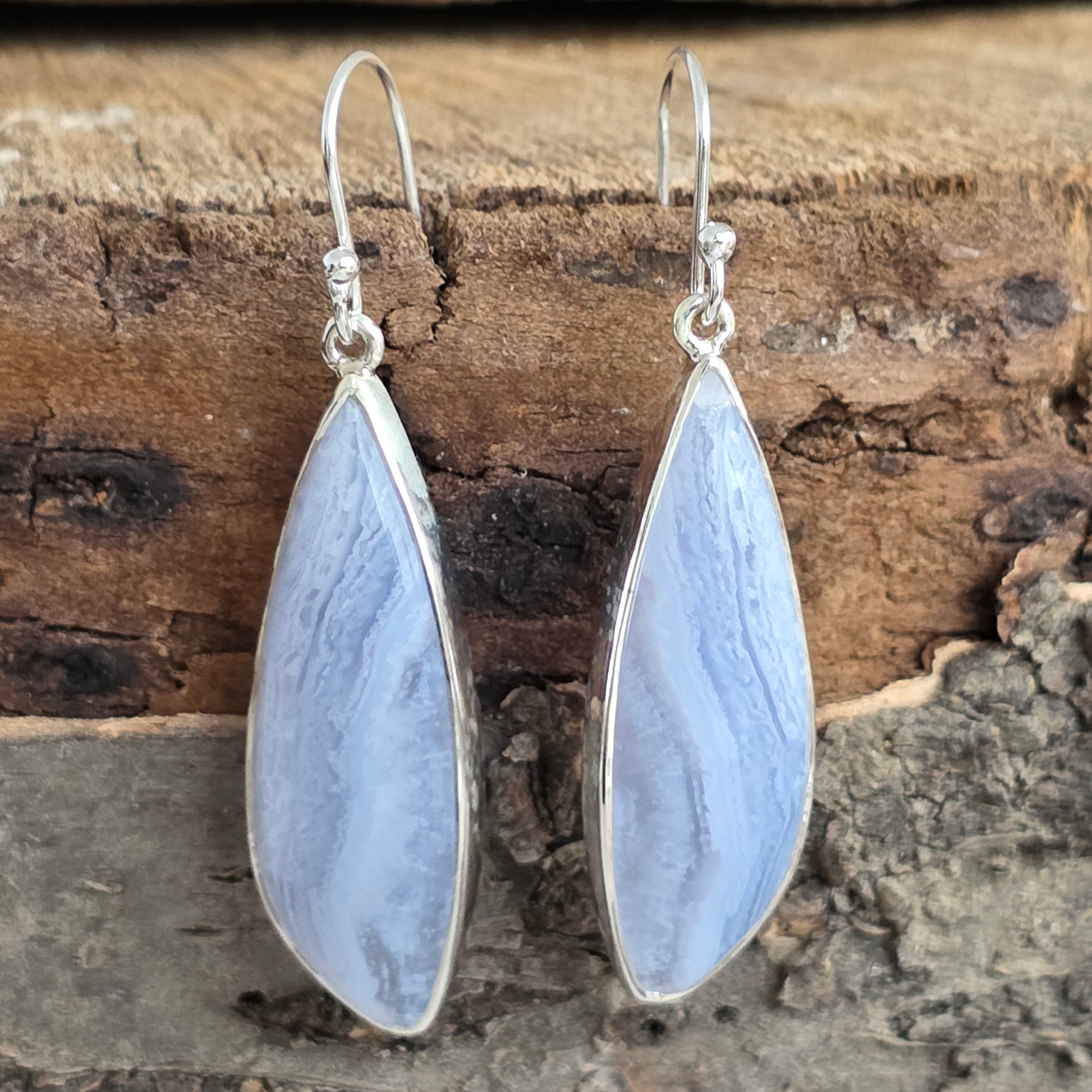 Descriere - Cercei calcedonie albastra/ blue lace din argint | Model 1