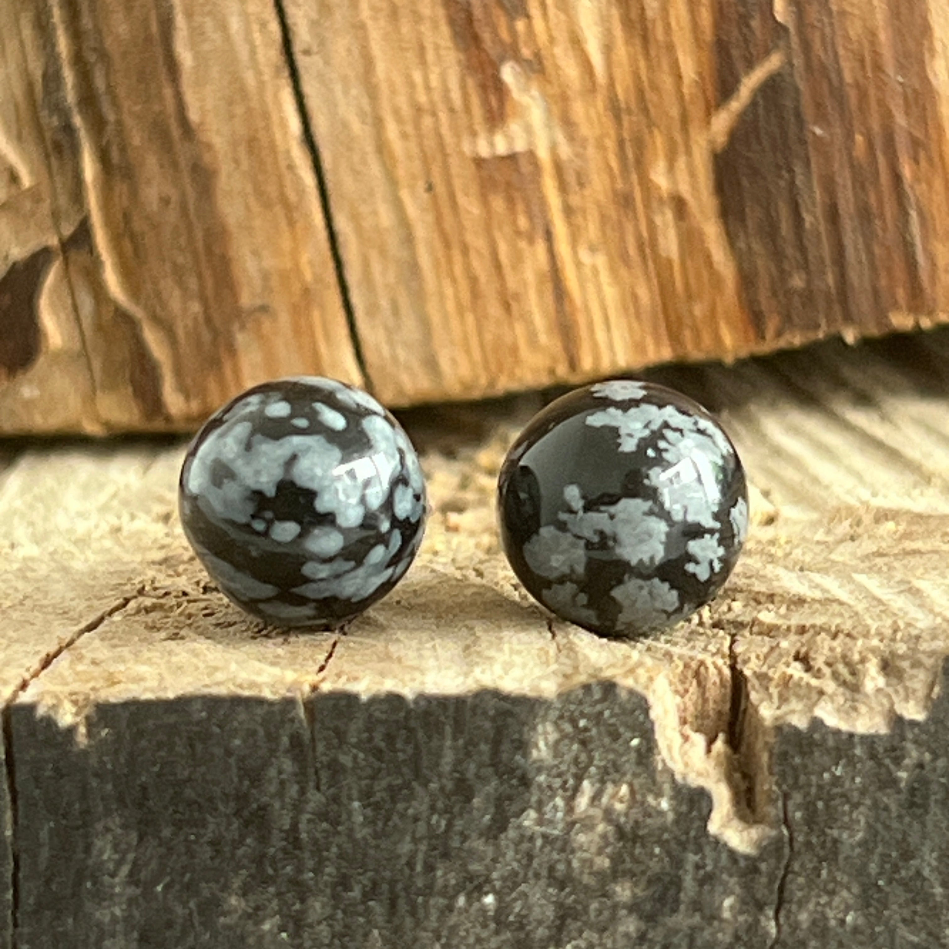 Descriere - Cercei stud sfere obsidian fulgi de zapada