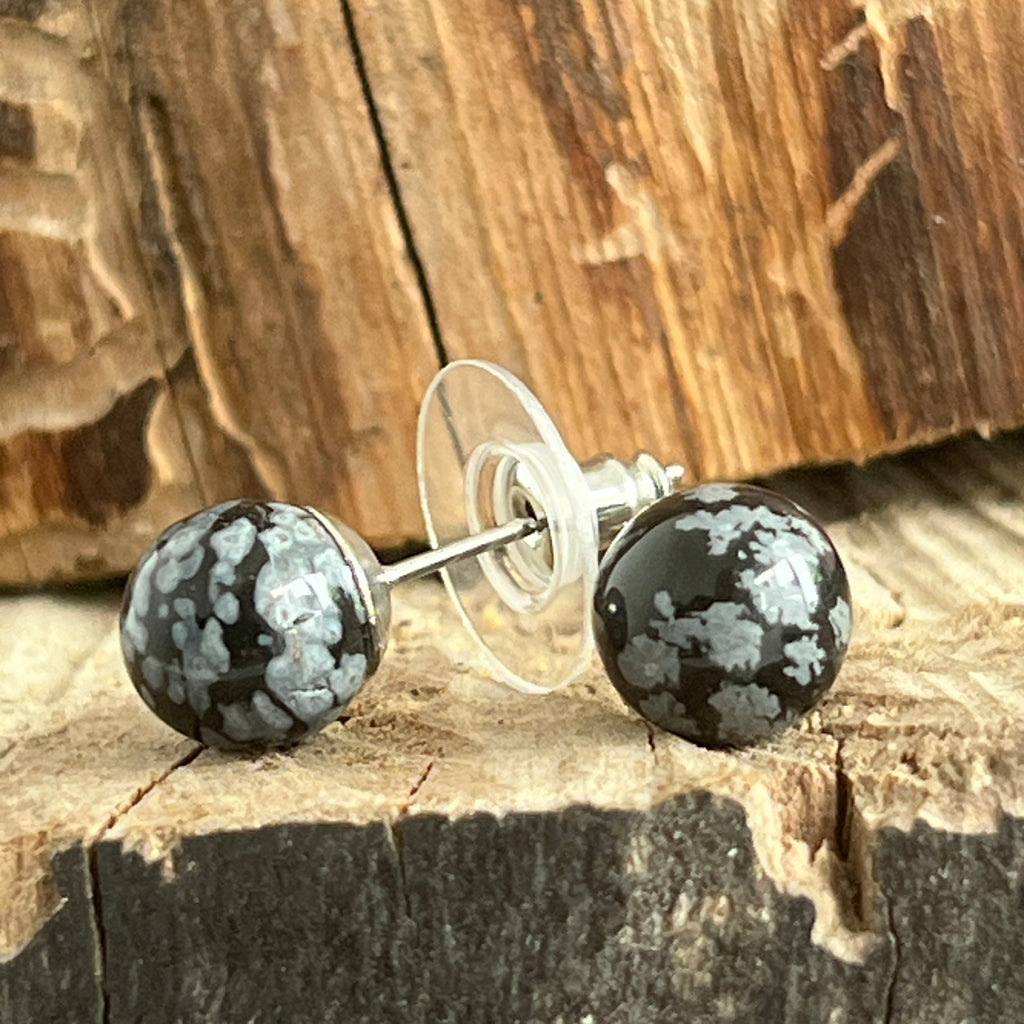 Cercei stud sfere obsidian fulgi de zapada