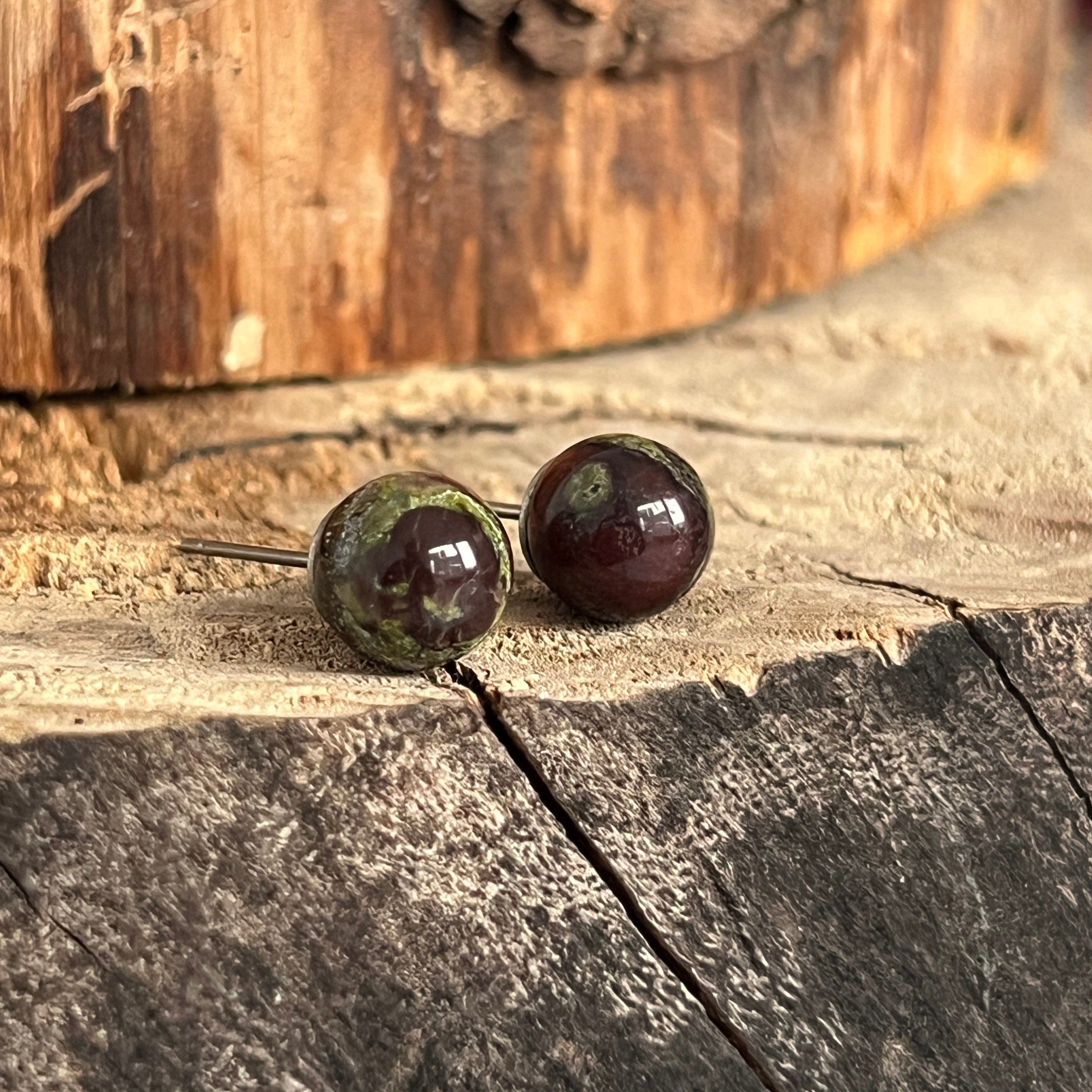 Acești cercei stud din jasp Sângele Dragonului emană forță, curaj și pasiune – un omagiu adus legendei dragonilor care, se spune, și-au lăsat sângele să curgă în pământ pentru a dărui oamenilor putere.
